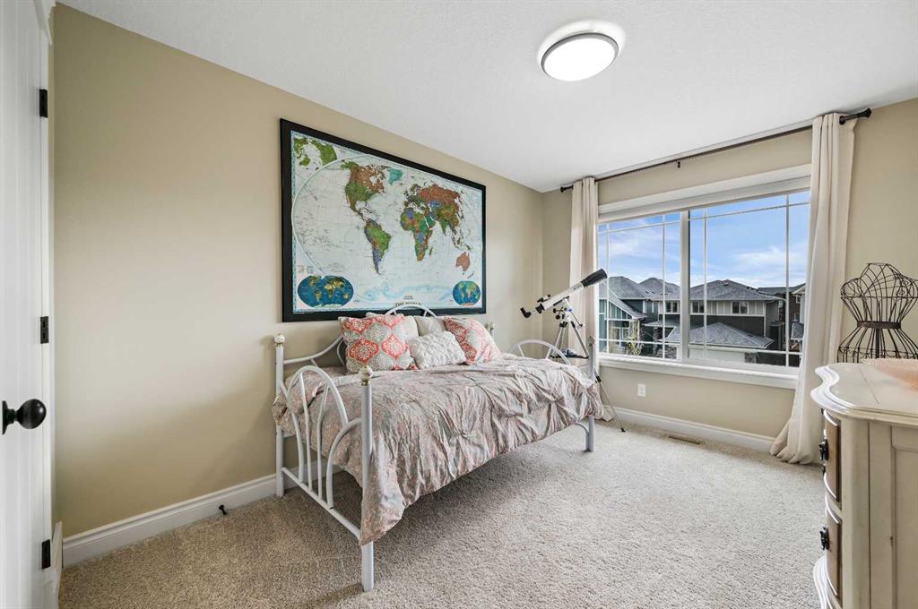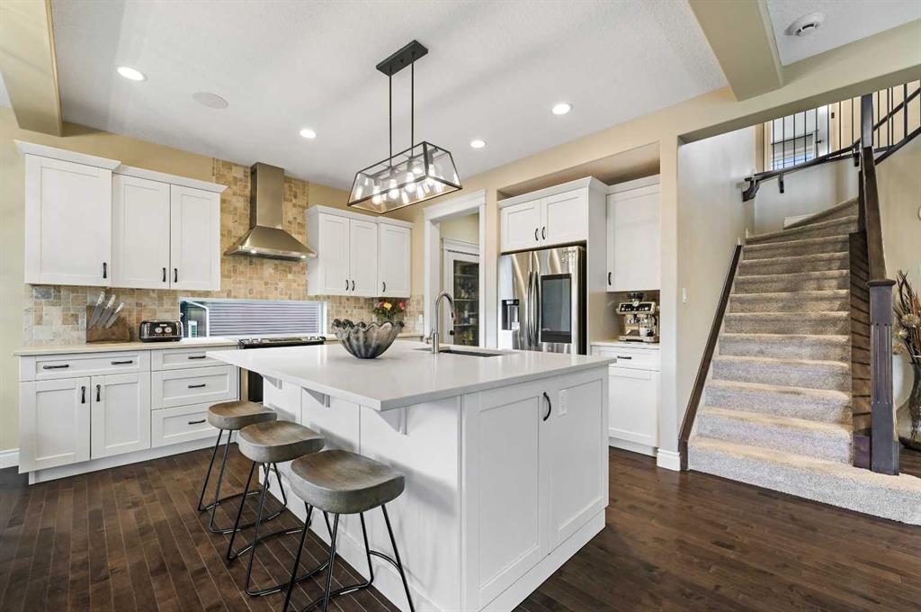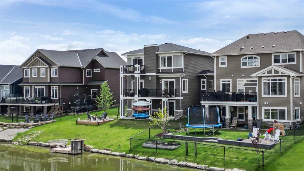 Welcome to this WATERFRONT luxury home on an oversized 7290 sq ft lot in Bayside Estates that offers a lifestyle like no other in Airdrie. With incredible craftsmanship & arguably Airdrie's best location backing onto the Bayside Estates canal with it's own private dock to offer fishing, kayaking, skating & it's a former McKee showhome! The main floor is thoughtfully designed with an open concept layout & hardwood throughout that perfectly complements the large bright windows which fill the room with tons of natural sunlight. The living room hosts a floor to ceiling stone gas fireplace feature, modern built in shelving/cabinetry and this flows seamlessly into the dining room (with a view of the canal) & an upgraded kitchen that rocks white cabinetry, stainless steel appliances (wifi enabled fridge is new!) & beautiful quartz countertops. The main floor also has a large office, a garage entryway with built-in seating/storage, a half bathroom & a large balcony with two sets of sliding doors to step out & enjoy the view because this one is 10/10 if you are searching for waterfront living in Airdrie! The upstairs greets you with a large bonus room with a built-in desk on the side & adjacent you'll be pleased with the spacious primary bedroom retreat overlooking the canal including a private primary bedroom balcony that provides epic sunsets & views of the canal! The spa-like ensuite bathroom with a deep soaker tub, dual sink vanity & a tiled shower includes the walk-in closet with custom built-in closet shelving. The spacious 2nd and 3rd upstairs bedrooms are conveniently located next to the 2nd full bathroom which is adjacent to the upstairs laundry room. The walkout basement with two more sets of sliding doors hosts a large family room with a pool table area & a custom bar with a wine fridge perfect for movie nights, as an exercise space & entertaining. Adjacent you'll find the 4th bedroom that has a unique space finished underneath the stairs that is perfect as a children's playroom & another full bathroom. The mechanical in this home is excellent with a full built in media system including built in speakers throughout the home, Sonos & a boiler system to offer in-floor heat throughout the basement. Since it was a former show home the garage is completely finished with in-floor heat, light fixtures, ceiling texture, built in speakers & a back bay perfect for parking motorcycles, bikes or as a workshop space. Once the sun sets you'll be pleased to enjoy another upgraded feature of this property by turning on the Gemstone Brand architectural outdoor lighting. Location is the most important rule in real estate & this property knocks it out of the park with an extra wide lot backing the water that you will rarely find in Bayside - As a bonus there are also underground sprinklers! This home is the definition of a home that shows 10/10 and it must be viewed to fully appreciate its incredible craftsmanship & the waterfront lifestyle offered.