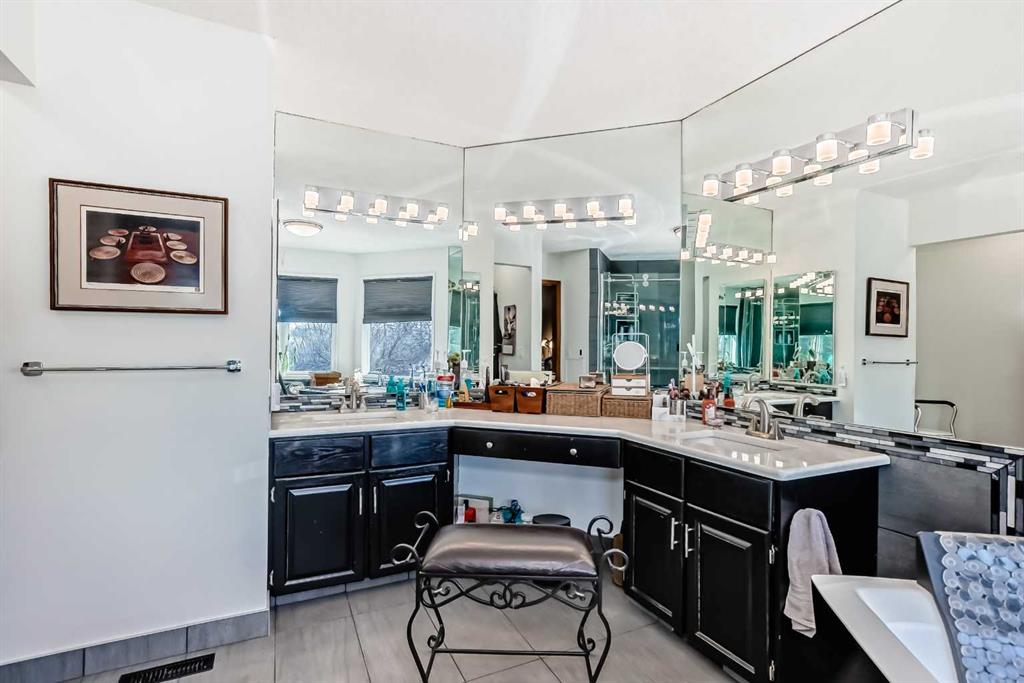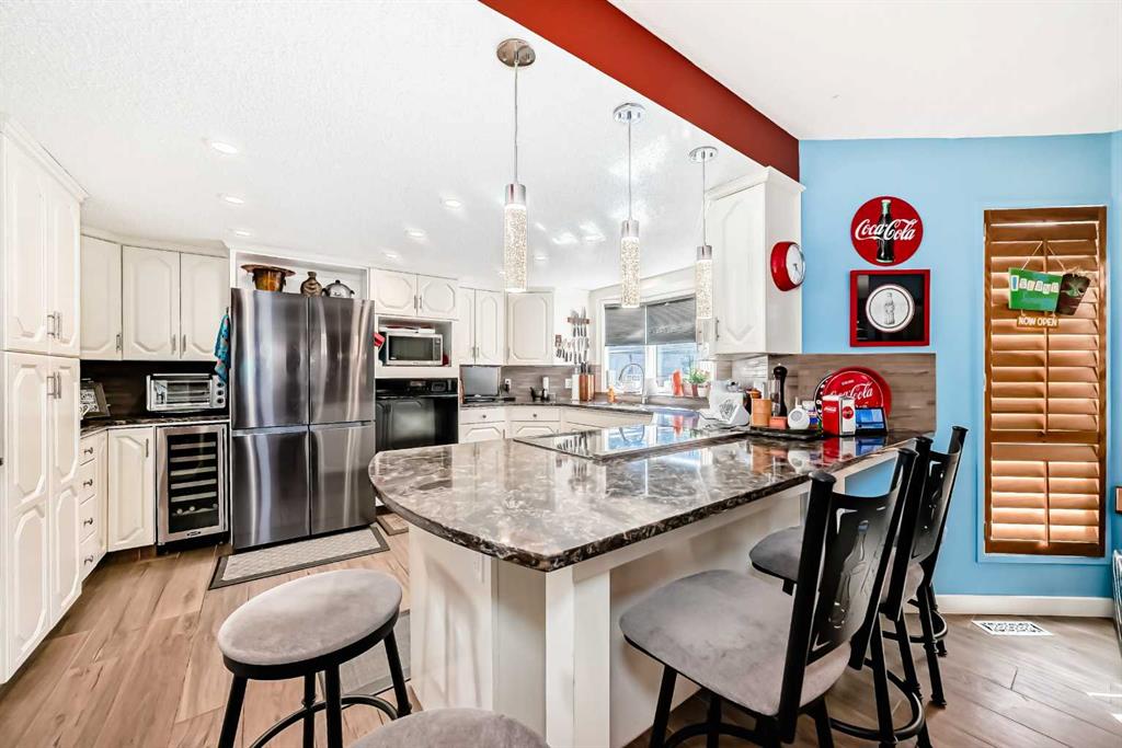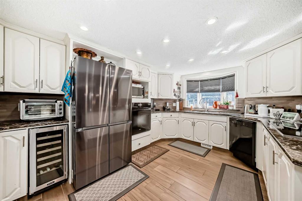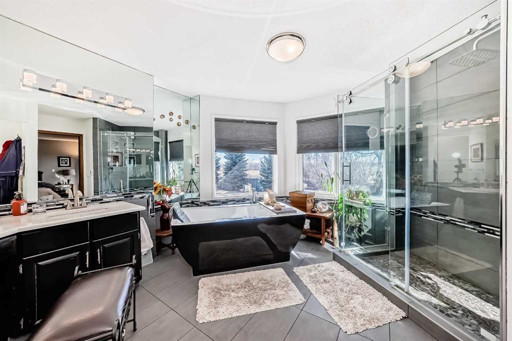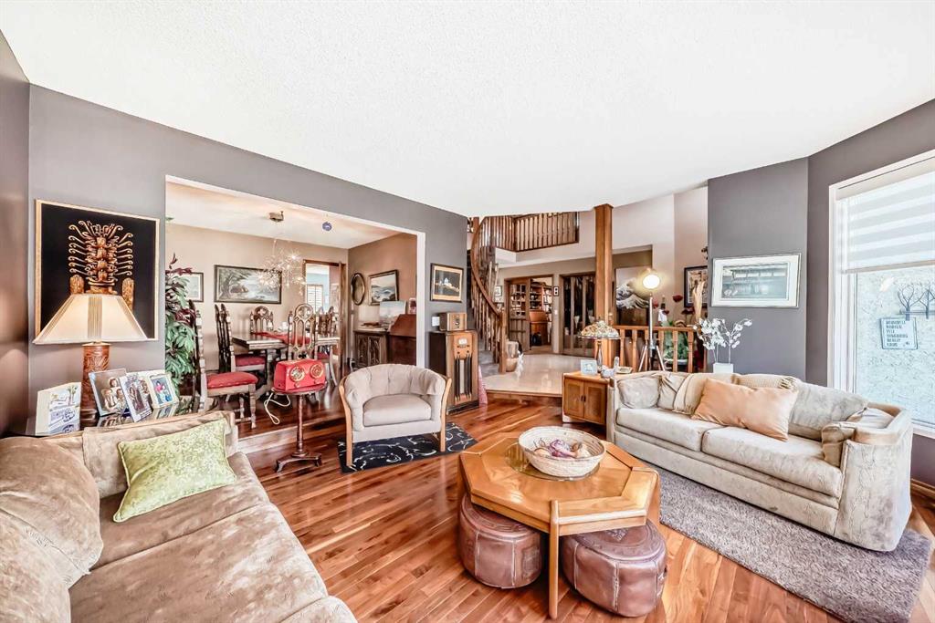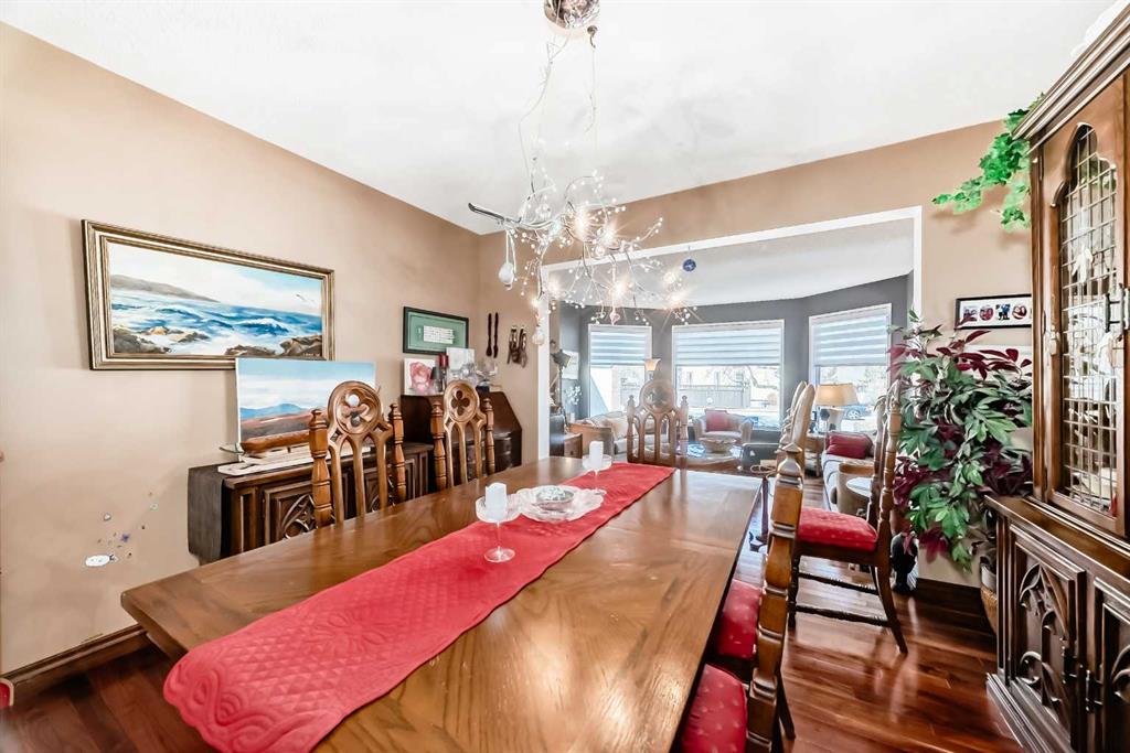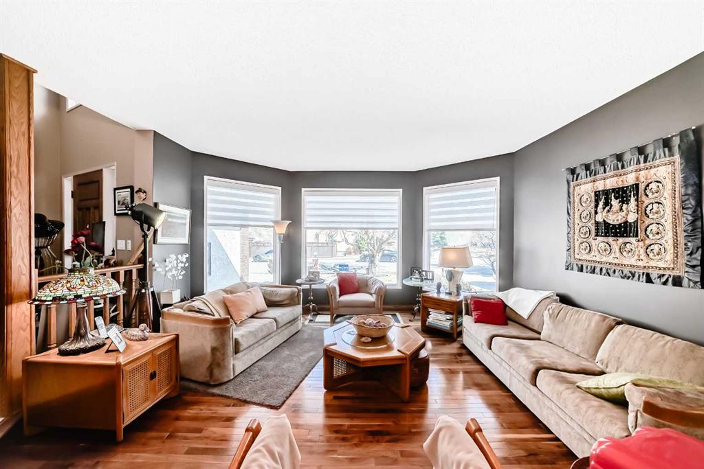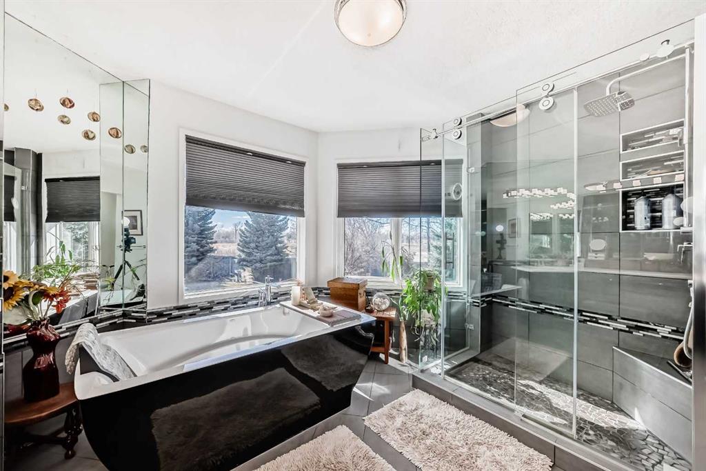 Beautifully Updated Estate Home in Canyon Meadows Estates! This expansive home offers nearly 4,000 sq ft of living space on a huge lot in a quiet cul-de-sac—perfect for families and entertaining. Featuring 4 spacious bedrooms, black walnut hardwood floors, a formal dining room, and a large living area, this home blends warmth with elegance. You’ll love the modern and bright white kitchen that offers plenty of cabinet and counter space. The luxurious primary suite includes a spa-like ensuite and its own private balcony—perfect for relaxing or catching a glimpse of the Northern Lights. Enjoy the convenience of a triple car garage and major updates including A/C (2024), garage doors (2022), Hunter Douglas blinds (2024), Miele appliances, updated bathrooms (2018), dual HE furnaces, and more. Outside, enjoy multiple patios, cedar decks, and a hot tub in your private, mature yard. Located in one of Calgary’s most desirable communities with top-rated schools and easy access to Fish Creek Park—this is a must-see!