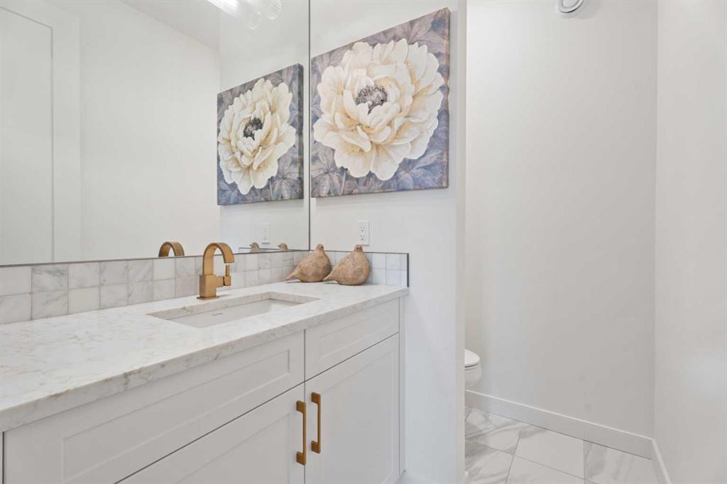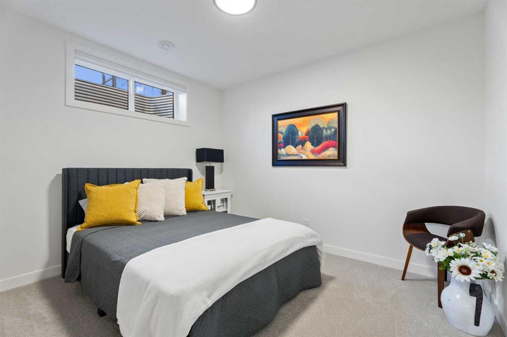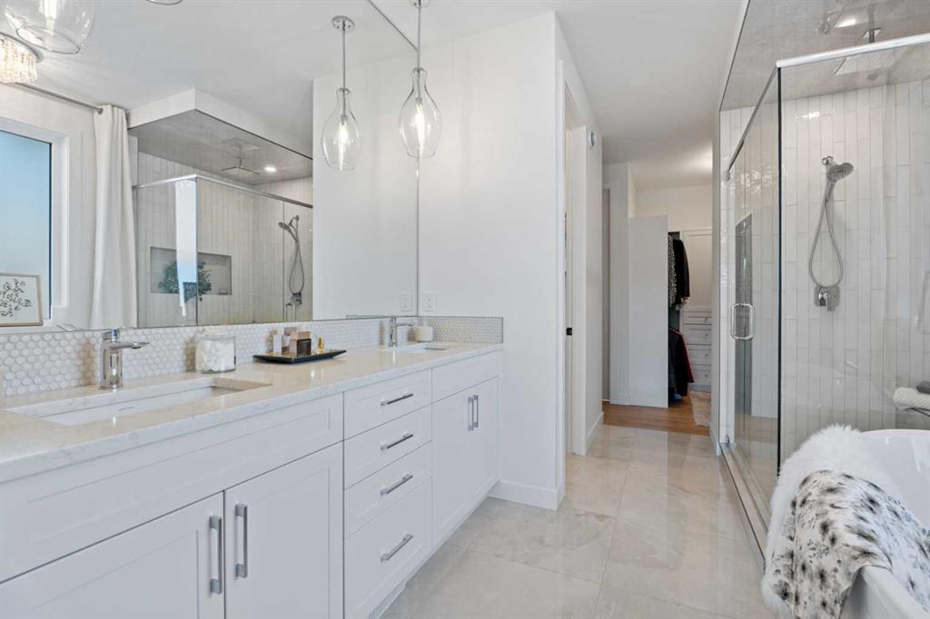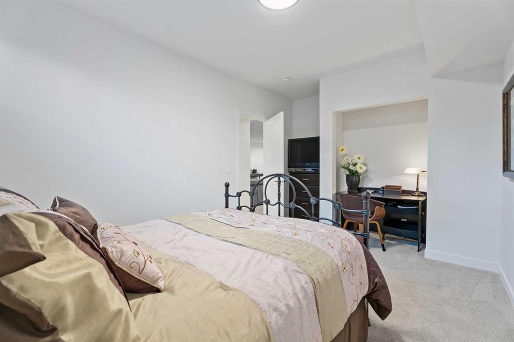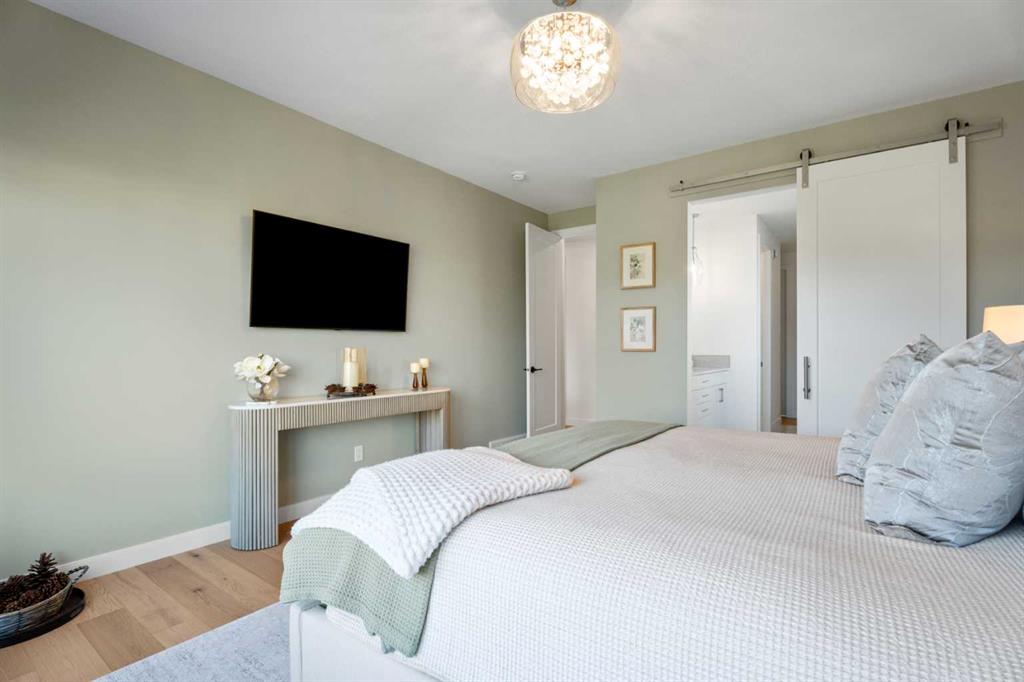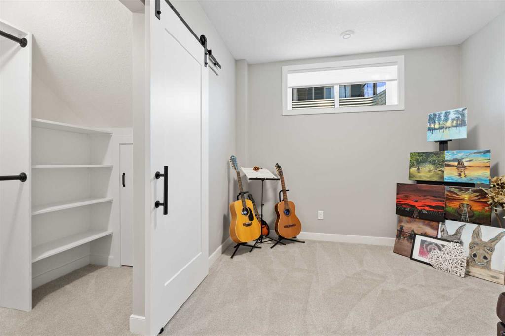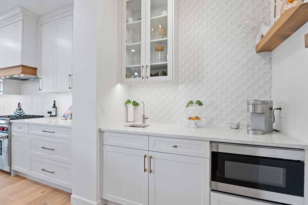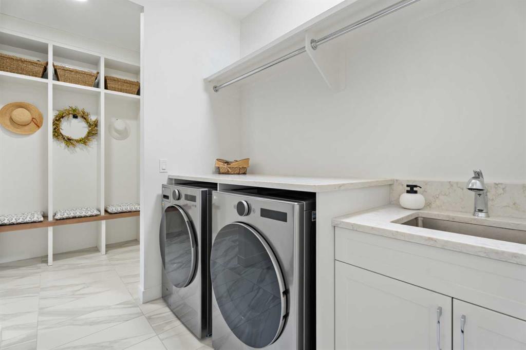 Welcome to this custom-crafted just over 1,800 sq ft bungalow showcasing exceptional design and luxurious upgrades throughout. From the moment you arrive, the home’s custom wood beams, black-trimmed windows, and Gemstone exterior lighting set an impressive tone. Step inside to soaring 11 ft ceilings, engineered wide-plank hardwood floors, and 8 ft doors with sleek black hardware. The open-concept great room features a Napoleon 55" linear gas fireplace, with a heat management system, framed by panoramic media walls and designer wood-and-glass lighting. The gourmet kitchen is a chef’s dream—complete with a Sub-Zero refrigerator, Wolf 6-burner gas range, Miele dishwasher, Falmec Pro hood, and a stunning 9×5 ft quartz island with custom cabinetry and champagne bronze accents. The butler’s pantry offers quartz counters, built-in drawer microwave, sink, and additional built-ins. The primary suite impresses with blackout channelled system Hunter Douglas blinds, and a spa-inspired ensuite featuring a fully tiled shower with dual heads (including rainfall), freestanding tub, heated floors covered with 24 X 24 Himalayan rock salt tiles, and a custom walk-in wardrobe. A fully finished basement extends the living space with a custom-built media centre, a wet bar that includes a beverage fridge and dressed in a quartz counter and back splash, a gym area with luxury vinyl flooring, 3 bedrooms, and an additional full bath. Outdoors, enjoy a covered deck with stone / cedar-clad post, gas line, aggregate patio, and professionally landscaped yard ($70K investment) with 28 trees, boulders, and a Wi-Fi–controlled irrigation system. The oversized driveway allows RV parking with full access into the almost 800sq ft triple garage, which includes a heater rough-in, floor drain, hot/cold taps, and dual Wi-Fi openers with cameras. Additional highlights include EcoBee Smart thermostat, air conditioning, tankless water heater, water softener, radon mitigation system, and B-Hyve smart irrigation controls. A rare blend of craftsmanship, technology, and luxury—this home redefines bungalow living in Cimarron.