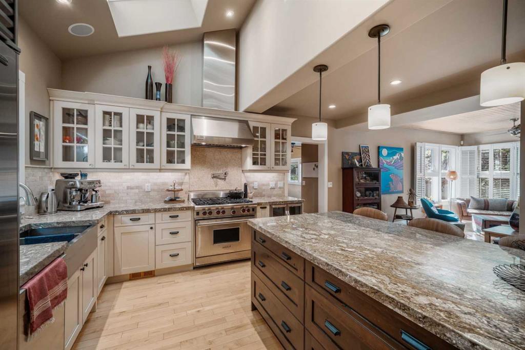 With origins rooted in the early 20th century, this storied residence at 140 Rundle Crescent embodies a rare blend of historical integrity and contemporary mountain elegance. Originally constructed over a century ago and floated down the Bow River from the Georgetown mining site, the home has since been masterfully expanded and restored into a sanctuary of calm and character. Thoughtfully reimagined, the interiors unfold with warm, layered textures and inviting volumes. The second level hosts a tranquil primary retreat and two guest bedrooms, while a lofty third-storey room with private deck offers flexibility as a studio, office, or additional guest space. The main level features a dedicated office or family room, ideal for remote work or hosting. A legal one-bedroom suite above the garage enhances the property’s versatility. Set on an 8,471-square-foot R2 duplex lot with lane access, the home is framed by curated outdoor living spaces, mountain views, and a mature garden anchored by a charming greenhouse and shed. Just steps from the Bow River and within easy reach of downtown Canmore, this heritage home is a celebration of timeless design and alpine living.