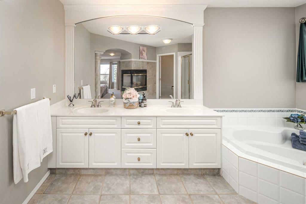Welcome to this beautifully appointed estate two-storey home built by Janssen Homes, ideally located in the prestigious Hamptons community, backing directly onto the 11th hole of the Hamptons golf course. This fully finished home offers 5 bedrooms, Oak hardwood flooring, and a functional family-oriented layout. The main floor features a bright living room with soaring 17-foot ceilings, a formal dining room with elegant columns and recessed ceiling, a dedicated home office, and a spacious family room with floor-to-ceiling windows and 17-foot ceiling, built-in entertainment center, and a 3-sided fireplace. The cherry hardwood kitchen is equipped with granite countertops, a walk-in pantry, and upgraded stainless steel appliances, dishwasher(2025). The adjacent dining nook overlooks the golf course and green space. Upstairs offers 4 generously sized bedrooms, including a luxurious primary retreat with a walk-in closet, 3-sided fireplace, and spa-inspired ensuite featuring a jetted tub, double vanity, and separate shower. The walkout basement is fully developed with a 5th bedroom, full bathroom, large recreation room with wet bar, gas fireplace, and extensive built-ins—ideal for entertaining or future suite potential. New vinyl wood plank (2024) Additional features include central air conditioning, main floor laundry, and an oversized double attached garage. Enjoy outdoor living with both an upper balcony and a covered patio overlooking Golf course green space. The beautifully landscaped backyard with stone pathways and retaining walls. Located within minutes to Hamptons School, transit, parks, Superstore, LRT, University of Calgary, Foothills Medical Centre, and downtown.
