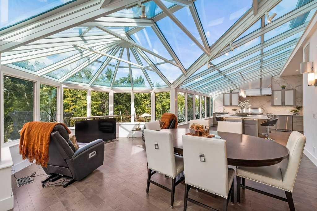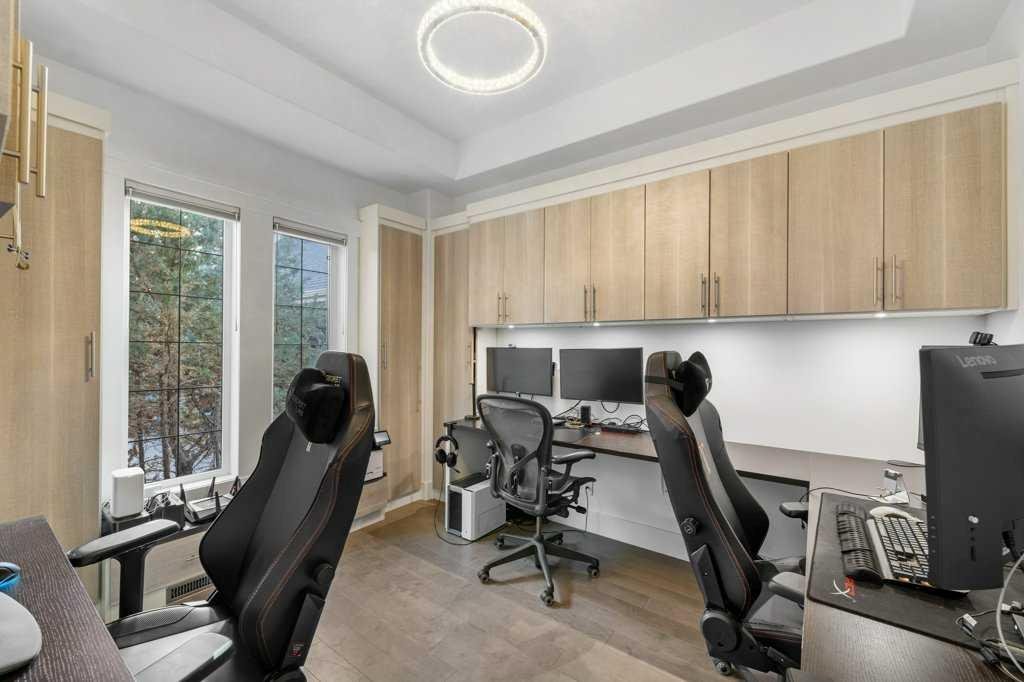 *Welcome to this extraordinary, fully renovated estate home in the prestigious community of Heritage Pointe, offering exclusive lake access and surrounded by natural forest beauty! Situated on a prime lot & backing onto a treed forest, the home has undergone a major renovation. It now features the addition of a spectacular 800 sq. ft. "entertainer's dream" 4 season sunroom (with new foundation and its own furnace/plumbing/air conditioning) - a true showpiece created for both relaxation and entertaining! Outfitted with premium appliances, the chef's kitchen serves large gatherings; a spacious dining room is adjacent, plus a living area for relaxation, where dual large-screen TV's seamlessly rise from the hardwood floors - at the touch of a button! The main home's central kitchen is renovated with new quartz counters/island, new appliances, marble backsplash, plus a newly reconfigured lighted pantry. With a living / dining room that has a new floor-to-ceiling feature "linear" fireplace, perfect ambience is createde. A stylish great room, also adjacent to the kitchen, provides built-in cabinetry with lighted accents. All new hardwood floors adorn the main level, new lighting, all solid interior doors, new carpets. A main floor office, half bath and mudroom complete the main level. The upper level currently features 4 bedrooms (could be bonus room with 3 bedrooms). The master suite showcases vaulted ceilings, a private sitting area overlooking the forest, spa-like 5 pc ensuite w/air jet tub, steam shower & large walk-in closet, heated floors! The professionally finished lower level features a 4th bedroom, bath, media area, games room w/expansive wine bar, fitness room w/cork flooring & 2nd laundry. Direct Connect networking throughout. Dual central air conditioners, gas generator and extensive solar system - serves entire home! The 4 car garages (two double garages) are separated by a breezeway. The rear yard showcases an 8 person "waterfall" mineral hot tub with an adjacent fire pit gathering area - grounds with underground sprinklers systems. Whether hosting a gathering or hosting a quiet evening, the indoor/outdoor ambience and forested views create a resort-like view year-round! Experience the best of lake living, privacy, and modern sophistication, in one of Alberta's most sought-after communities.