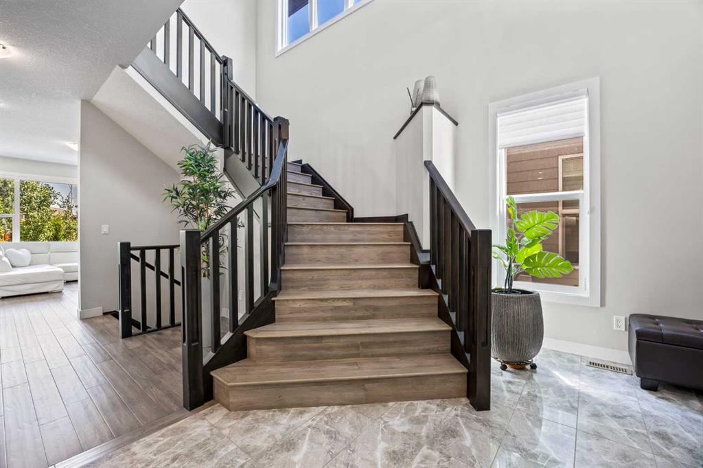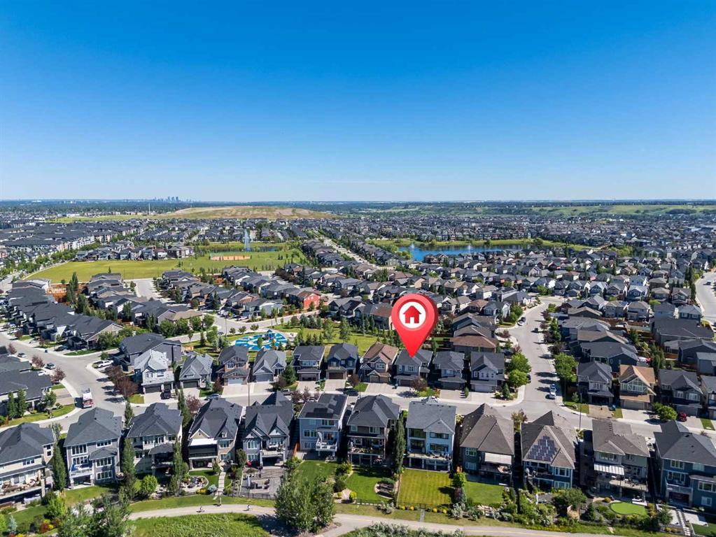 Welcome to 144 Legacy Mount SE an exquisite 2824 sq. ft. detached home in one of Calgary’s most sought-after and family-friendly communities: Legacy. Ideally located across from prestigious Legacy Estate Homes and backing onto a tranquil green space with a playground, this stunning property seamlessly blends elegant design, upscale finishes, and everyday functionality to create the perfect forever home. Step inside and experience a true sense of grandeur. From the moment you enter, you're greeted by 9-foot ceilings, upgraded 8-foot doors, and a show-stopping curved staircase with stylish railings and an open-to-below layout, all illuminated by an abundance of natural light streaming through oversized windows. Throughout the home, hardwood and tile flooring ensure a carpet-free, low-maintenance lifestyle with timeless appeal. At the heart of the home is a two-toned designer kitchen that’s both beautiful and functional. It features ceiling-height white cabinetry, quartz countertops, under-cabinet lighting, and premium appliances including a gas stove, chimney-style hood fan, wine fridge, and a fridge with a water line. Thoughtful touches like hidden sponge storage, a built-in soap dispenser, and strategically placed electrical outlets highlight the attention to detail. The massive central island and walk-in pantry provide exceptional storage and prep space, while the kitchen flows effortlessly into the dining and living areas, offering sweeping views of your private backyard oasis. The cozy living room is anchored by a modern gas fireplace and features built-in speakers, perfect for relaxed nights or entertaining. Step outside to enjoy your 2-tiered cement deck with a BBQ gas line—the ultimate summer setup. Finishing off the main level is a bright home office with double French doors, ideal for remote work, and a spacious mudroom with built-in lockers, leading to the finished double garage, complete with smart storage solutions. Upstairs, a central bonus room smartly separates the luxurious primary retreat from two generously sized bedrooms, offering optimal privacy. The primary suite is a true retreat with a spa-like ensuite featuring dual vanities, ample counter space, medicine cabinet, soaker tub, stand-up shower with built-in bench and dual nooks, a private water closet, and extra linen storage. The expansive walk-in closet comes fully outfitted with custom built-ins and drawers. The two secondary bedrooms each offer walk-in closets with windows and share a beautifully appointed 4-piece bathroom. The upper-level laundry room adds everyday convenience with its utility sink, abundant counter space, lower cabinetry, and ample hanging options. Additional upgrades that are worth noting are central air conditioning, Hunter Douglas Window Coverings Throughout, Built-in Speakers, Ethernet Cat6 Cable in Every Room and Smartphone-Controlled Underground Irrigation System. Don’t miss your opportunity to own this elegant and highly upgraded home!
