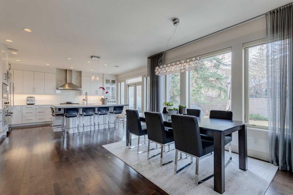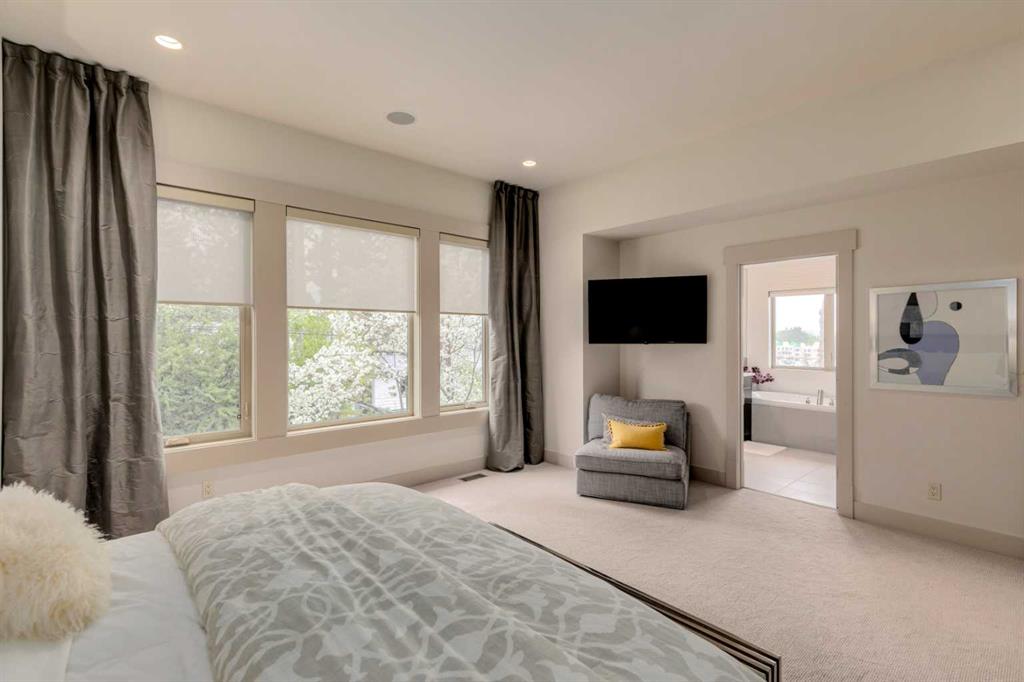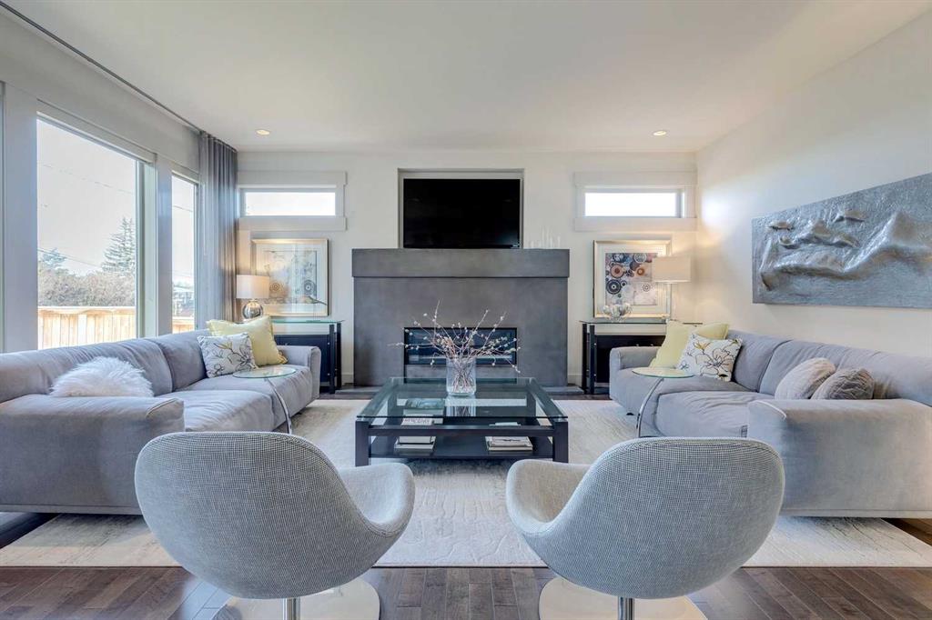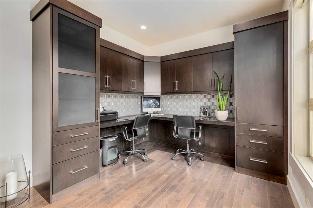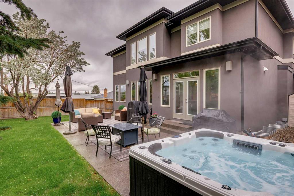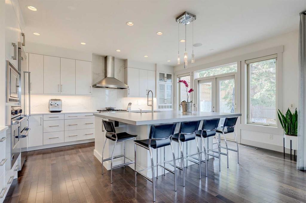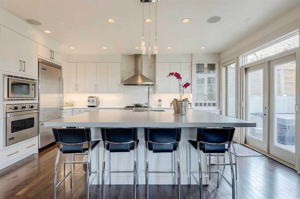 This beautifully designed home blends modern elegance, warm functionality, and views of the downtown skyline, offering the perfect balance between urban energy and residential calm. The location is unmatched, just minutes to the city centre yet tucked in a residential enclave with tree-lined streets and a true neighbourhood feel. Inside, a light-filled foyer leads into sprawling open-concept living spaces where 9’ high ceilings and large windows allow sunlight to pour through the main floor. The heart of the home is the chef-inspired kitchen, featuring quartz counters, 6-burner gas cooktop, sleek cabinetry, generous storage, and a large central island with breakfast bar that invites connection. Adjacent is a dedicated dining area with a built-in bar for effortless hosting, and an impressive living room warmed by a contemporary linear gas fireplace with a statement making concrete mantle. Whether it’s a casual weeknight with kids or a lively dinner party with friends, this layout rises to the occasion. A private office with French doors and built-in workstations makes work-from-home days a breeze. The large walk-in pantry and mudroom keep everyday life organized and stress free. Upstairs, the library opens onto a secluded balcony with spectacular views, made for quiet reflection and a morning coffee. A welcoming bonus room provides a spot for kids to play or the whole family to reconnect. The primary bedroom is a serene retreat offering ample space for a seating area, a large walk-in closet, and an ensuite that blends function and comfort with double sinks, a soaking tub, and an oversized shower. Two additional bedrooms with window benches and walk-in closets, a dual-sink bathroom, and a laundry room complete the upper level. Downstairs, the fully developed basement offers a recreation room ideal for movie nights or entertaining complete with a projector, screen, and a wet bar with wine fridge. Two more bedrooms, a full bathroom, and a wine/storage room complete this level. Outside, the west-facing backyard sets the stage for unwinding, with a large patio and a hot tub bordered by mature trees and garden beds. An attached double garage adds convenience to this impeccably designed home. Located in one of Calgary’s most historic and desirable city-centre neighbourhoods, this home offers quick access to downtown, vibrant 17th Avenue, the LRT, Shaganappi Golf Course, off-leash dog parks, playgrounds, and scenic walking paths. With its blend of city access and quiet residential charm, this home is crafted for elevated family living, where life is easy, space is generous, and your Scarboro/Sunalta West story begins.