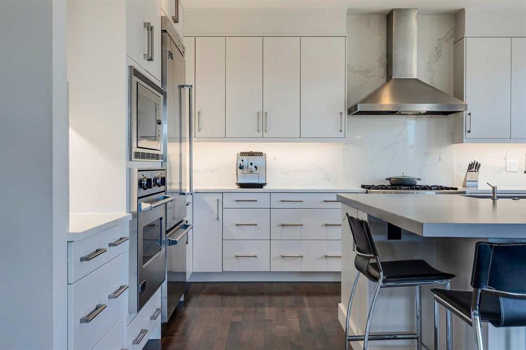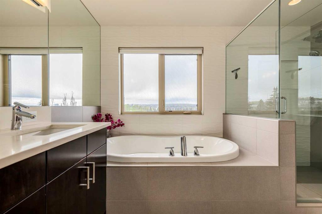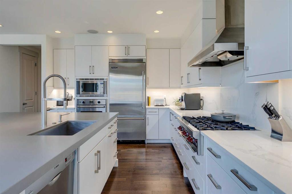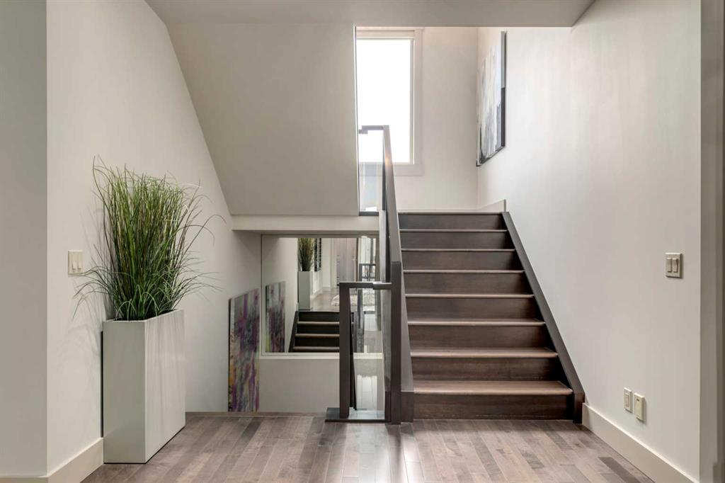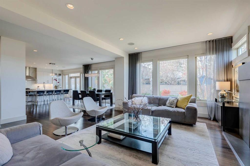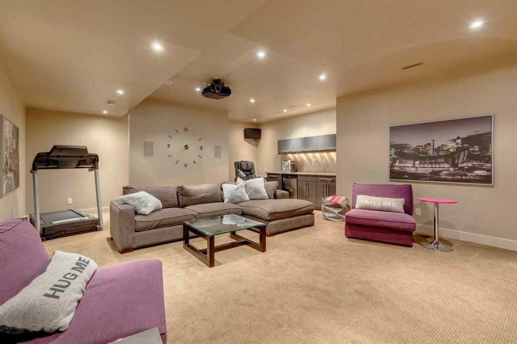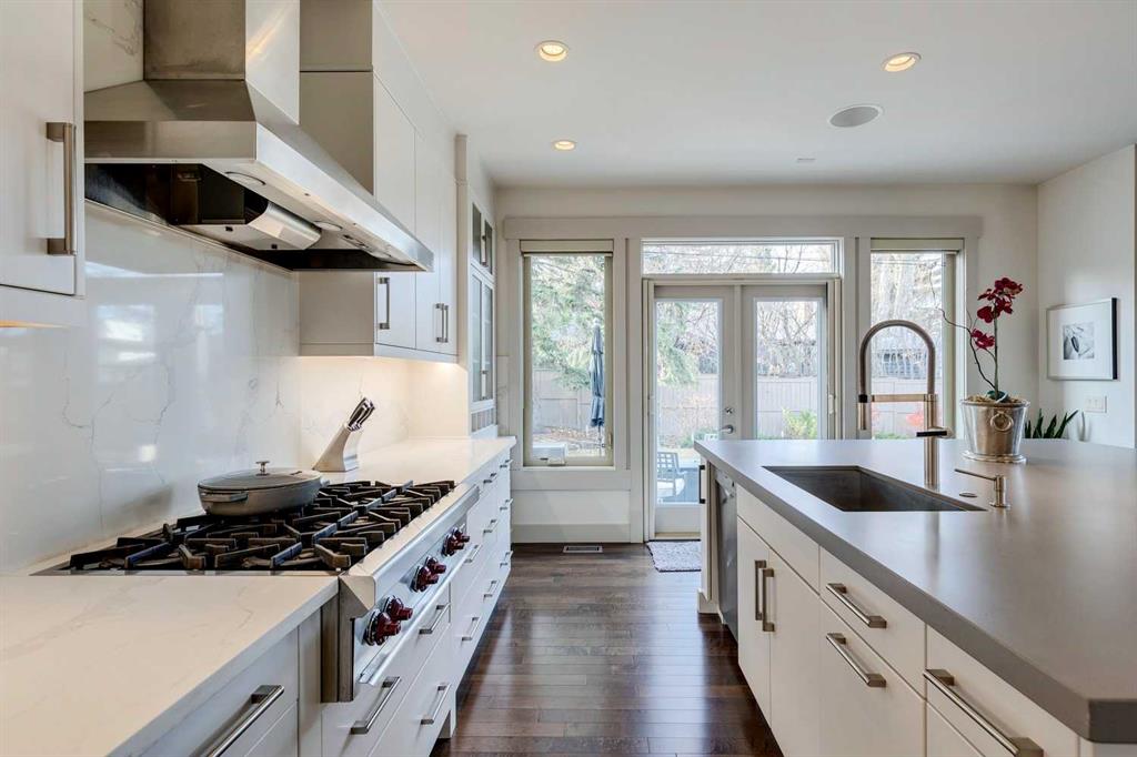 This beautifully designed home blends modern elegance, warm functionality, and views of the downtown skyline, offering the perfect balance between urban energy and residential calm. The location is unmatched, just minutes to the city centre yet tucked in a residential enclave with tree-lined streets and a true neighbourhood feel. Inside, a light-filled foyer leads into sprawling open-concept living spaces where 9’ high ceilings and large windows allow sunlight to pour through the main floor. The heart of the home is the chef-inspired kitchen, featuring quartz counters, 6-burner gas cooktop, sleek cabinetry, generous storage, and a large central island with breakfast bar that invites connection. Adjacent is a dedicated dining area with a built-in bar for effortless hosting, and an impressive living room warmed by a contemporary linear gas fireplace with a statement making concrete mantle. Whether it’s a casual weeknight with kids or a lively dinner party with friends, this layout rises to the occasion. A private office with French doors and built-in workstations makes work-from-home days a breeze. The large walk-in pantry and mudroom keep everyday life organized and stress free. Upstairs, the library opens onto a secluded balcony with spectacular views, made for quiet reflection and a morning coffee. A welcoming bonus room provides a spot for kids to play or the whole family to reconnect. The primary bedroom is a serene retreat offering ample space for a seating area, a large walk-in closet, and an ensuite that blends function and comfort with double sinks, a soaking tub, and an oversized shower. Two additional bedrooms with window benches and walk-in closets, a dual-sink bathroom, and a laundry room complete the upper level. Downstairs, the fully developed basement offers a recreation room ideal for movie nights or entertaining complete with a projector, screen, and a wet bar with wine fridge. Two more bedrooms, a full bathroom, and a wine/storage room complete this level. Outside, the west-facing backyard sets the stage for unwinding, with a large patio and a hot tub bordered by mature trees and garden beds. An attached double garage adds convenience to this impeccably designed home. Located in one of Calgary’s most historic and desirable city-centre neighbourhoods, this home offers quick access to downtown, vibrant 17th Avenue, the LRT, Shaganappi Golf Course, off-leash dog parks, playgrounds, and scenic walking paths. With its blend of city access and quiet residential charm, this home is crafted for elevated family living, where life is easy, space is generous, and your Scarboro/Sunalta West story begins.