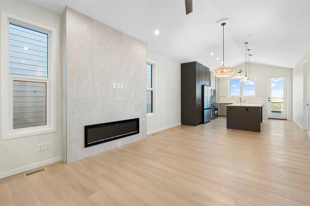 Welcome to 147 Marmot Grove NW, where refined design meets relaxed luxury in the heart of Glacier Ridge - one of NW Calgary’s most sought-after new communities. This home isn’t just a place to live; it’s a lifestyle. Think quiet morning coffee overlooking the environmental reserve, golden hour dinners on the patio with no neighbours behind, and the ease of single-level living that still offers space for family, guests, and entertaining. From the moment you step inside, light pours through soaring VAULTED CEILINGS that crown the OPEN CONCEPT main floor. The living, kitchen, and dining areas flow together effortlessly, creating a sense of airiness and connection. Every detail feels elevated, from the 8' interior doors to the luxury vinyl plank flooring that stretches seamlessly throughout. At the center of it all is a CHEF’S KITCHEN designed for both beauty and purpose. Two-toned cabinetry in taupe and dark grey, Delta champagne bronze hardware, and a custom hood fan set a rich, modern tone. The OVERSIZED ISLAND is not only a gathering place - it’s brilliantly functional, with banks of deep drawers for organized, easy-access storage. A farmhouse sink, APPLIANCE GARAGE, and six-burner gas range complete the culinary experience, while direct access to the rear patio invites effortless indoor-outdoor living. The living room feels warm yet sophisticated, anchored by a fully tiled electric fireplace - a natural focal point for cozy nights in or weekend gatherings. Just off the main area, the primary suite is designed as a true retreat - it’s connected to everything you need: a walk-in closet, laundry area, and a SPA INSPIRED ENSUITE that feels straight out of a boutique hotel. Enjoy a custom tiled shower with a rainfall head and wand, a soaker tub, quartz countertops, and walls wrapped in elegant tile. Every finish, every fixture whispers “relax, you’re home.” Downstairs, the FULLY DEVELOPED BASEMENT extends your living space beautifully with three additional bedrooms, a full bath, and a versatile rec room - perfect for a home gym, movie nights, or a cozy guest retreat. Outside, the stone and JAMES HARDIE BOARD exterior offers timeless curb appeal, while the great-sized yard and peaceful backdrop of the environmental reserve create the kind of PRIVACY and natural connection that’s rare in the city. The community of Glacier Ridge offers rolling landscapes, wide open skies, and thoughtfully planned streetscapes. You’ll find parks, walking paths, playgrounds, and new amenities taking shape all around you - just minutes from established conveniences, yet surrounded by quiet and space. Every inch of this sprawling bungalow is a testament to thoughtful design and modern living. It’s a home that celebrates both beauty and function - perfect for those who want to live stylishly, comfortably, and connected to nature. Experience the feeling of home, elevated. Schedule your private showing today. *Some photos are virtually staged.*