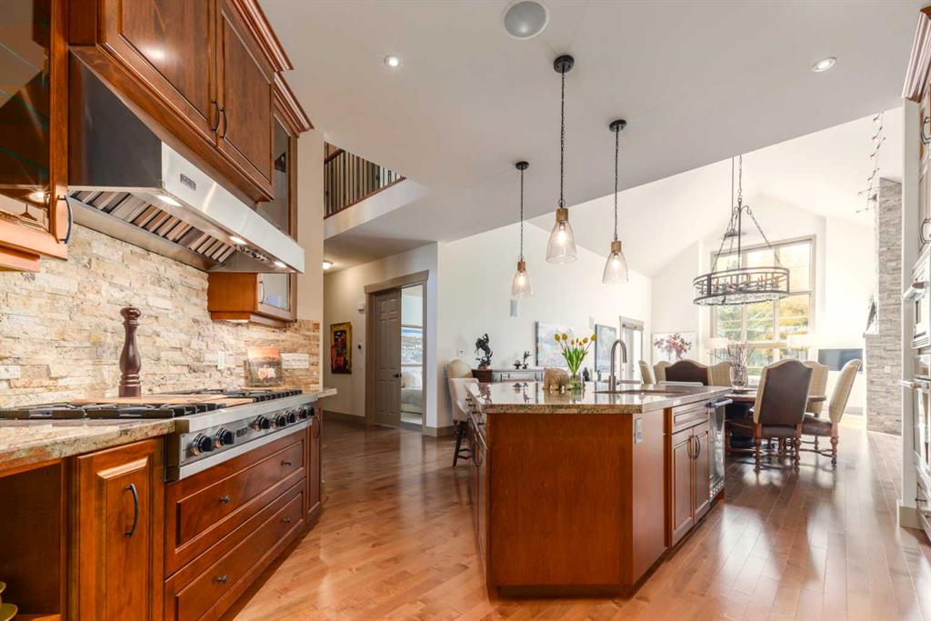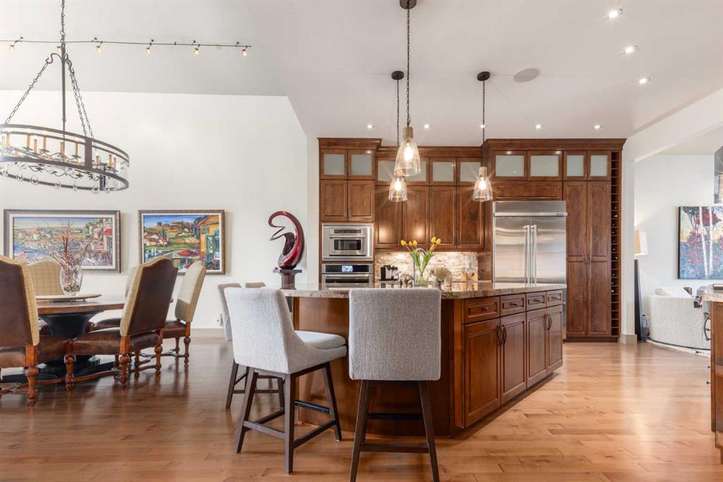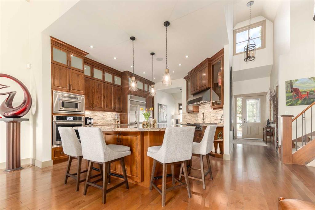 Tucked within the exclusive gated enclave of Sussex Green, this remarkable walk-out bungalow redefines villa living. Behind the gates of this 24-home community lies an extraordinary residence offering over 5,000 square, embracing both luxury and tranquility in equal measure.Step through the grand entrance and feel the sense of scale—vaulted ceilings, sweeping spaces, and exquisite finishes. A sunlit front sitting room, warmed by a cozy gas fireplace and gentle morning light, offers the perfect spot to start the day or unwind with a favourite book. Just across the hall, a beautifully appointed home office provides a calm, thoughtful design with inviting finishes. A sense of quiet elegance tie these rooms together, creating a welcoming balance of comfort, warmth, & refined living. At the heart of this remarkable home lies an exquisite oversized kitchen that perfectly marries sophistication and practicality. Framed by abundant custom cabinetry, this culinary space is equipped with top-tier professional appliances that elevate every cooking experience. A striking central island serves as the perfect gathering place for guests, while elegant finishes and impeccable design details create an atmosphere of refined luxury. Truly a chef’s masterpiece and an entertainer’s dream, this kitchen defines high-end living at its finest. From here, walls of windows frame the lush ravine beyond, creating a seamless connection between indoor luxury & natural beauty. The open dining and living areas set the stage for effortless entertaining, with a dramatic floor-to-ceiling fireplace and access to a private deck where tranquil ravine views unfold…a living canvas that shifts with the seasons, offering privacy, peace, and the hum of nature just beyond the glass.