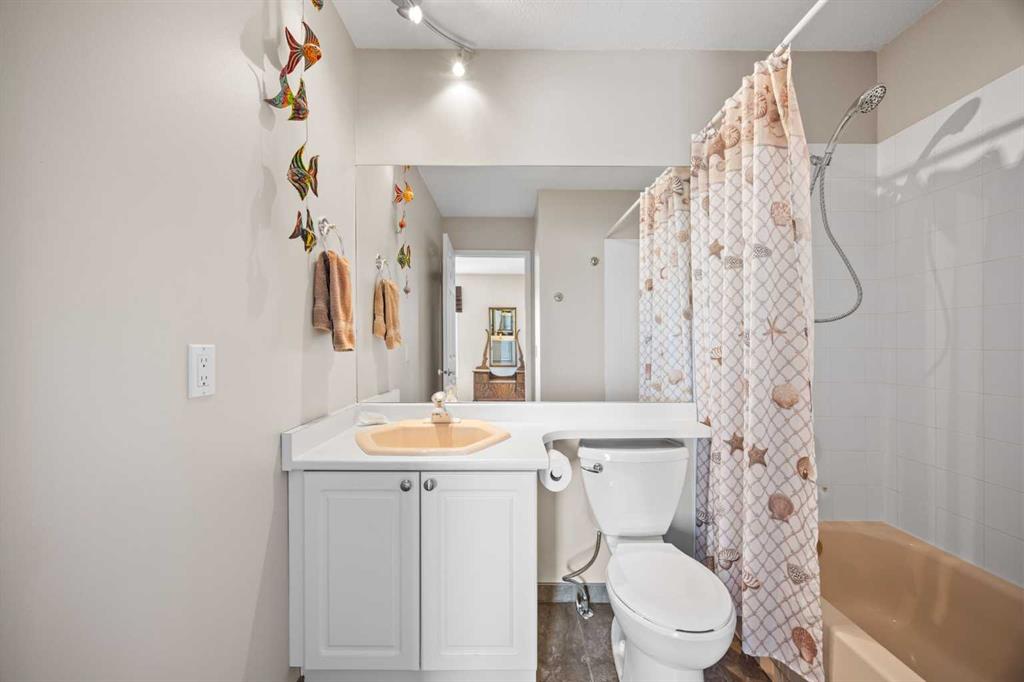 The primary suite has been thoughtfully renovated into a true retreat, offering unobstructed mountain views, a large walk-in closet, and a spa-inspired ensuite with heated tile flooring, a large walk-in shower, and a rain shower feature—a perfect place to unwind at the end of the day.