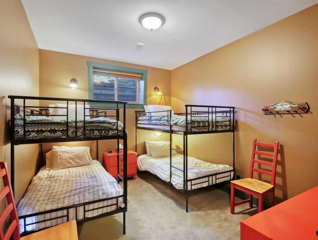 This stunning fully furnished Canmore retreat, lovingly known as The Westwind, offers the perfect blend of craftsmanship, comfort, and mountain-inspired design. With 3,906 square feet of thoughtfully planned living space, the home captures the essence of Rocky Mountain living, filled with natural light from expansive windows that frame breathtaking views in every direction. The main floor showcases a soaring great room with vaulted ceilings and a wall of windows that draw the mountains inside. An open-concept kitchen and dining area create a warm and welcoming space for entertaining, while the deck and patio provide an unparalleled 180-degree vantage point of Canmore’s peaks. Step from the patio directly onto the town’s extensive trail system, making adventure part of everyday living. Also on this level, the primary suite with ensuite bath and large laundry room which allows the ease of single-level living. Upstairs, two additional bedrooms, a spacious loft that overlooks the great room (do not miss the skylight mountain view) and a full bath provide plenty of space for family and guests. The lower level continues the theme of gathering, with a large games room, wet bar, and family room, complemented by two more bedrooms and another full bath—an ideal setup for entertaining, relaxing, or hosting loved ones.