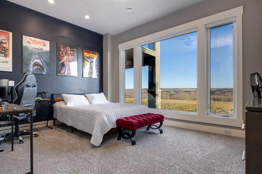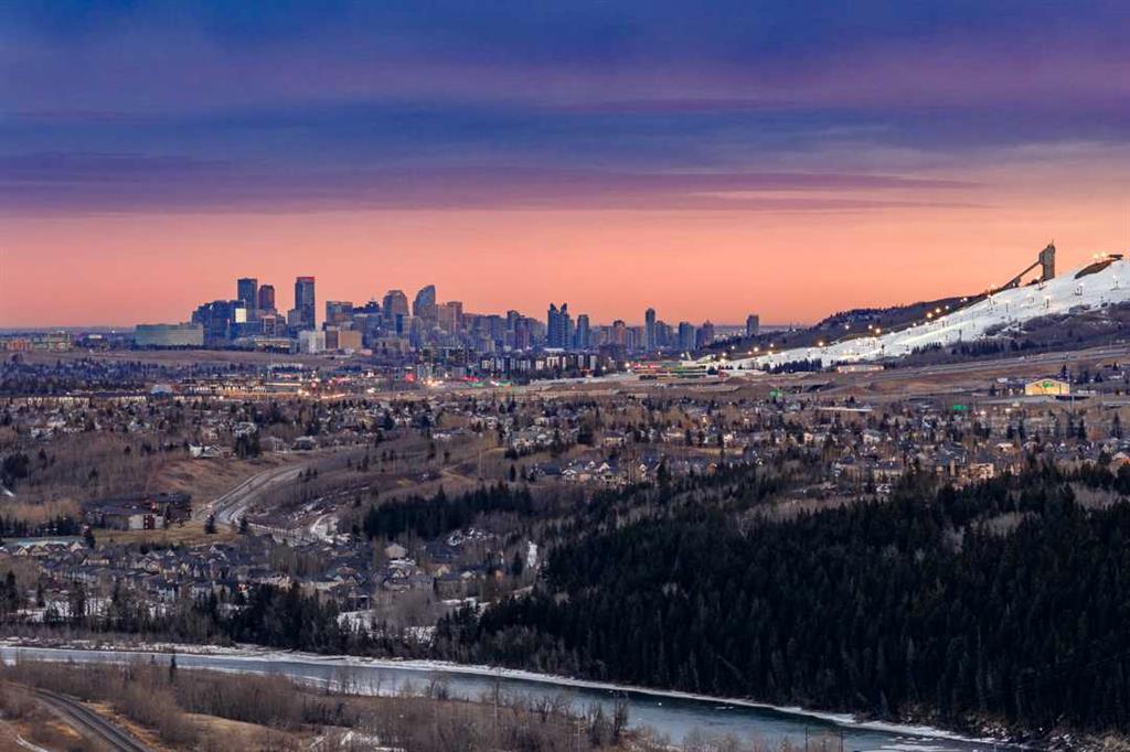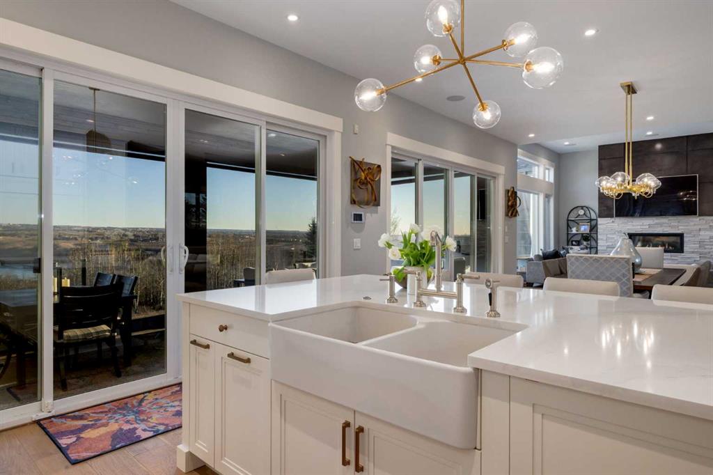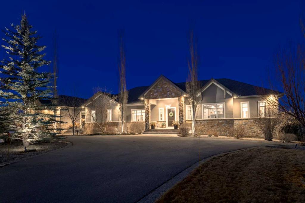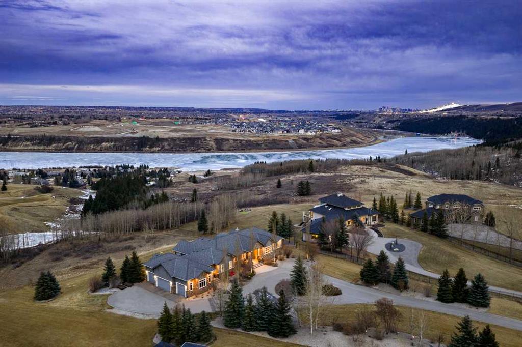 OPEN HOUSE SUNDAY FEBRUARY 15TH - 1PM TO 4PM. Set high on the escarpment in North Springbank is the most beautiful bungalow with unobstructed views of the city skyline, Bow River, the Springbank Links golf course, the mountains to the West and the breathtaking valley set below. Extensively renovated in 2022 and 2024, this property features over 2800 SF on the main level, over 400 SF on the outdoor living room deck, and another 2400 SF on the lower-level walk-out. The designer kitchen is gorgeous and has a beautiful butler’s pantry with a full wet bar and wine fridge. The living room is open to the dining room and kitchen areas and overlooks the stupendous views. The primary suite encompasses the entire SE wing of the home and has the most luxurious ensuite showcasing a gold framed shower, freestanding bathtub and waterfall vanities. The lower level features a games room, media area, home gym and three large bedrooms, each with their own ensuites and walk-in closets. The yard is professionally landscaped with mature trees and extensive garden areas. The oversized four car garage features a second mud room. This is a very special property in a unique location at the end of a private cul-de-sac and is within 10 minutes to local and private schools, shopping and recreational facilities.