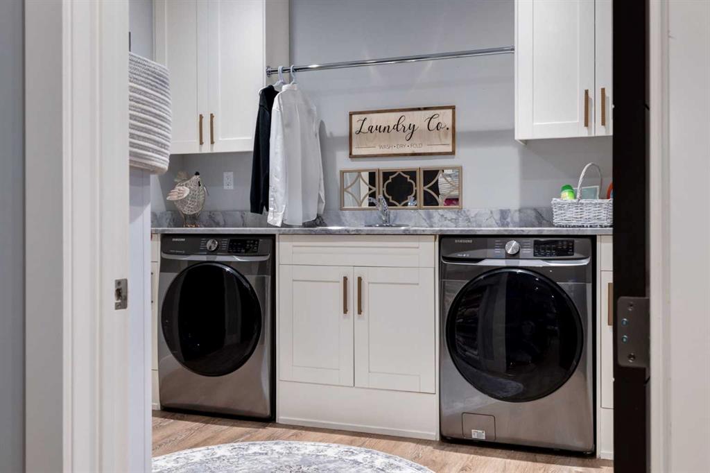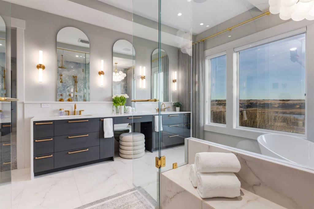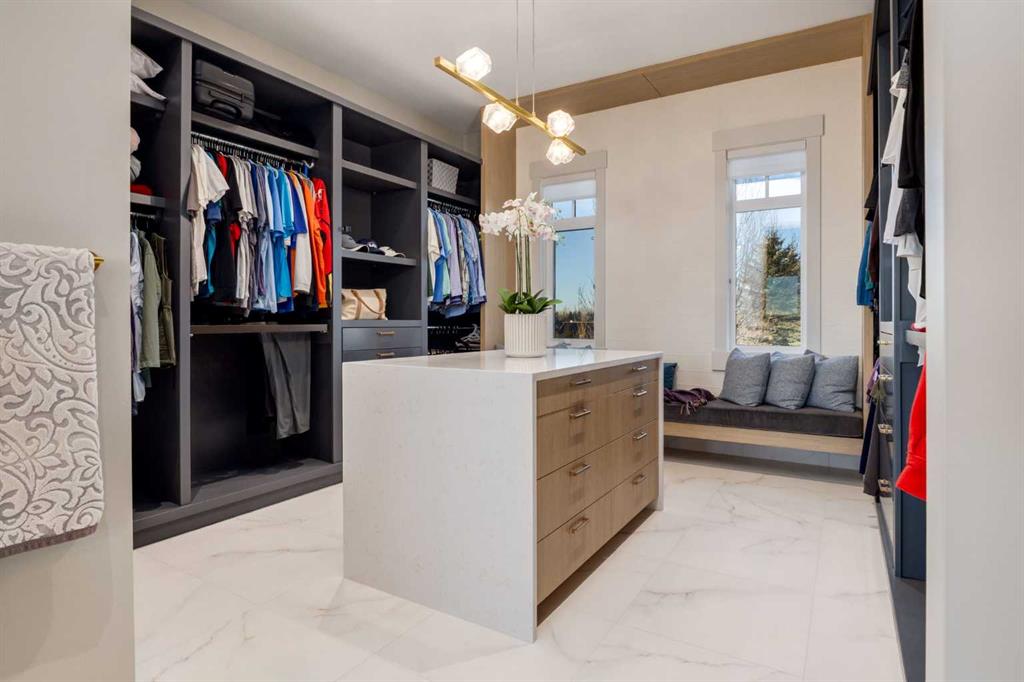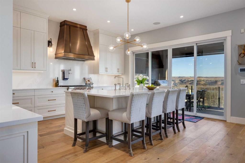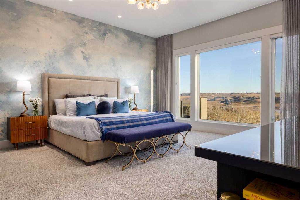 OPEN HOUSE SUNDAY FEBRUARY 15TH - 1PM TO 4PM. Set high on the escarpment in North Springbank is the most beautiful bungalow with unobstructed views of the city skyline, Bow River, the Springbank Links golf course, the mountains to the West and the breathtaking valley set below. Extensively renovated in 2022 and 2024, this property features over 2800 SF on the main level, over 400 SF on the outdoor living room deck, and another 2400 SF on the lower-level walk-out. The designer kitchen is gorgeous and has a beautiful butler’s pantry with a full wet bar and wine fridge. The living room is open to the dining room and kitchen areas and overlooks the stupendous views. The primary suite encompasses the entire SE wing of the home and has the most luxurious ensuite showcasing a gold framed shower, freestanding bathtub and waterfall vanities. The lower level features a games room, media area, home gym and three large bedrooms, each with their own ensuites and walk-in closets. The yard is professionally landscaped with mature trees and extensive garden areas. The oversized four car garage features a second mud room. This is a very special property in a unique location at the end of a private cul-de-sac and is within 10 minutes to local and private schools, shopping and recreational facilities.