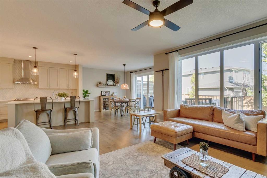 Welcome to 150 Cranbrook Circle – Nestled within an EXCLUSIVE POCKET OF CRANSTON RIVERSTONE, this property sits just steps from a children’s tot park and the BOW RIVER PATHWAYS. Situated on a beautifully landscaped corner lot, this warm and welcoming home offers over 2,600 sq.ft. of thoughtfully designed living space—ready for your family to create new memories in a setting surrounded by nature. A BRIGHT TWO-STOREY FOYER greets you, open to the level above. Morning light floods the great room through a wall of OVERSIZED WINDOWS overlooking the spacious backyard and mature trees. Step outside to a large back deck with plenty of room for dining and lounging, and unwind in the inviting hot tub after a long day. The kitchen, styled with full-height cabinetry, QUARTZ COUNTERTOPS, and ELEGANT HERRINGBONE TILE, connects seamlessly to the mudroom and includes a LARGE PANTRY plus a convenient coffee bar/nook tucked neatly out of sight. A MAIN-FLOOR OFFICE enjoys excellent natural light—perfect for working from home. Upstairs, the bonus room captures tranquil RIVER VIEWS, while three generous bedrooms and a large laundry room provide ideal family function. The bright primary ensuite features expansive windows, a DOUBLE VANITY, OVERSIZED SHOWER, and a HUGE WALK-IN CLOSET. The spacious basement awaits your creative touch, and the TRIPLE GARAGE plus corner lot offer AMPLE PARKING and STORAGE options. Discover this beautiful home in CRANSTON RIVERSTONE—Calgary’s best-kept secret—where Fish Creek Park and the Bow River are just outside your door. Enjoy easy access to schools, shopping, restaurants, and the South Health Campus and Seton YMCA, all only minutes away.