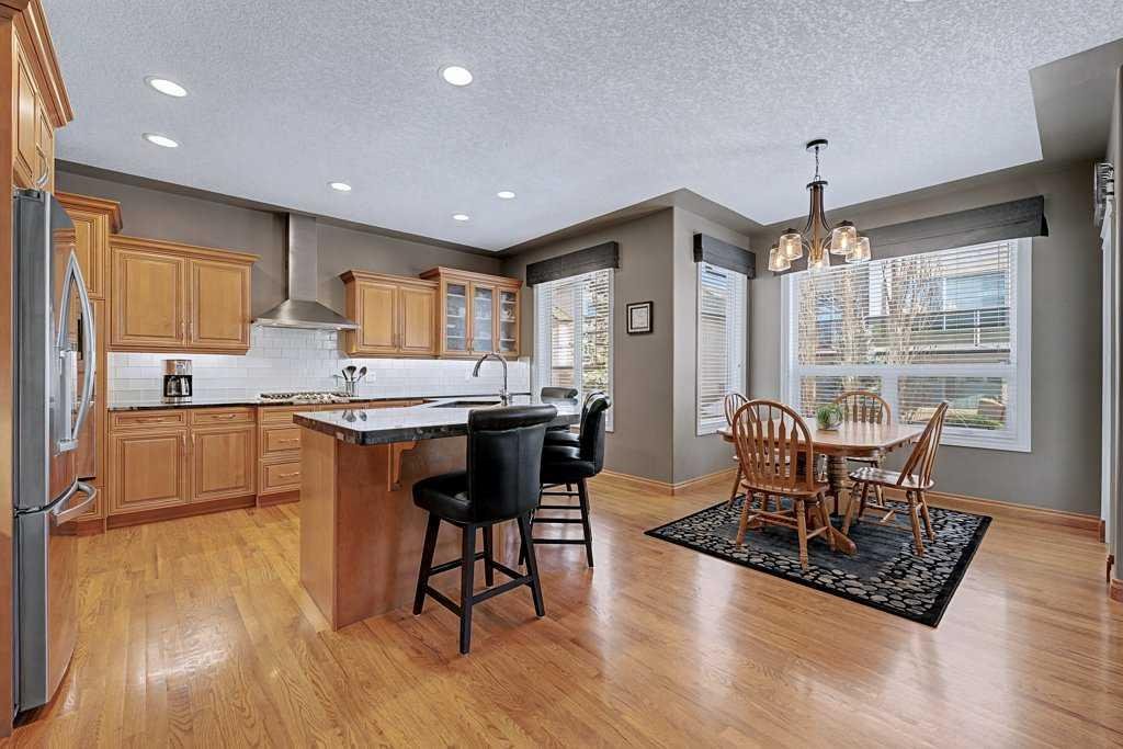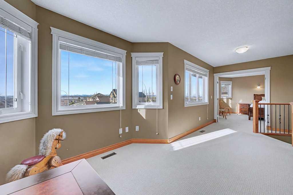 Rare opportunity in Arbour Vista, Arbour Lake featuring one of the community’s most impressive quad garages—a workshop-quality space with heated floors, epoxy coating, floor drains, and 11-foot ceilings ideal for a hoist, designed for car enthusiasts, hobbyists, or the ultimate man cave. Situated in the exclusive Arbour Vista enclave of Arbour Lake, this custom-designed home offers over 3,188 sq ft of total developed living space and is truly move-in ready. From the moment you enter, the elegant, curved staircase, rich hardwood flooring, and extensive built-in cabinetry create a sense of timeless quality and comfort. The heart of the home is the spacious open-concept kitchen featuring a large island, updated appliances including a gas cooktop, and a convenient walkthrough pantry to the garage—perfect for everyday living and entertaining. The bright living room showcases large windows, built-in cabinetry, and a cozy fireplace, while the dining area opens to a deck and patio ideal for summer gatherings. A generous main-floor office provides the perfect work-from-home setup. Upstairs, enjoy stunning mountain views from the primary retreat and bonus room, while the primary suite features dual walk-in closets with built-ins and a luxurious five-piece ensuite. Two additional bedrooms and a spacious bonus room complete the upper level. The fully finished basement features in-floor heating and an entertainment area complete with a wet bar, fridge, and dishwasher—perfect for hosting family and friends. The lower level also includes a large bedroom, four-piece bathroom, and a utility room with ample storage space. The home is equipped with air conditioning, surround sound, a sprinkler system, and numerous thoughtful upgrades throughout. The exceptional quad garage also features heated floors, floor drains, an oversized door, epoxy flooring, checker plate aluminum wall finishes, and a rear door leading to an additional parking pad—an incredibly rare feature in the area. Parking for 8 vehicles on property. Experience the lifestyle that comes with living in Arbour Lake, Calgary’s only lake community, offering year-round recreation including swimming, fishing, boating, and winter skating, along with convenient shopping and dining at Crowfoot Village and quick access around the city or out to the mountains. This is a rare opportunity to enjoy space, craftsmanship, and an unbeatable lifestyle in one of Calgary’s most desirable lake communities.