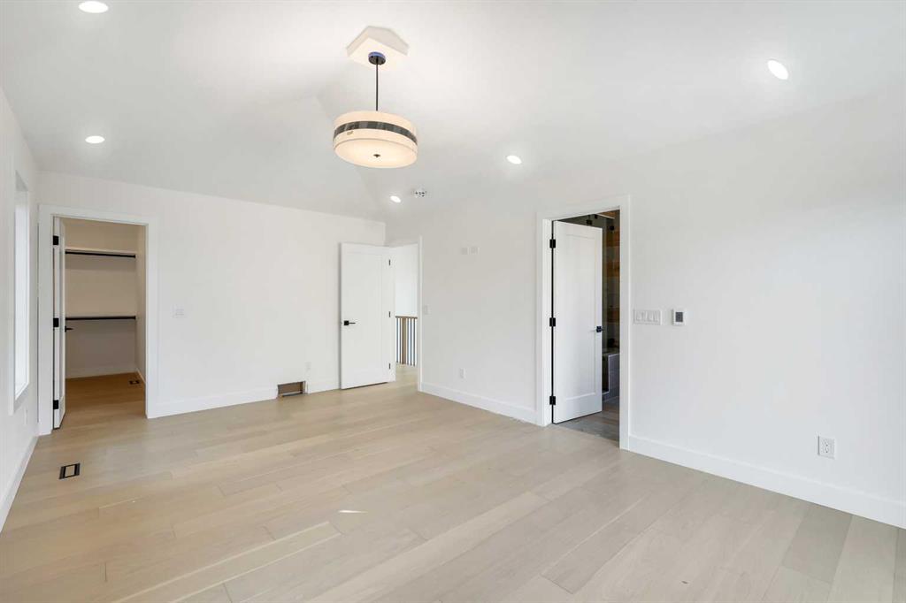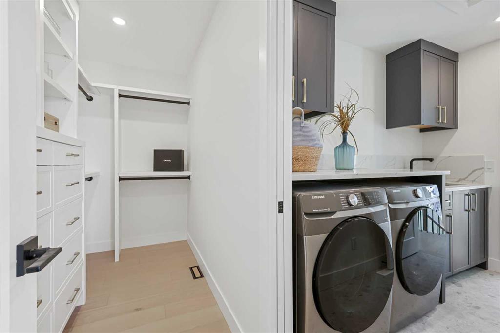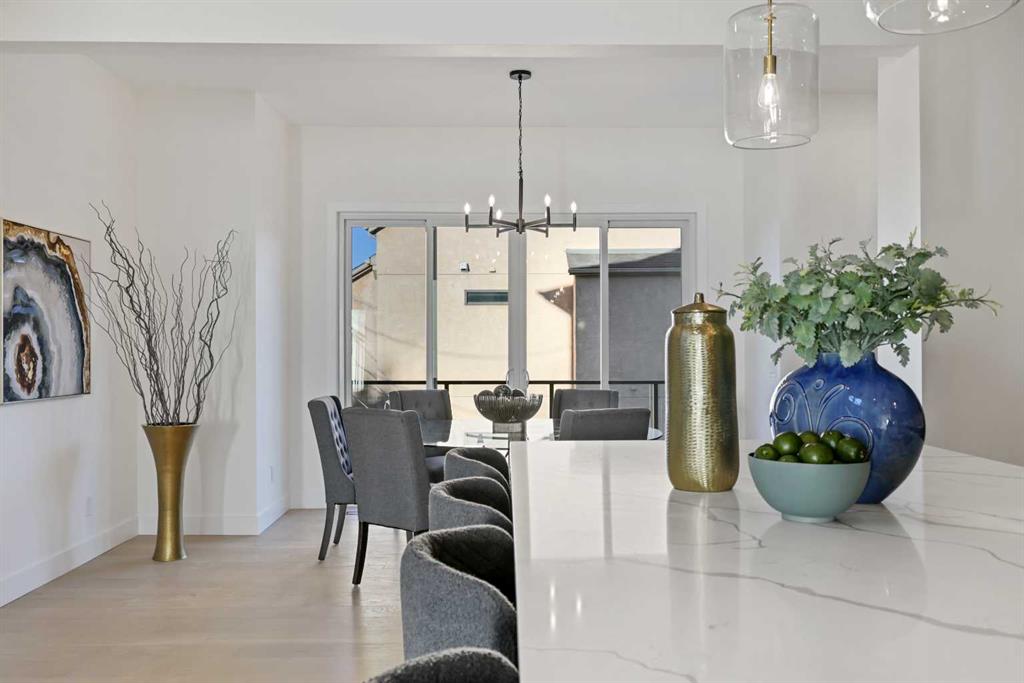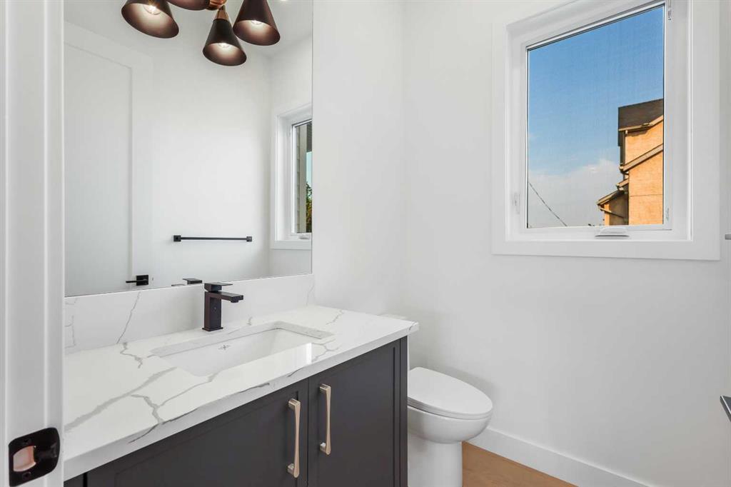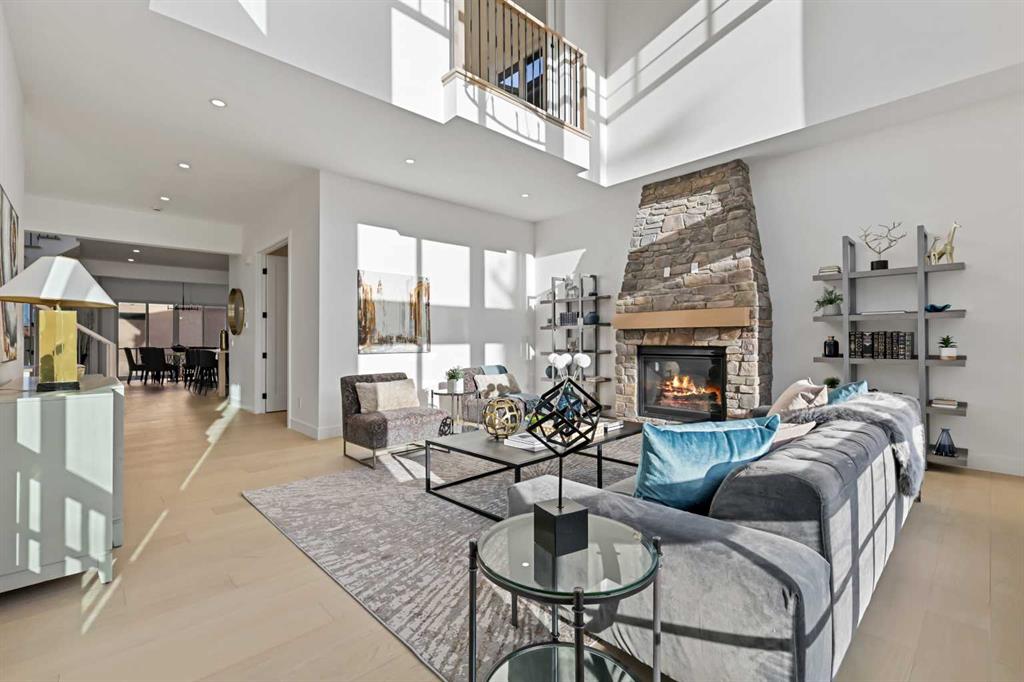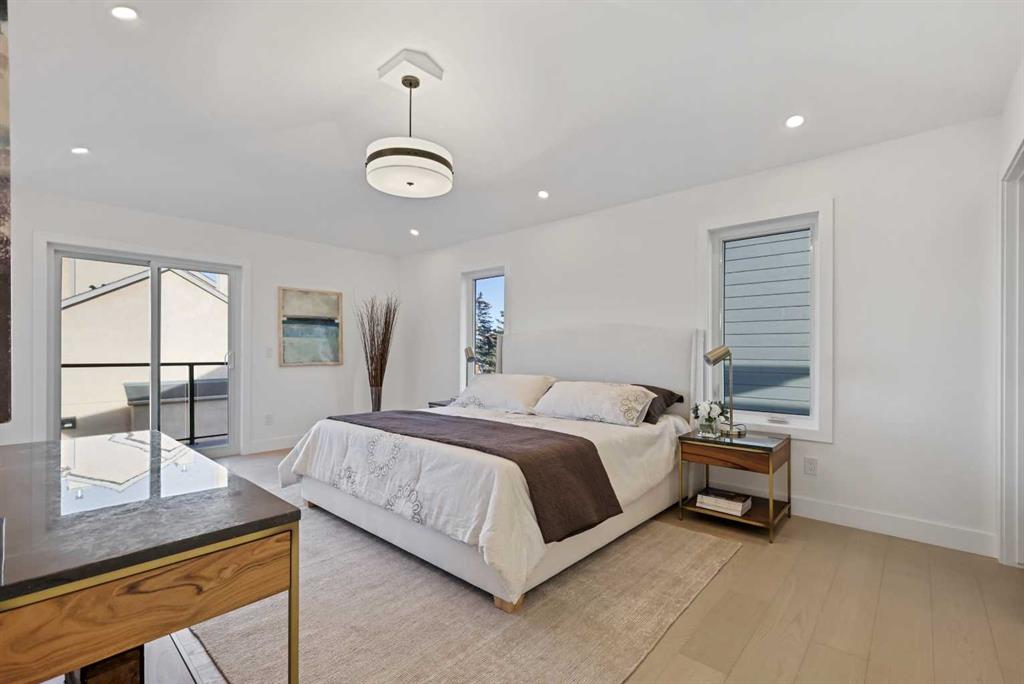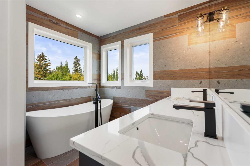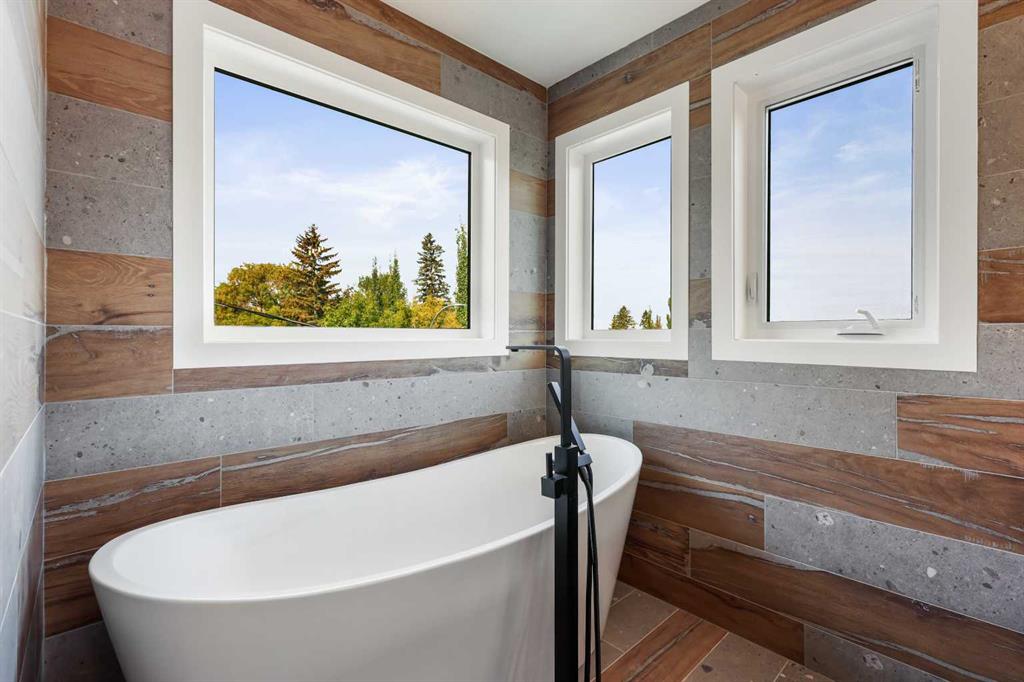 Welcome to 1516 22 Ave SW — a brand-new, luxurious infill offering panoramic Downtown views in the heart of Calgary’s highly sought-after Bankview neighborhood. With 3,465 square feet of meticulously crafted living space, this modern masterpiece boasts 4 spacious bedrooms, 4 designer bathrooms, and a stunning fusion of comfort, style, and sophistication. Step inside to soaring vaulted ceilings accented with rich wood tones, creating a warm and inviting atmosphere. The sun-drenched living room features custom built-ins, a dramatic stone gas fireplace, and expansive bay windows that frame the skyline. A versatile den or home office adds functional flexibility. The chef-inspired kitchen is a standout, equipped with premium GE Café appliances including a wall oven, gas cooktop, and microwave. Elegant quartz countertops, chic blue cabinetry, a generous island, and a handcrafted stone range hood are complemented by a crisp white tile backsplash. A dedicated wine cellar adds a touch of indulgence. The adjacent dining room is ideal for everyday meals or elegant entertaining. Upstairs, the serene primary suite offers a walk-in closet with custom built-ins and a luxurious 5-piece ensuite with a soaker tub, dual sinks, and a glass steam shower. Two additional bedrooms, each with their own walk-in closets, share a stylish 4-piece bathroom. Enjoy sweeping Downtown views from the private second-floor deck. The upper-level laundry room includes a washer, dryer, sink, and ample storage for added convenience. The fully developed walk-out basement is perfect for entertaining or relaxing, featuring a large family room, wet bar, guest bedroom, 3-piece bath, and generous storage. The oversized lot enhances the home’s spacious feel and natural flow. Perfectly positioned near 17th Avenue’s vibrant shops and restaurants, Marda Loop, Mount Royal University, and with easy access to Downtown, this extraordinary residence is more than a home — it’s a statement of modern luxury living.