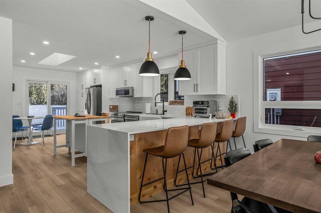 Welcome to this beautifully renovated 4 bedroom + den, 3 bathroom home with a double car garage, ideally located in the highly sought after, family friendly Cougar Creek neighborhood; just steps from parks, walking and hiking trails, and minutes to downtown. Fully gutted and thoughtfully redesigned in 2023 including new windows and roof, this home now features a bright, open-concept main living space that feels both modern and inviting. The main level offers spacious bedrooms for convenient single level living, while the lower level provides additional flexibility with a bedroom, den, and full bath, ideal for guests, games, a home office, or growing families. Enjoy breathtaking mountain views from every angle. The living room’s full length bay window beautifully frames the South Mountain views, while sliding glass doors in the kitchen open to the fenced backyard with no rear neighbors, showcasing stunning North East mountain vistas and creating seamless indoor/outdoor flow. The kitchen is a true showpiece, featuring waterfall countertops with an eating bar, new appliances, a stylish island with new sink, modern lighting, and luxury vinyl plank flooring that extends throughout the entire home. All bathrooms have been fully renovated, complete with heated floors for added comfort and a touch of luxury. Step outside to the large deck off the dining area; an ideal extension of your living space, perfect for entertaining, outdoor dining, or simply relaxing and taking in the peaceful surroundings. As an added bonus, the majority of the stylish furnishings are included, allowing you to move in and immediately enjoy this beautifully curated space. The double garage conveniently opens into a functional mudroom with plenty of space for outdoor gear and storage. Downstairs, the spacious lower level offers incredible versatility, along with ample storage and a laundry area. This turn key home blends modern upgrades, thoughtful design, and unbeatable views, all in an exceptional location.