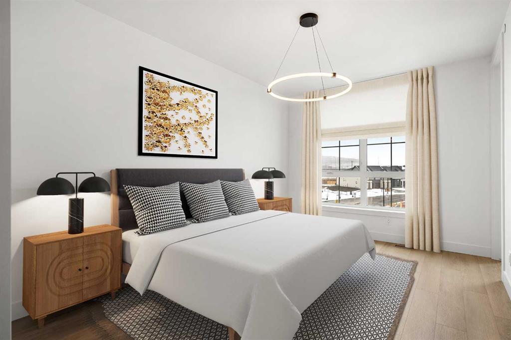 Welcome to 16 Greenwich Heath NW, a one-of-a-kind, four-story Modern Brownstone meticulously crafted by Partners in the new NW community of Upper Greenwich. As Calgary’s only Modern Brownstone fronting a canal, you’ll wake up to the gentle flow of water, surrounded by tranquility and breathtaking views. Blending the timeless elegance of classic 19th-century brownstone architecture with modern sophistication, this no-condo-fee residence showcases unparalleled craftsmanship and an unbeatable location, just steps from the Bow River and Calgary Farmers’ Market West. Currently under construction, it also gives you the rare opportunity to collaborate with an award-winning designer, allowing you to select finishes and add your own personal touch while being guided to create a home that is uniquely yours. Every detail reflects Partners’ reputation for quality, with standout features including a private elevator, rooftop patio, and an oversized heated rear-attached double garage. The expansive foyer opens to a versatile office or bedroom, a full bathroom, and a mudroom, while the main living level is an open-concept showpiece with 10’ ceilings, oversized windows, a chef-inspired kitchen, spacious dining area, elegant living room anchored by a fireplace, and a rear deck with enclosed storage. A powder room with floating vanity completes this floor. Upstairs, the primary suite feels like a retreat, offering a spa-inspired ensuite with in-floor heating, dual vanities, a fully tiled glass shower, and a freestanding soaker tub. Two additional bedrooms, a full bathroom, and a well-planned laundry room complete this level. The fourth floor is dedicated to entertaining, with a wet bar, beverage fridge, and access to a private rooftop patio with a hot tub rough-in, where you can take in the serene water views. Designed with cutting-edge mechanical systems for efficiency and year-round comfort, this residence is perfectly located within Upper Greenwich, a master-planned community that balances beauty and functionality. With walking paths, sports courts, playgrounds, and nearby shops and restaurants, plus WinSport at your doorstep and the Rocky Mountains just 45 minutes away, Upper Greenwich offers a vibrant, urban, walkable lifestyle paired with endless recreation. A truly one-of-a-kind home, ready to be made your own.