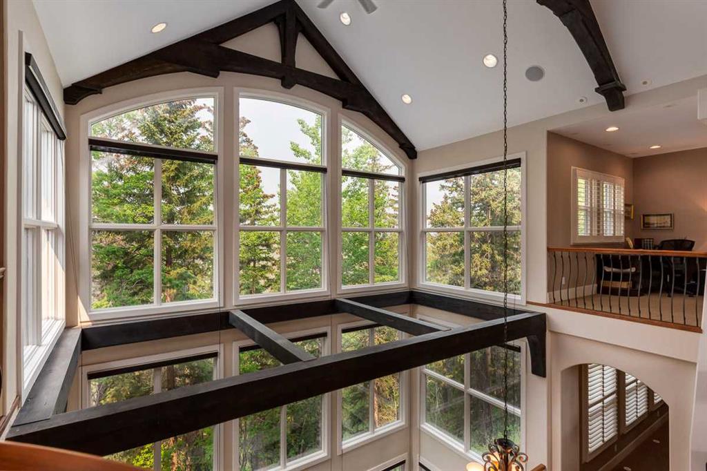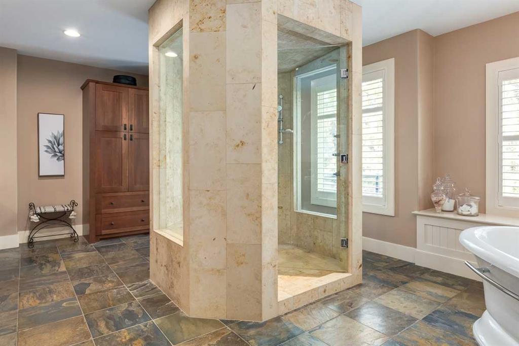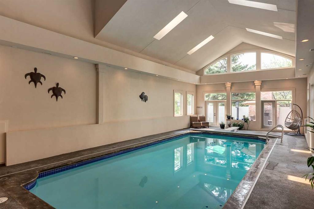 The walkout basement is designed for entertainment, featuring a family room, games area, bar, theatre room, gym, and two additional bedrooms.There is a plethora of upgrades in this home but none more amazing than the large indoor pool, with its own sealed room for safety and independent HVAC system for maximum comfort. Additional features include multiple tile surround gas and wood burning fireplaces, large home office, three steam showers, in-floor heating with multiple zones, a dual coil hot water heater, maintenance-free concrete decks, irrigation system, 4 car heated and finished garage, built in speakers, custom entertaining bar in the basement and the list goes on…