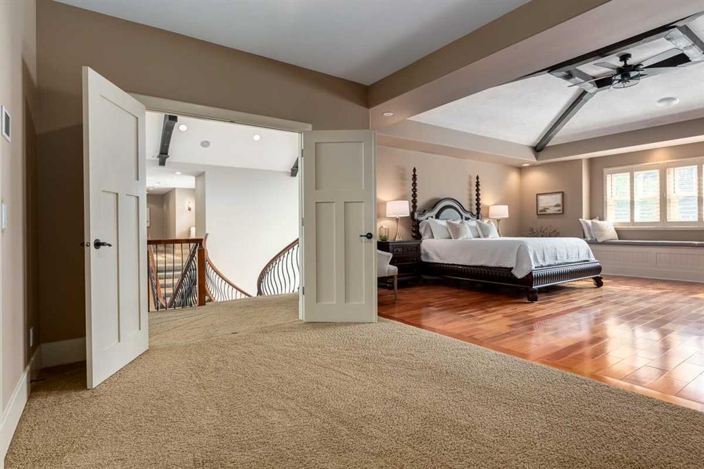 Ascend the gorgeous staircase to the upstairs level with the primary suite that will blow you away, offering hardwood floors, vaulted ceilings, and a private balcony overlooking the pool. The spa-like ensuite bath includes a steam shower, large stand alone tub, beautiful tile and a private balcony. Three additional bedrooms are located on the opposite side of the floor, including one with a 4-piece ensuite and two sharing a Jack & Jill bath. A cozy homework or hangout space with a fireplace completes this level.