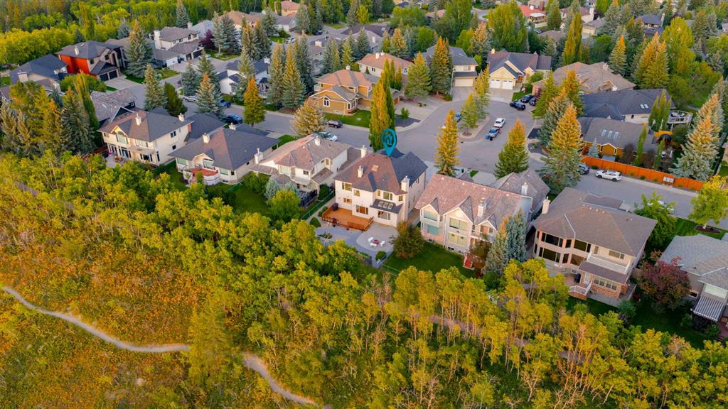 Welcome to your new, perfectly located home! These homes on the ridge don't come onto the market often so this is your chance to get into a home that is in one of the best locations in the estate area of Evergreen! Unmatched views, luxury, privacy, peace and quiet and a custom built home await you with an abundance of nature right outside your back yard! This home was carefully custom built by a European master craftsman and is offered for sale by the original owner. As you enter, you are greeted by soaring ceilings, generous sized entryway with a den/flex room at the front of the house and a dining room with a built in china cabinet on the other side of the entryway. As we make our way through the entry you have a formal dining room (could double as a den with glass doors for privacy) through to the main living areas you have a gorgeous living room with a fireplace, custom built ins and THREE skylights! The kitchen offers the best views to the west of the yard and Fish Creek, ample counter and cabinet space, gas cooktop, wall oven, corner pantry and tiled backsplash! The main floor is completed with a half bath, mud room with laundry and a sink and access to the MASSIVE double garage that can easily accommodate 3-4 vehicles (and it has heated flooring and a drain!) Let's make our way up the elegant curved staircase to the Primary suite that has a walk in closet, a double sided fireplace, dual sinks in the vanity, separate shower and tub with the most amazing views! (You will fall in love!) In addition to the primary bedroom there are THREE more bedrooms and two of them have ensuite bathrooms and there is also a full bathroom upstairs! The huge basement is awaiting your creative ideas and has plenty of room for future development! Other amazing features are the hail resistant upgraded shingles, the 1 year old massive deck, low maintenance yard (no grass), gas firepit in the back yard, custom woodwork throughout this home, heated floors in the basement and garage, 2 furnaces and 2 hot water tanks, Fish Creek and Mountain views and gleaming hardwood flooring on the main floor! You are also just minutes away from Stoney Trail, tons of the areas amenities, parks, playgrounds and schools! This home offers the perfect blend of luxury custom built finishes, functional upgrades and an unbeatable location! Whether you enjoying a quiet morning coffee with park views, hosting a summer BBQ by the firepit or warming up by one of the fireplaces - this property is thoughtfully designed for comfort, style and a wonderful home to raise your family in!