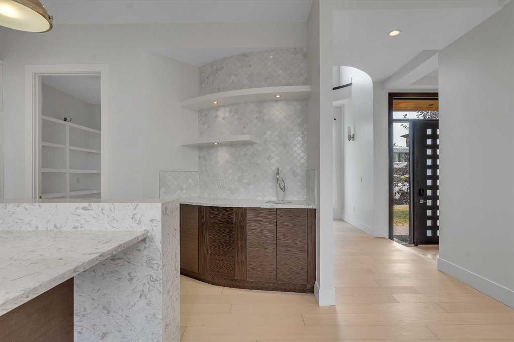 Recently renovated to achieve the perfect harmony of sophistication, light & function, this luxurious inner-city residence offers over 4,800 sq. ft. of refined living space backing west amid treetop outlooks & glowing sunset skies. A dramatic entry sets the tone with wide plank hardwood & a marble inlay, leading to soaring ceilings framed by custom millwork, exposed beams & black-clad windows that capture every nuance of daylight. French doors open to a private office detailed with built-ins, creating an ideal work-from-home sanctuary. The heart of the home is an exquisite designer kitchen that balances modern minimalism with warmth, showcasing pristine white cabinetry contrasted by rich wood accents, a waterfall-edge granite island & professional-grade Wolf appliances including a 6-burner gas range, steam oven & built-in espresso system. A curved wet bar & walk-through butler’s pantry enhance the home’s entertaining flow. Beyond, the dining room’s double-height ceiling, sculptural chandelier & wall of glass doors invite connection between indoors & out, while an automated awning provides shade over the upper deck for sunset dinners. The adjoining living room blends quiet luxury with comfort around a sleek linear fireplace wrapped in full-height marble, its ambiance carried by soft recessed lighting & serene west views. Ascend the glamorous curved staircase illuminated by a cascading crystal chandelier to the upper level. French doors lead to a sumptuous primary retreat where a private balcony, spa-inspired ensuite with steam shower & soaker tub, and a custom dressing room create a boutique-hotel experience. 2 additional bedrooms, each with its own ensuite, complete this level. The fully finished walkout lower level continues the home’s refined aesthetic, offering a seamless blend of comfort & sophistication. Heated epoxy floors provide quiet warmth underfoot, while a sleek wet bar invites easy entertaining & relaxed evenings with friends. The spacious recreation area is ideal for movie nights or game-day gatherings, complemented by a well-appointed fourth bedroom & a stylish full bath for guests. A versatile den adds flexibility for a gym, yoga studio or private theatre, & dual stairwells connect this level effortlessly to the rest of the home for exceptional flow. Outside, the fenced west yard offers ample green space for relaxation or play, with a detached double garage featuring its own electrical panel, drive-through door & additional RV parking. Thoughtful upgrades include remote blinds, smart thermostats, tankless water heating, central air conditioning, in-floor boiler heat, sump pump & central vacuum. Perfectly positioned within Hounsfield Heights/Briar Hill, this exceptional property offers unmatched access to parks, top schools, SAIT, Kensington, the Bow River pathway system, North Hill Centre, hospitals, downtown & the mountains beyond—all wrapped in elevated design & timeless luxury!