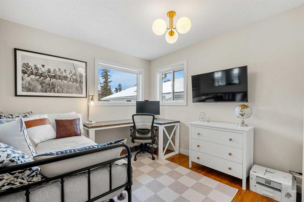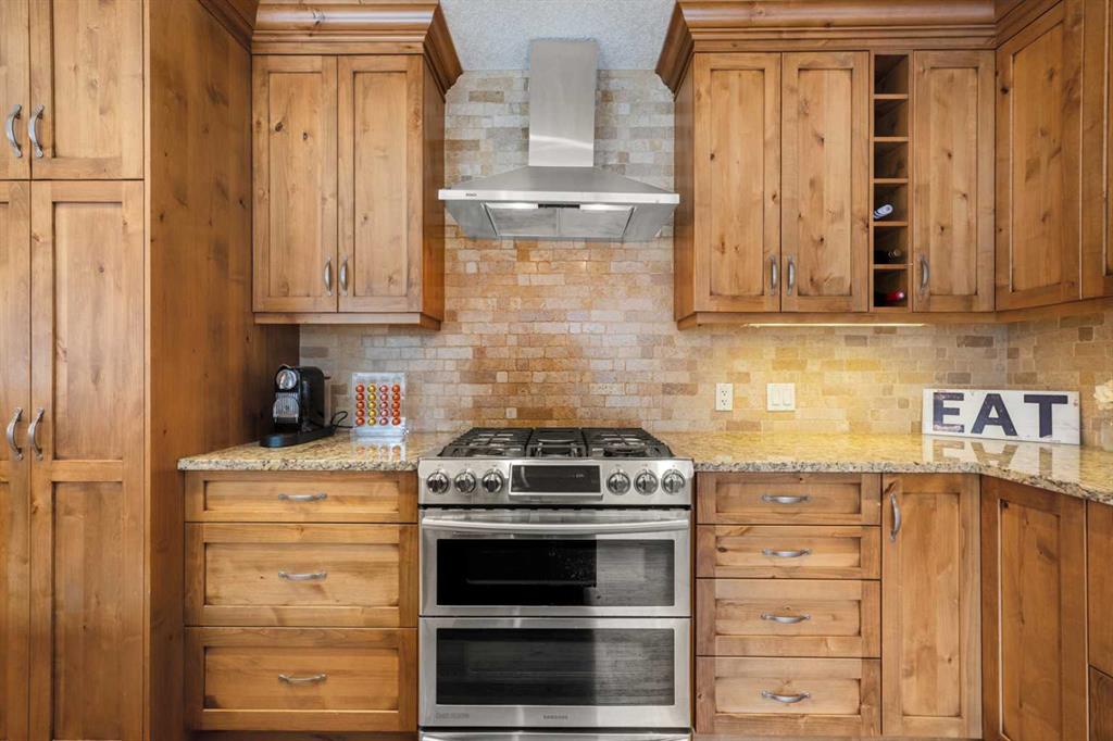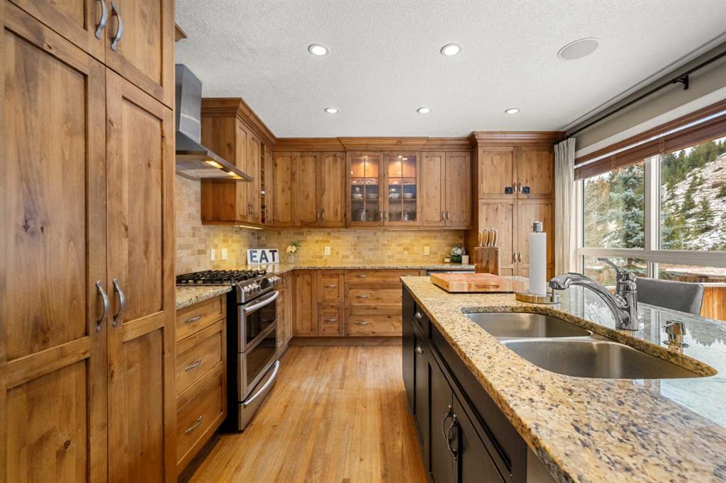 With 4 bedrooms, a fully finished basement, and major mechanical upgrades already done—including a newer roof, central A/C, and updated furnace and hot water tank—there’s truly nothing left to do but move in. A tiled entryway leads to a grand staircase and a warm, inviting living area. The jaw-dropping kitchen is the heart of the home, featuring stunning cabinetry, granite counters, a beverage centre, gas stove, and a massive dining nook wrapped in windows with patio-door access to your private backyard oasis. Upstairs, you’ll find three spacious bedrooms, including a perfect home-office option with corner windows framing Three Sisters and Lawrence Grassi mountain views. The primary suite impresses with a cedar-finished ceiling, generous closet, and a beautiful ensuite with dual sinks and a large walk-in shower.