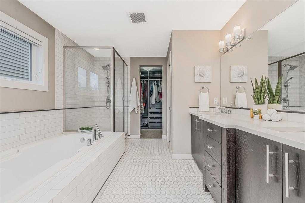 Upstairs, a spacious bonus room serves as the ultimate family lounge or media retreat. The luxurious primary suite is a private sanctuary, complete with panoramic south-facing windows, a lavish spa-inspired ensuite with quartz double vanities, a frameless glass shower, deep soaker tub, and a custom walk-in closet. Two additional bedrooms, a full bathroom, and upper-level laundry complete this floor with both comfort and practicality in mind.