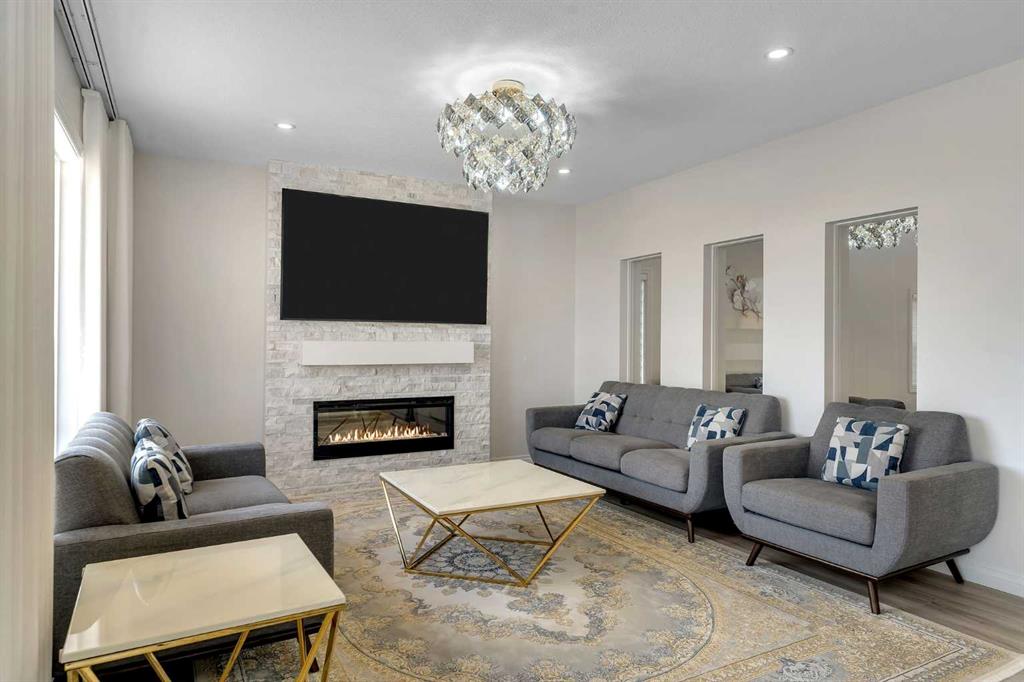Welcome to this stunning and highly upgraded residence in the desirable community of Homestead. Perfectly situated with a playground right across the street and no neighbors behind, this home backs onto serene green space, offering both privacy and breathtaking views. Step inside and be greeted by a grand open-to-below foyer with dazzling chandeliers that set the tone for the elegance throughout. The main floor boasts a bedroom with full bath, making it ideal for multi-generational living. Enjoy not one but two spacious living rooms, a cozy fireplace feature wall, and a chef’s dream kitchen complete with a spice kitchen for all your culinary adventures. Upstairs, you’ll find a beautiful bonus room and four large bedrooms, including two luxurious master suites with spa-inspired ensuites. Every corner of this home has been thoughtfully designed with upgraded finishes, elegant lighting, and modern fixtures. The backyard features a huge deck, perfect for entertaining and enjoying the peaceful green space. With a triple car garage, there’s plenty of room for your vehicles and storage needs. This home truly combines luxury, comfort, and functionality—a rare find in one of Calgary’s fastest-growing communities.