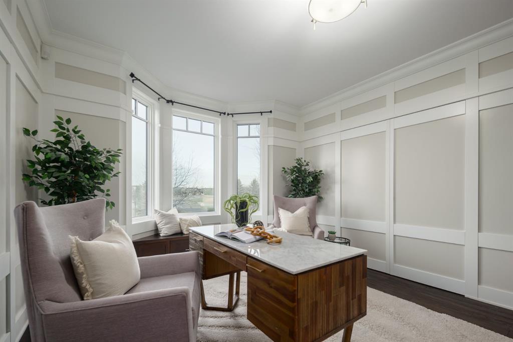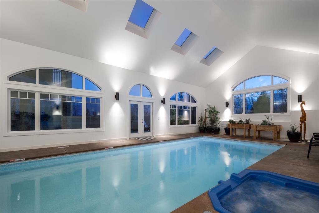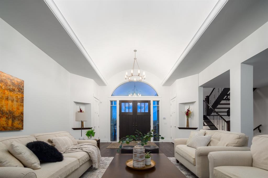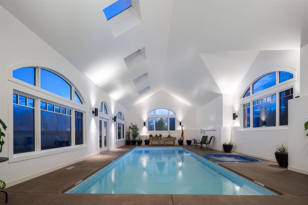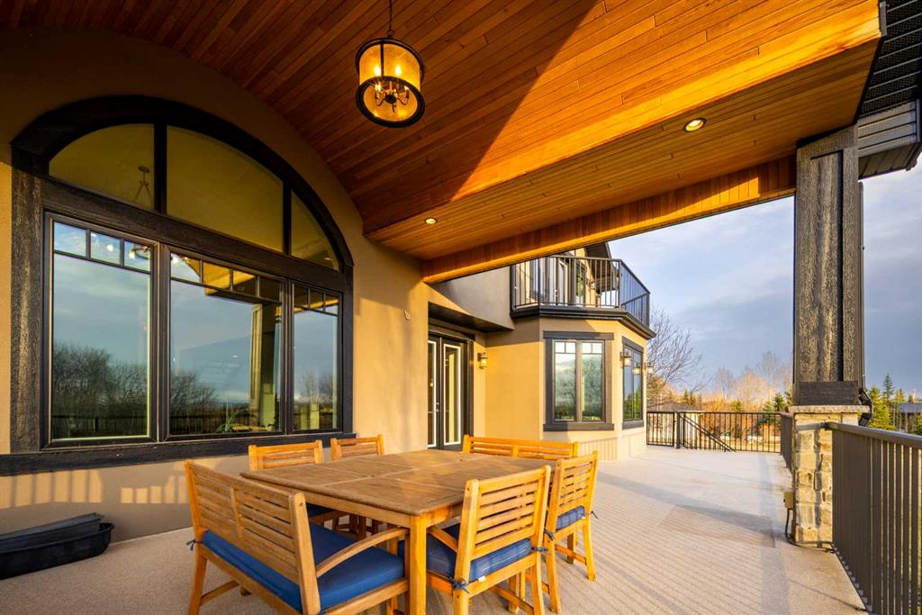 Located in prestigious Grandview Estates on a prime Southwest-facing lot with breathtaking Rocky Mountain views, this impressive custom-built estate offers over 8,500 square feet of exceptionally designed living space executed by renowned builder Maillot Homes. Recently refreshed with an updated color palette, the home feels modern, bright, and move-in ready. Featuring one of the largest residential solar installations in Canada, this property combines remarkable energy efficiency with luxurious family living. A grand barrel-vaulted ceiling feature welcomes you inside, where expansive living and dining areas are connected by a striking two-sided fireplace and framed by oversized windows that flood the space with natural light. The gourmet kitchen is truly the heart of the home, offering dual oversized islands, top-of-the-line Wolf & Sub-Zero appliances, abundant cabinetry, and a sun-drenched breakfast nook that opens onto the southwest deck — perfect for casual family meals or elegant entertaining. Designed for gathering and memory-making, the residence features an incredible indoor saltwater pool and hot tub oasis, an inviting media room for movie nights, and a wine room. A lower-level secondary kitchen, expansive rec room, and direct access to the pool area complete the walkout basement, where comfort meets entertainment at every turn. Thoughtful architectural details include an elevator providing access to all levels as well as the garage, ensuring long-term accessibility. A custom-built, handicap-accessible Jack and Jill bathroom on the lower level features a curb-less shower and a wheelchair-friendly sink, an oversized four-car garage with dog wash and RV bay, and an abundance of strategically placed skylights enhancing the natural light throughout the home. The upper level offers a bonus room suite with a private bedroom and full ensuite, perfect for guests or extended family. The primary retreat is a true sanctuary, featuring a private balcony with unobstructed Southwest views, a romantic two-sided fireplace, and a spa-like ensuite with in-floor heating and a large walk-in closet. A dedicated study loft with built-in desks provides a quiet workspace for students or remote work needs. The walkout level is equally impressive, offering two additional bedrooms, a change room with full bathroom for pool guests, a second laundry area, and expansive entertaining spaces that open seamlessly to the outdoors. The fully landscaped outdoor areas include an expansive Southwest deck, a lower walkout patio, a fenced dog run, invisible pet fencing, and a cozy firepit area, making this property as functional as it is beautiful. With Calgary’s top private schools and an abundance of retail shopping within a ten-minute drive, this property is ideally suited for families looking for privacy paired with convenience. This extraordinary residence is a true legacy property, offering an unparalleled lifestyle just minutes from city conveniences.