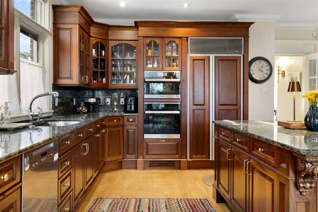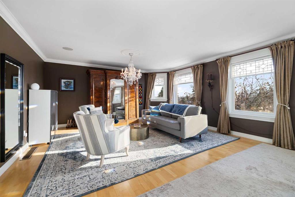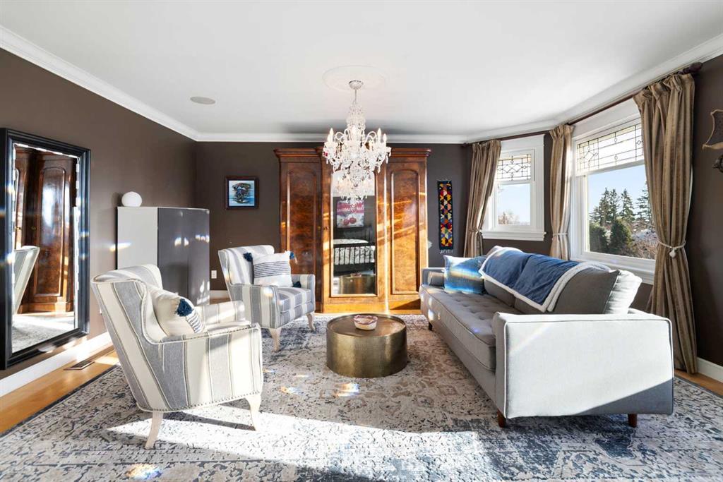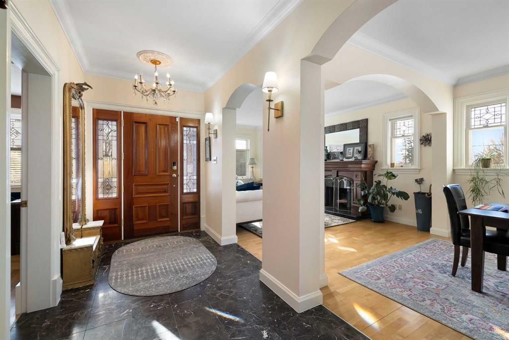 Stepping into this well-maintained 1912 estate in Shaganappi feels like entering a livable piece of art. High ceilings & marble floors set the stage for an interior where historic soul meets modern precision. With over 3,800 square feet of curated living space, the layout was designed to host grand events. As you step in, you're welcomed by dual living spaces and two dining features framed by custom mahogany millwork, an executive office with built-ins, and the warmth of a classic wood-burning fireplace. The daily rhythm revolves around light and luxury. The kitchen is anchored by rich mahogany cabinetry, newer Miele appliances, and vast counters scaled for entertaining. Mornings begin in the primary suite, bathed in east-facing sunlight with direct views of the Calgary skyline, before stepping into a custom-built ensuite. While heritage homes often lack modern utility, investments in this gem ensure effortless living with dual laundry setups on both the main and upper floors, alongside newly upgraded bathrooms. The lower level maximizes versatility with a separate entrance, a full bathroom, and a dedicated flex space. A third fireplace warms the mahogany-trimmed rec room, but a true highlight is the custom movable bookcase, which seamlessly swings open to reveal hidden storage and a utility room. Outside, the west-facing yard is a private summer oasis featuring a four-zone irrigation system, stone patio, and built-in water feature. Inner-city living usually means fighting for parking, but this property redefines urban convenience with a massive garage and parking pad at the back of the property and a long interlocking brick driveway in front. Located less than 10 minutes from downtown. Join the Shaganappi community association for access to private tennis courts, outdoor rink and community events or take your pup to either of the two off-leash parks within blocks from the house or walk to the conveniences of 17th Ave or the LRT.