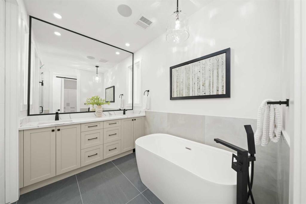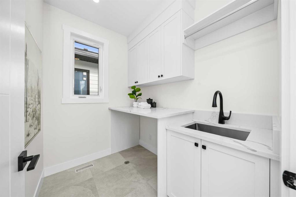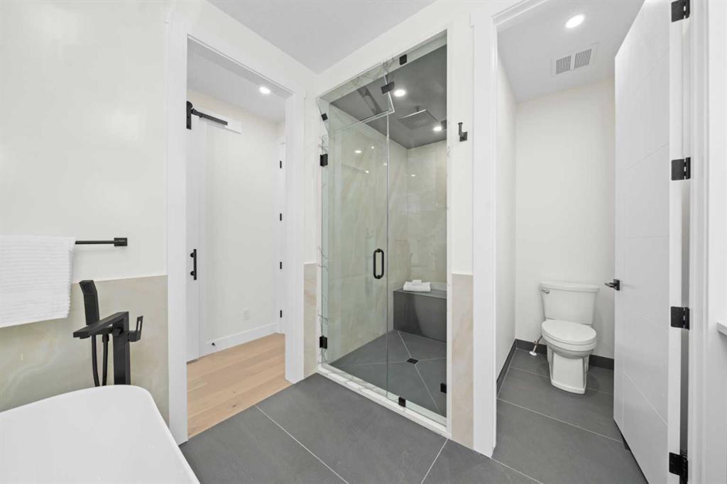 Upstairs, enjoy a spacious laundry room, two generous bedrooms, and a luxurious primary retreat complete with a built-in walk-in closet and a spa-like 6-piece ensuite with heated floors. Indulge in the double vanity, elegant soaker tub, glass shower with steam rough-in, and refined finishes that create a peaceful sanctuary.
