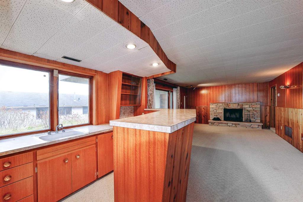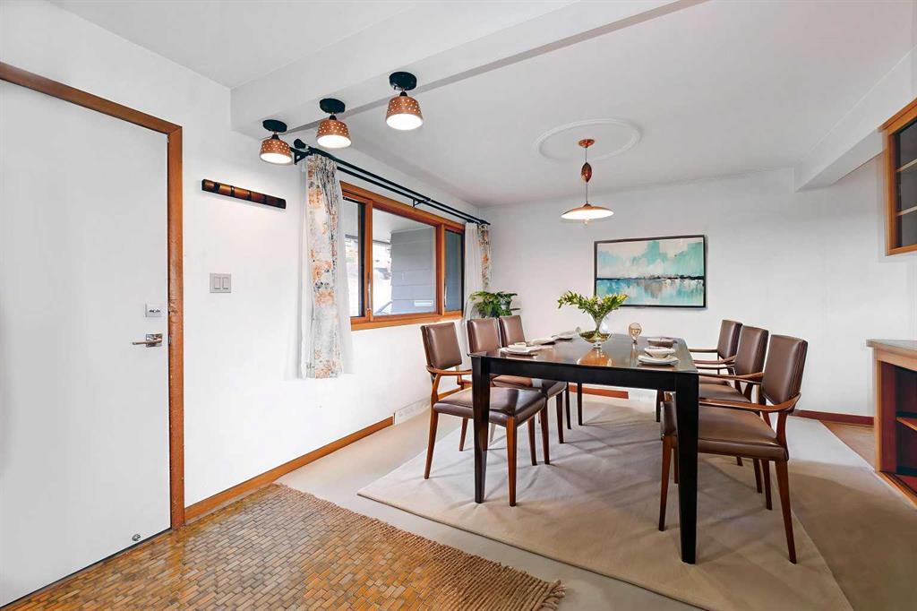 Step inside and you’re greeted with an inviting mid-century charm flooded with natural light. The front dining room flows seamlessly into a good sized kitchen complete with original cabinetry and vintage backsplash. The showstopping views continue from the kitchen to the main-floor living room spanning the entire width of the home and opens onto a covered balcony, where you can bask in the south-facing sunshine and take in breathtaking city skyline views.