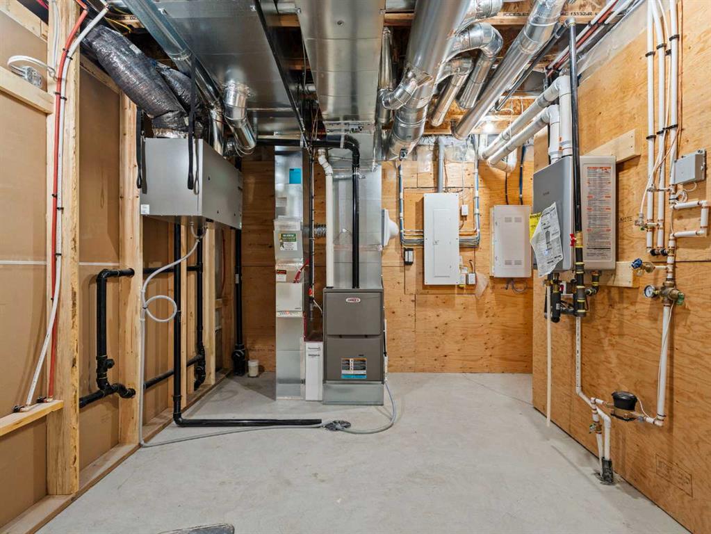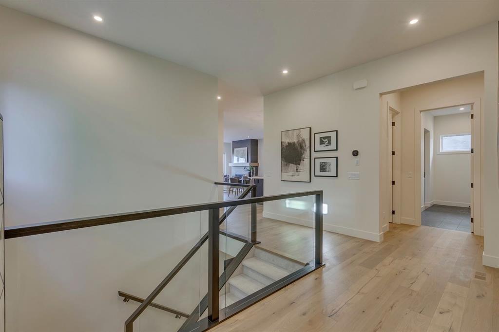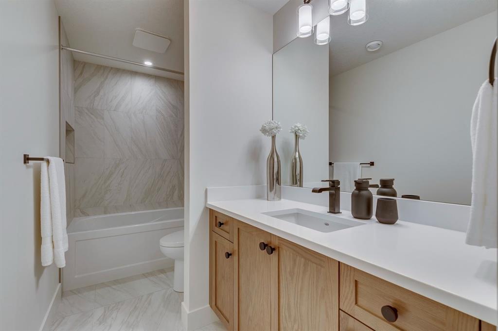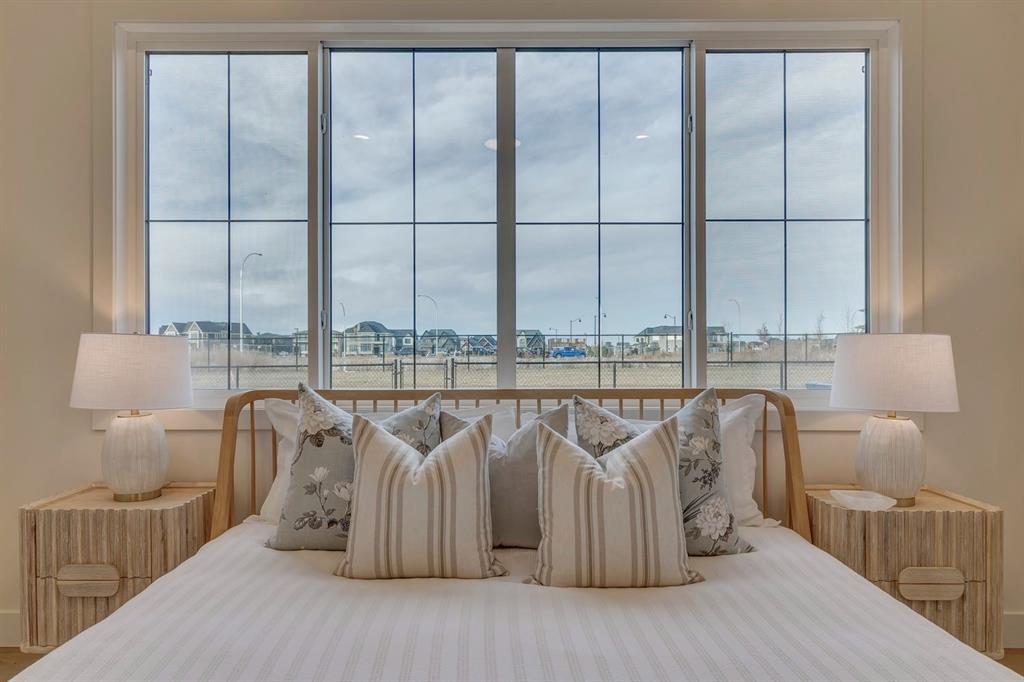OPEN HOUSE SATURDAY & SUNDAY, NOVEMBER 1 & 2 FROM 1:00-4:00 PM.....Nestled in the heart of Calgary's prestigious Mahogany Estates, this brand-new custom-built, 3,200 sq ft bungalow by Baywest Homes redefines lakeside living. With exclusive access to a semi-private dock and beach, this home offers an unparalleled lifestyle in one of the city's most sought-after lake communities. The main level, spanning nearly 1,700 square feet, boasts soaring nine-foot ceilings and wide plank luxury hardwood flooring in natural wood tones, creating a warm and inviting ambiance. The open-concept design seamlessly integrates the living, dining, and kitchen areas, making it perfect for both entertaining and everyday living. The kitchen is a chef's dream, featuring full-height white cabinetry, a striking oversized dark island, and a high-end appliance package that includes a high-end Kitchen Aid fridge-freezer and built-in oven with a convention microwave. Quartz countertops extend as a sleek backsplash, complemented by designer lighting and a butler’s pantry equipped with a bar sink and beverage fridge. The living room, with its elegant feature fireplace, opens onto a north-facing deck overlooking serene green space, complete with a gas line for effortless outdoor grilling. The master suite is a private retreat, offering a spa-like en-suite with heated tile floors, an oversized shower, a freestanding soaker tub, dual vanities, and a private water closet. A spacious walk-in closet and adjacent laundry room add to the convenience and luxury of this space. The main floor also includes a private office with glass French doors, a well-appointed mudroom, and a walk-in closet. Descending to the fully finished basement, you'll find a large recreation room, a family room, two generously sized bedrooms, and a full bathroom with heated floors. The home is thoughtfully designed with ample storage and numerous upgrades, including tankless hot water and triple-paned windows. The attached triple garage, with its 14-foot ceilings, offers ample space for a car lift and is equipped with 220V for a vehicle charging station. This property is a masterpiece of design and functionality, offering the perfect blend of luxury, comfort, and convenience. With its prime location and exclusive amenities, lakeside living in Mahogany has never been more enticing.