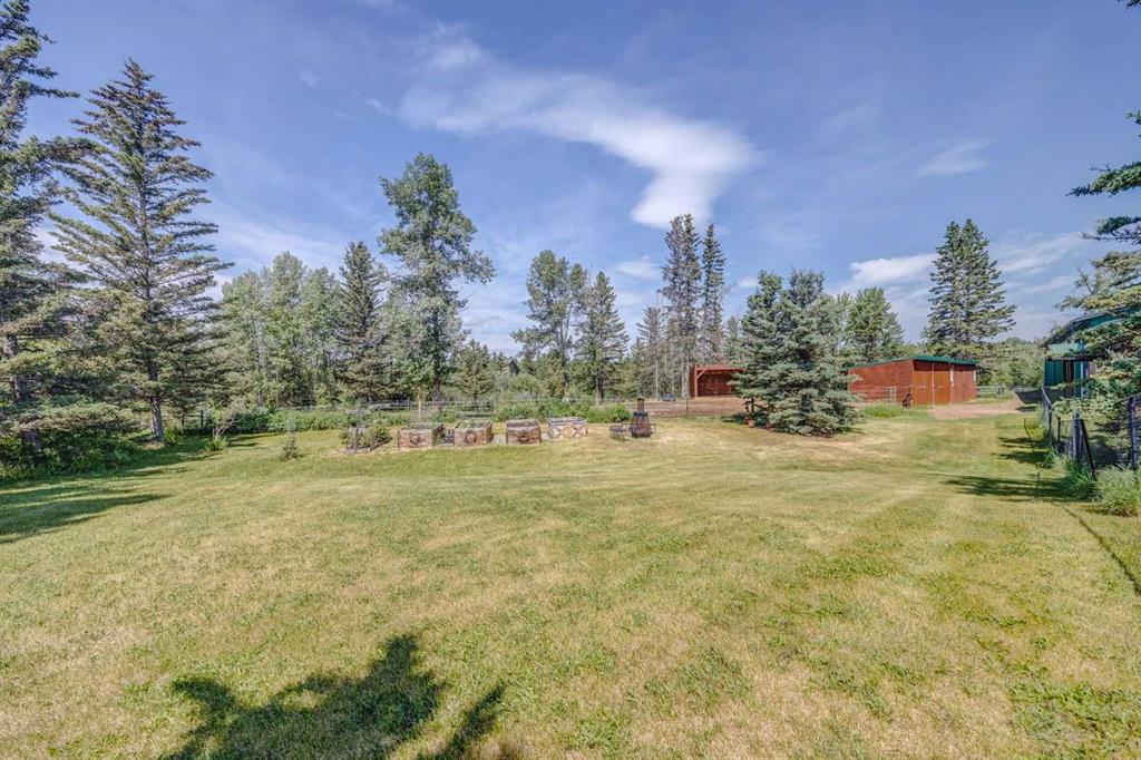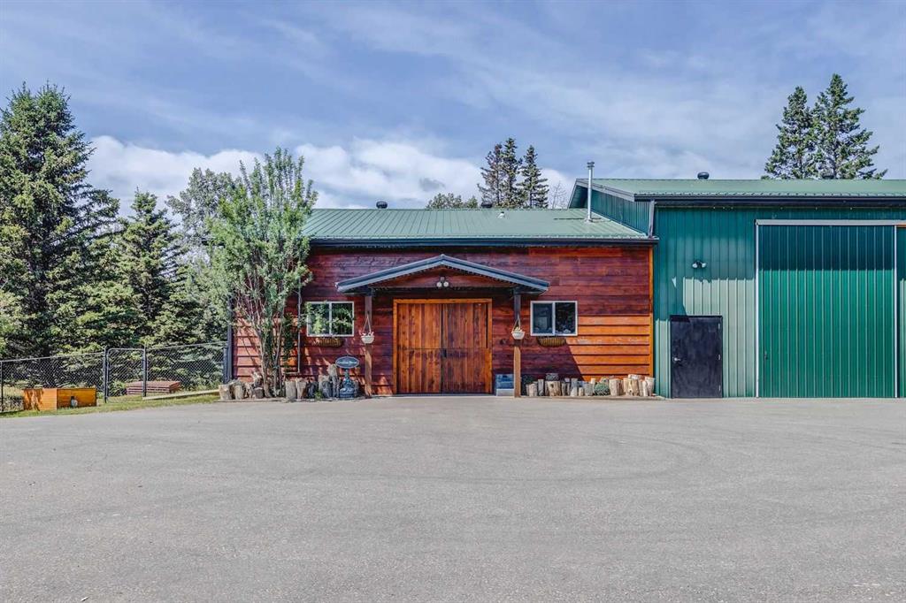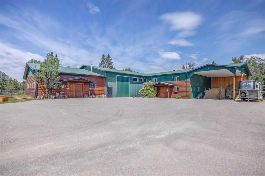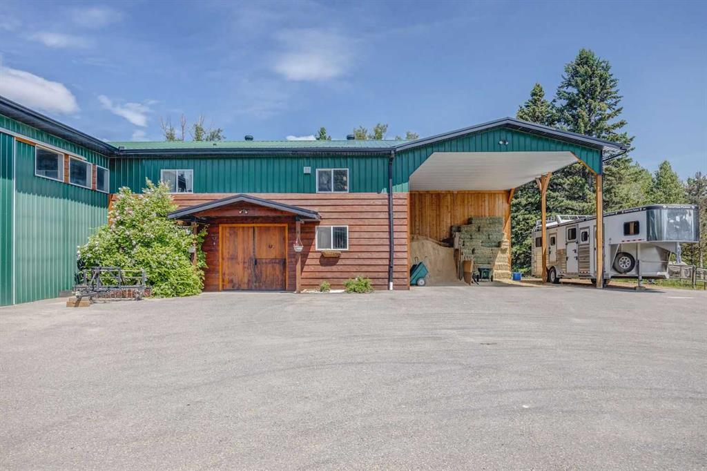 For those seeking a haven for themselves: Step into a stunning four-bedroom walkout bungalow, spanning over 3,200 square feet of meticulously designed total living space. This inviting home presents four bedrooms and three bathrooms, thoughtfully arranged to ensure comfort and convenience. A luminous and spacious kitchen awaits, complete with ample counter and cabinet space, accompanied by a charming breakfast nook that leads out onto the patio. The formal dining room and living room boast vaulted ceilings and a cozy fireplace, providing an elegant ambiance. On the main floor, you'll find the primary bedroom with a generous ensuite, a second bedroom, a bathroom, and a laundry room. The basement is a haven for relaxation and entertainment, featuring a family room, games room, two bedrooms, a study, and a full bathroom. Multiple patios and decks invite you to revel in the beauty of the outdoor space. Additionally, the property offers a double attached garage and a heated double detached garage, both thoughtfully designed to meet your needs. A gated entrance guides you to this private 12.8-acre parcel, fully licensed for accommodating eight horses.