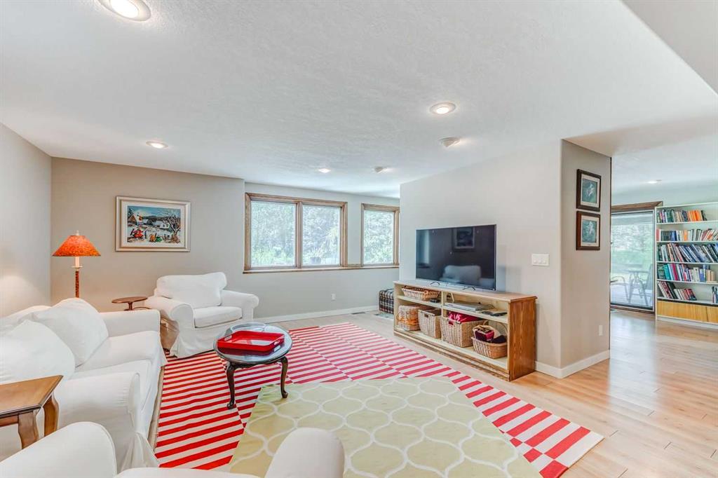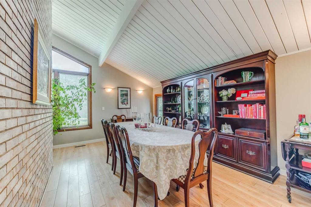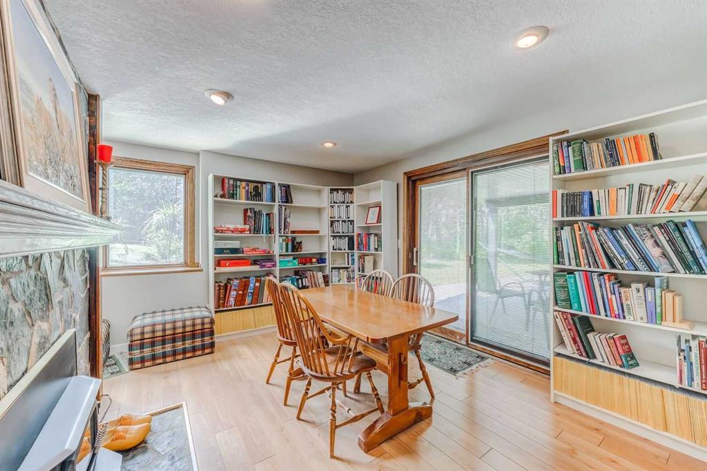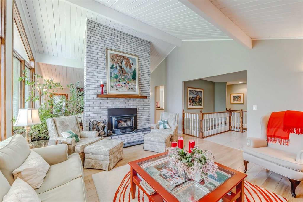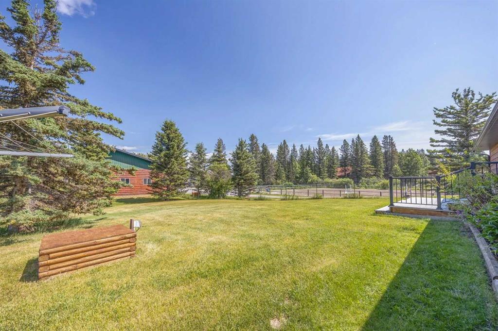 For those seeking a haven for themselves: Step into a stunning four-bedroom walkout bungalow, spanning over 3,200 square feet of meticulously designed total living space. This inviting home presents four bedrooms and three bathrooms, thoughtfully arranged to ensure comfort and convenience. A luminous and spacious kitchen awaits, complete with ample counter and cabinet space, accompanied by a charming breakfast nook that leads out onto the patio. The formal dining room and living room boast vaulted ceilings and a cozy fireplace, providing an elegant ambiance. On the main floor, you'll find the primary bedroom with a generous ensuite, a second bedroom, a bathroom, and a laundry room. The basement is a haven for relaxation and entertainment, featuring a family room, games room, two bedrooms, a study, and a full bathroom. Multiple patios and decks invite you to revel in the beauty of the outdoor space. Additionally, the property offers a double attached garage and a heated double detached garage, both thoughtfully designed to meet your needs. A gated entrance guides you to this private 12.8-acre parcel, fully licensed for accommodating eight horses.