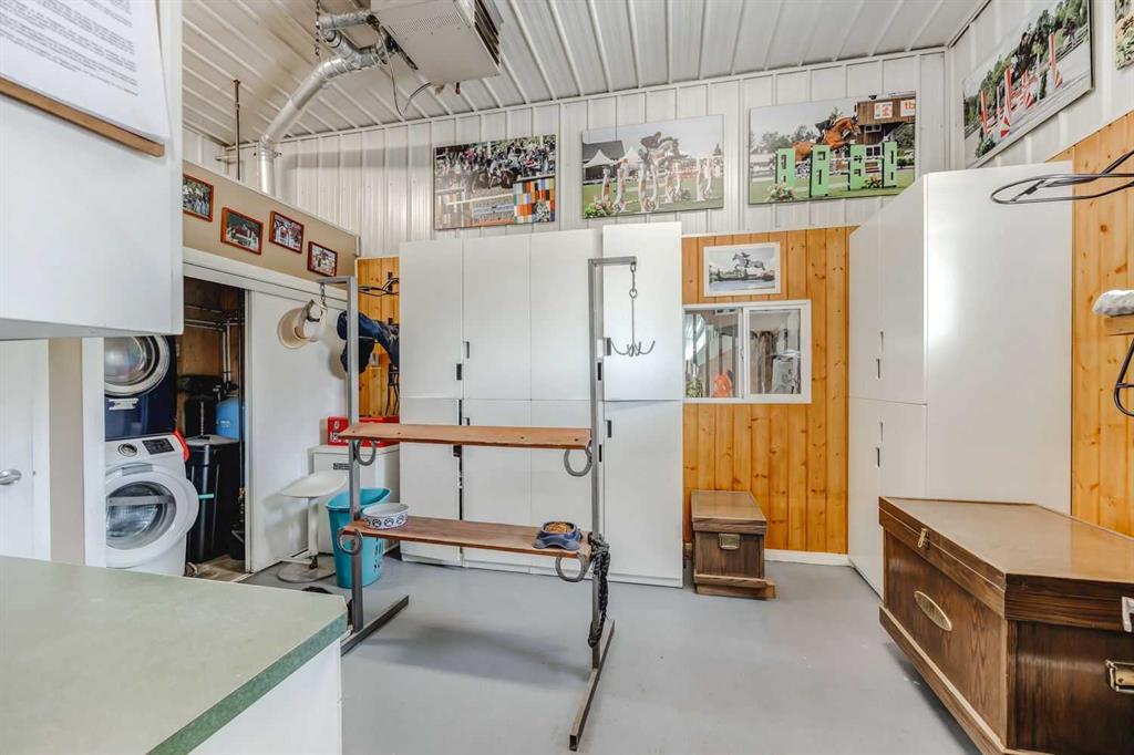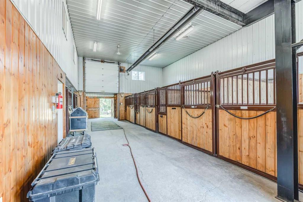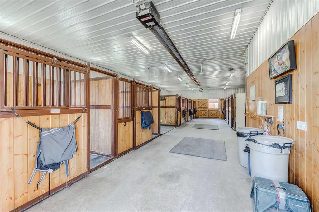 For your equine companions: Prepare to be captivated by the exceptional equestrian amenities that this property boasts. A splendid 70 x 140 square-foot heated indoor arena awaits, accompanied by two attached barns that provide a total of 15 stalls (9 in the first barn and 6 in the second). An additional detached barn offers four stalls, allowing ample space for your horses. Each stall is equipped with automatic waterers and one-piece rubber mats, ensuring utmost comfort. The two main barns also feature a wash bay, tack and storage room with 12 lockers, an enclosed treadmill area, covered hay and shaving storage, as well as jump storage at the back. Additionally, a 210 x 150 square-foot outdoor riding arena awaits, complemented with GGT footing. The property encompasses 14 individual turnout paddocks many of which feature trees or shelters, along with 4 grass fields and scenic riding trails. Double high-tensile electrified fences ensure the utmost safety and security. Whether you're a private breeder or aspiring equestrian entrepreneur, this property is perfectly suited to your ambitions.