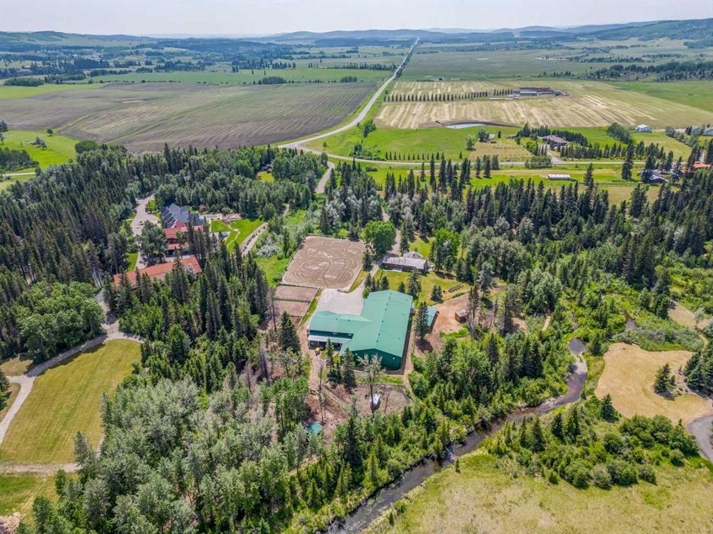 Experience the epitome of luxury living at this exceptional private equestrian estate, nestled just one mile west of Priddis and a mere 15 minutes away from the city. Discover a rare gem, surrounded by an enchanting landscape boasting an abundance of trees, wildlife, Priddis creek, and even an island. This idyllic equestrian property caters perfectly to both humans and horses, offering an unparalleled experience.