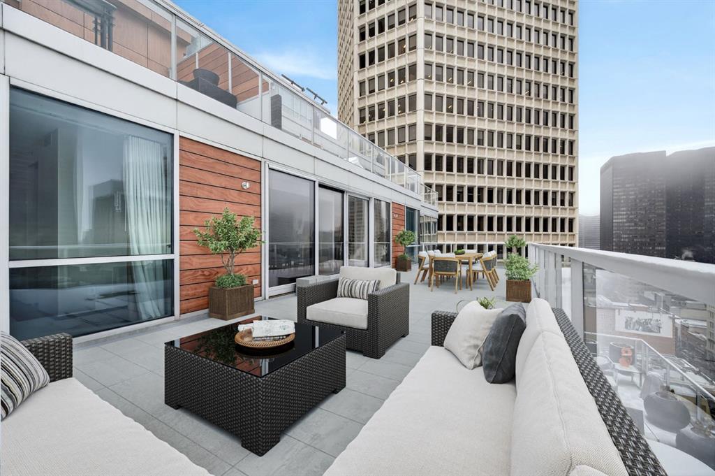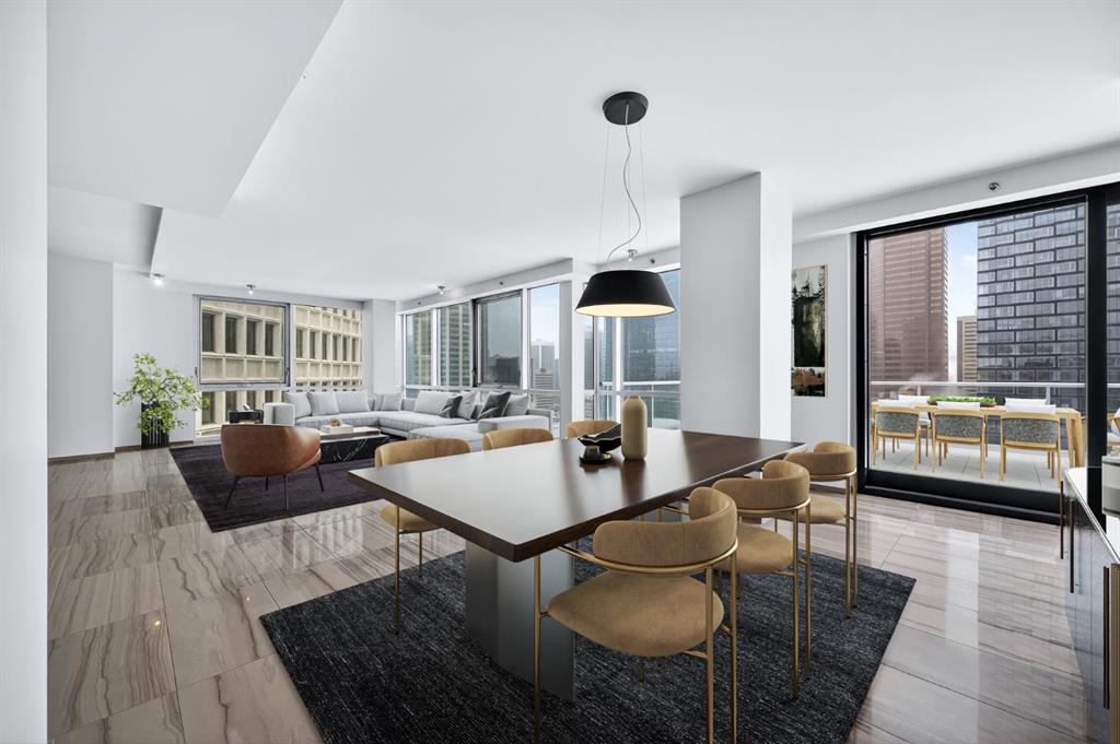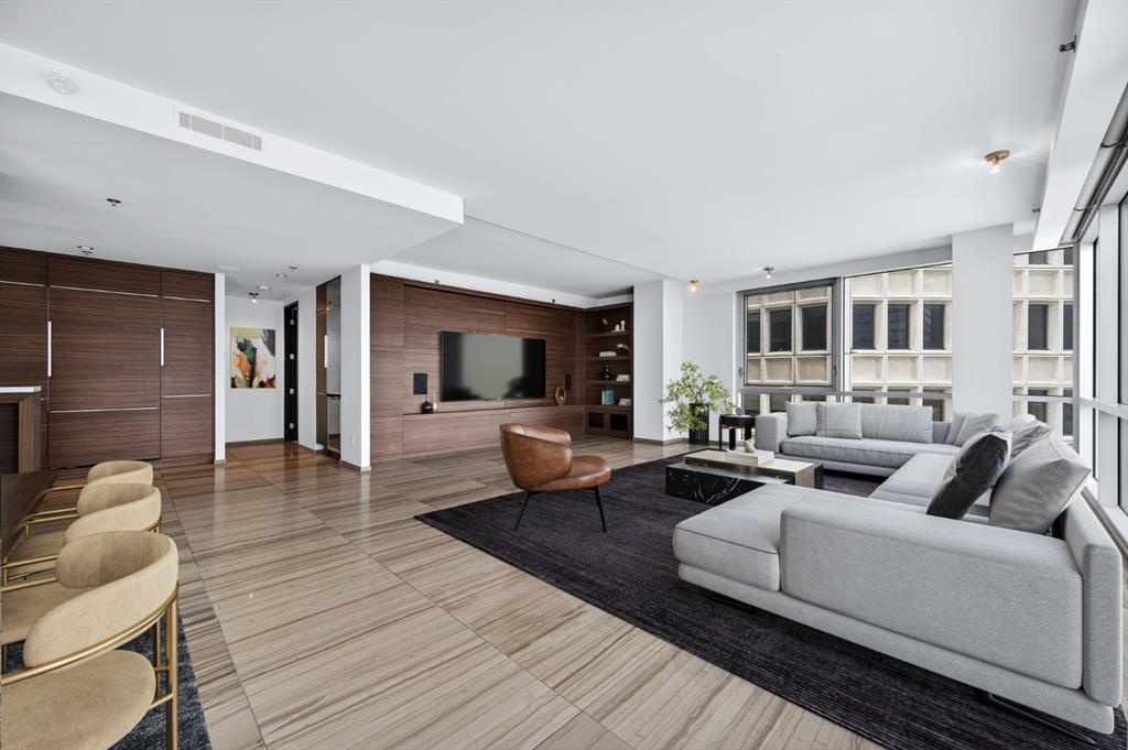 One of the most exclusive condominium residences in downtown Calgary, this exceptional sub-penthouse at Le Germain Residences offers 2,393 sq.ft. of refined living space with breathtaking panoramic views of the city skyline. Designed by internationally renowned architectural firm Lemay Michaud, the residences offer a boutique, club-like atmosphere with full access to the services and amenities of the acclaimed Le Germain Hotel. This beautifully designed suite features 9-ft ceilings, floor-to-ceiling windows, and open-concept living with north, south, and west exposures. High-end finishes include custom wood cabinetry by André Julien, quartz countertops, stone tile, Kohler fixtures, electronic blinds, and in-floor radiant heating, along with new paint and kitchen backsplash. The chef’s kitchen is equipped with Miele appliances and a wine fridge. A spectacular 650 sq.ft. terrace offers stunning city views, while the primary suite features a private balcony a walk-in dressing room, and spa-inspired ensuite. A second bedroom with private ensuite and balcondy complete the home. Residents enjoy white-glove concierge service and full access to Le Germain Hotel amenities, including spa, fitness centre, valet parking, restaurants, and room service. The unit includes two premium underground parking stalls and secure storage. Ideally located between Stephen Avenue and the Calgary Tower, this is downtown living at its finest.