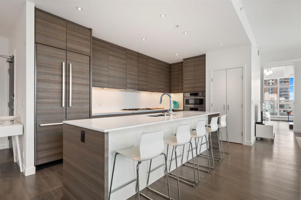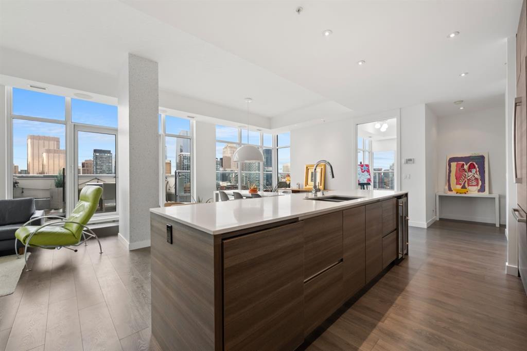 The Penthouse @ Smith: Your statement piece in the Beltline steps from dozens of shops + restaurants. Wake up to the skyline. Wind down to the mountains. Nearly 1,600 of interior square footage along with an addition 800 outside on the beautiful terrace. Floor-to-ceiling glass,10-foot ceilings and light pouring in from every angle. The living and dining areas don’t just sit there - they pull you in, frame the view and make every night feel like an occasion. The kitchen is where function meets presence - sleek, expansive and seamlessly integrated. Wrapped in quartz, complete with a gas range, extensive storage and island seating for five, it’s built for both everyday ease and unforgettable gatherings. This is the kind of space where guests settle in, conversations flow naturally and no one feels in a rush to leave. With three bedrooms, three exposures and two primary retreats, the layout offers a rare level of flexibility without compromise. Whether it’s hosting, creating a dedicated workspace, or simply having the freedom to spread out, this home adapts to your lifestyle rather than asking you to adjust to it. Take pride in knowing that $125,000 has been invested into the property over the last few years. Let's step out to the wraparound terrace. 180 degrees of “how is this even real?” Morning coffee. Sunset wine. Long weekend BBQs. Fire table conversations that make you forget about your iphone. When the day winds down, your primary suite becomes the escape: Spa-inspired ensuite. Custom dressing room. Automated blackout blinds. Close the world off: Reset + repeat. Experience the exclusivity of a private garage to tuck away your vehicles along with a huge storage room for seasonal items. Step outside and the best of the city is already at your doorstep. No commute. No compromises. Just immediate access to everything that makes inner-city living so desirable - while having a home that feels like a true escape above it all. At a certain point, it’s no longer about having more space - it’s about having the right space. Better views. Better design. A better way to live. The Penthouse at Smith represents that shift - the move you’ve been building toward. And when you experience it, one thing becomes clear: this is what “worth it” looks like.