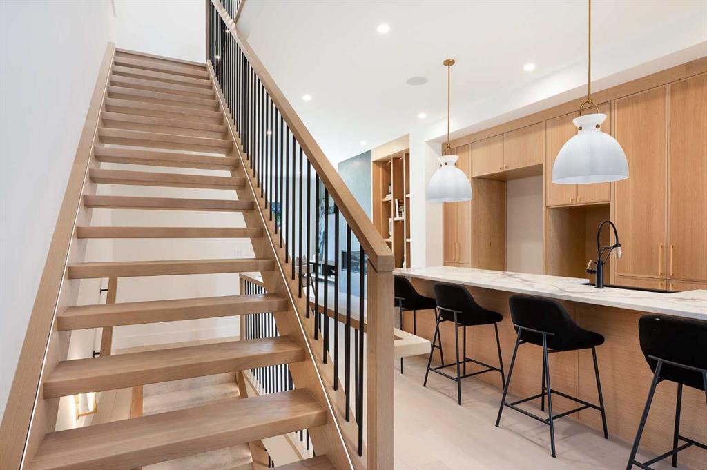 OPEN HOUSE, Sunday January 4th from 12-3pm. Located on sought-after Broadview Road in the inner-city community of Hillhurst, this brand new 3+1 bedroom home with CITY & RIVER VIEWS, built by D & M Custom Homes, offers nearly 3400 sq ft of meticulously developed living space exhibiting top quality & exquisite attention to detail throughout. The open & airy main level presents wide-plank hardwood flooring, lofty ceilings & stylish light fixtures, showcasing the front dining area & kitchen that’s beautifully finished with quartz counter tops, large island/eating bar, plenty of storage space & stainless steel appliance package. The living room is adjacent to kitchen & is anchored by an eye-catching feature fireplace & built-ins. A mudroom & 2 piece powder room complete the main level. The second level hosts 2 spacious bedrooms plus a laundry room with sink & storage is conveniently situated in the hallway. On the third level, the primary retreat is a true private oasis boasting a large bedroom with access to the north balcony with city vistas, two custom walk-in closets & opulent 5 piece ensuite featuring heated floors, gorgeous vanity with dual sinks, relaxing freestanding soaker tub & oversized glass shower. A second south facing balcony with city & Bow River views is accessed just down the hall. Basement development includes roughed-in in-floor heat, a spacious family/media room with wetbar, fourth bedroom & 3 piece bath. Other notable features include roughed-in air conditioning & built-in speakers throughout. Outside, enjoy the sunny south back yard with patio & access to the double detached garage. This stunning home is located just blocks to scenic Bow River pathways & close to trendy Kensington, Riley Park, SAIT, U of C, schools, shopping & is walking distance to the downtown core.