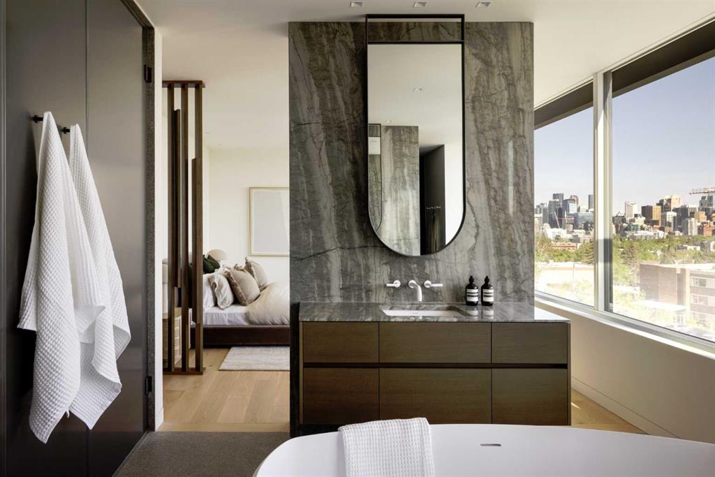 Nestled in the prestigious Briar Hill neighborhood, this warm contemporary masterpiece, built by Wurzer Page Homes, spans 6,000 sq ft of exquisite living space, embodying California-inspired design and exceptional craftsmanship. Designed by R-EID Studio as a true architectural gem, this south-facing home boasts unequaled city views from every level, with all three exterior patio spaces basking in southern light, framed by an oversized Loewen window package. Constructed with steel, wood, and concrete, the residence exudes sophistication with high-end quartzite and stone finishes, matte white California Faucets, and a stainless steel island. The entire home operates on a Lutron control system, featuring designer light fixtures throughout, including a stunning Bocci light fixture above the basement bar. Designed for seamless entertaining, the walkout basement offers a 12-foot ceiling and a 36’ wide folding door, blending indoor and outdoor living. Perfect for hosting or relaxation, the home includes a 400 sq ft dedicated gym, a serene office with floor-to-ceiling windows, and heated floors in the basement and garage, with rough-in for driveway heat. Located in a tranquil setting next to green space, surrounded by luxury homes, it’s close to downtown and hospitals. With too many features to capture in print, this home must be experienced in person—a private tour is recommended. Potential buyers are advised to drive by at night to witness the captivating illumination.