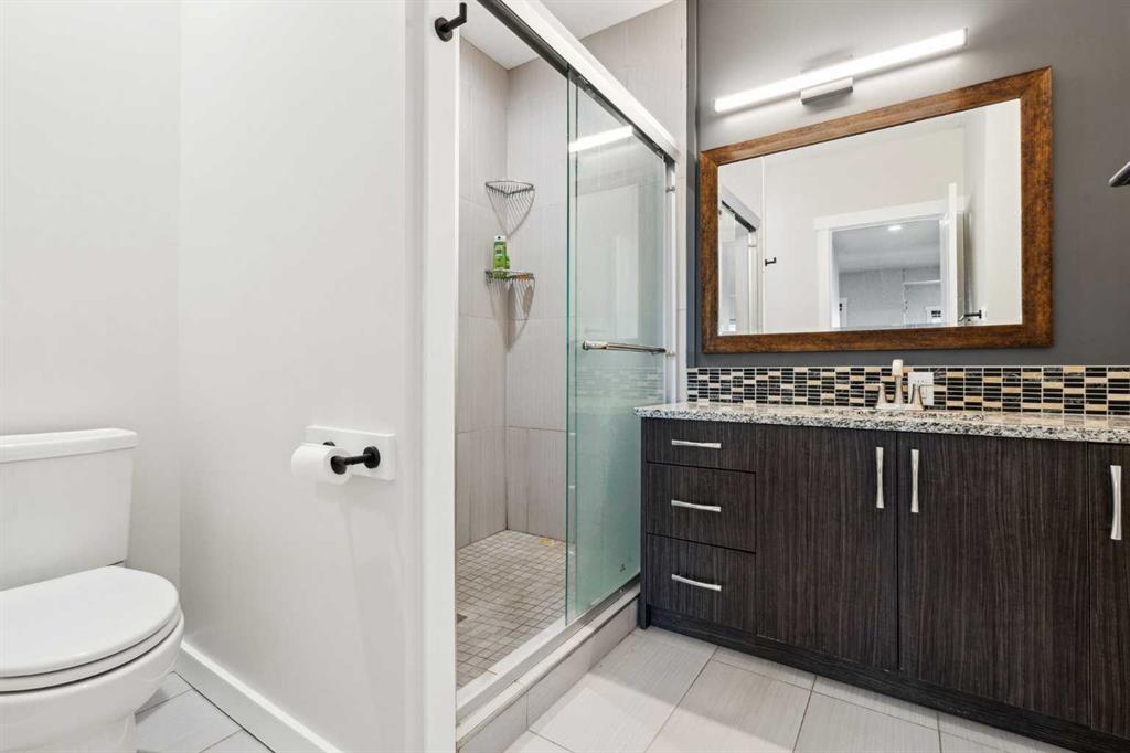 The fully finished walkout basement features an illegal suite, offering excellent flexibility and functionality. With large windows throughout, the space is bright and welcoming with an abundance of natural light. It includes a private bedroom, a custom-designed bathroom, a kitchen, a combined living and dining area, and its own laundry room—making it ideal for extended family or potential rental income.