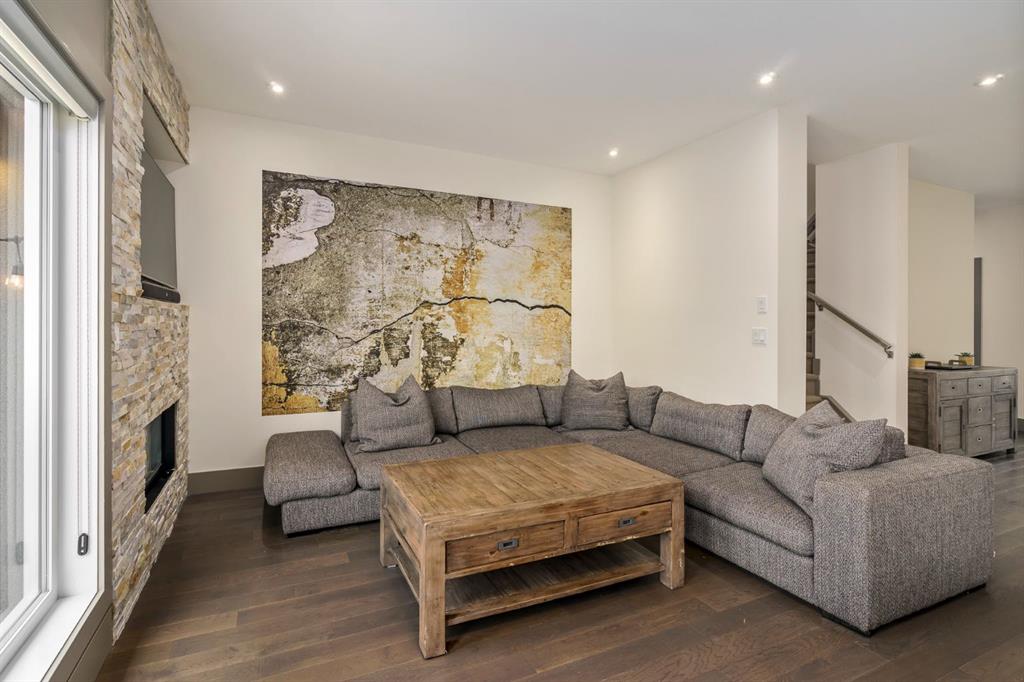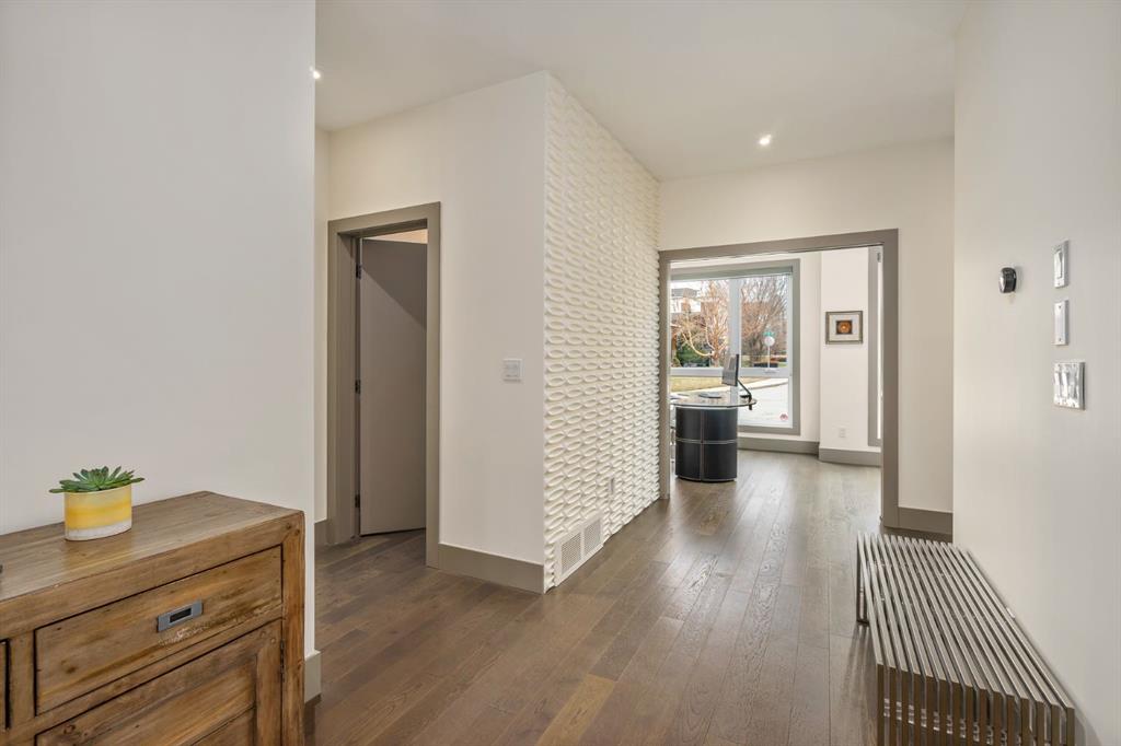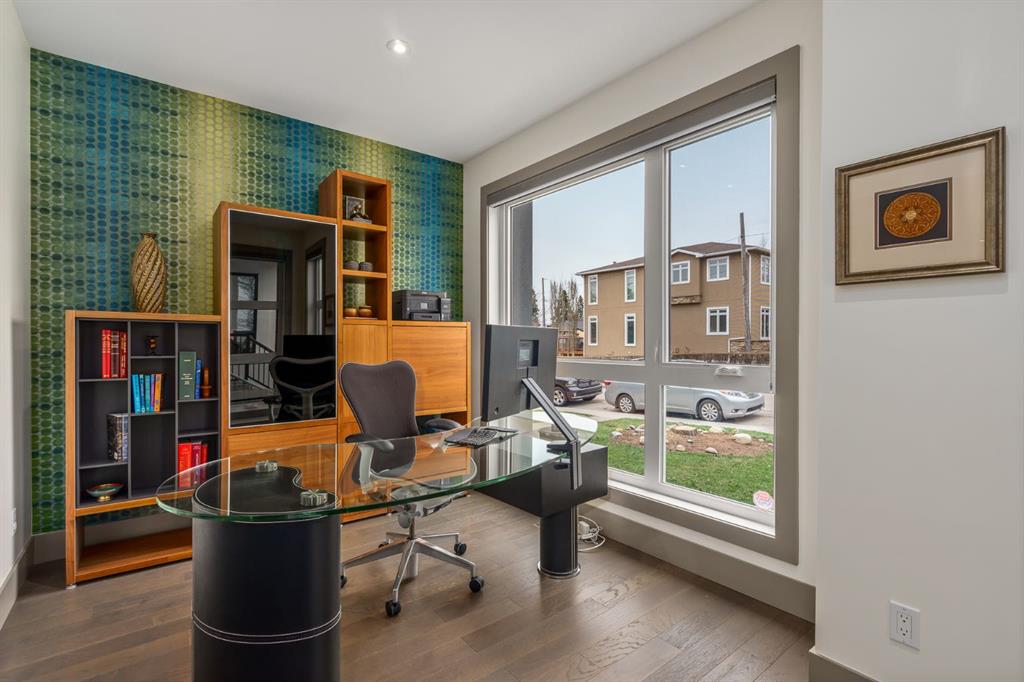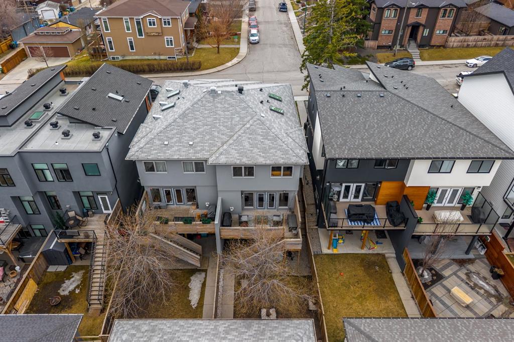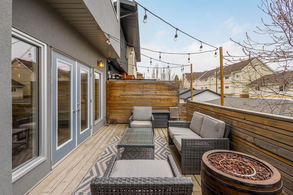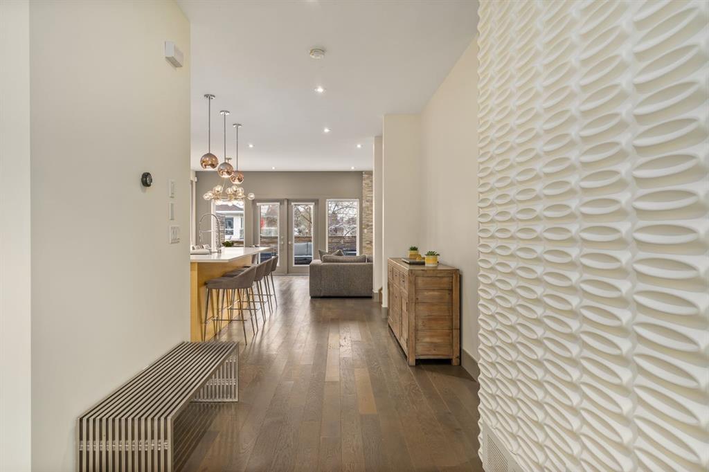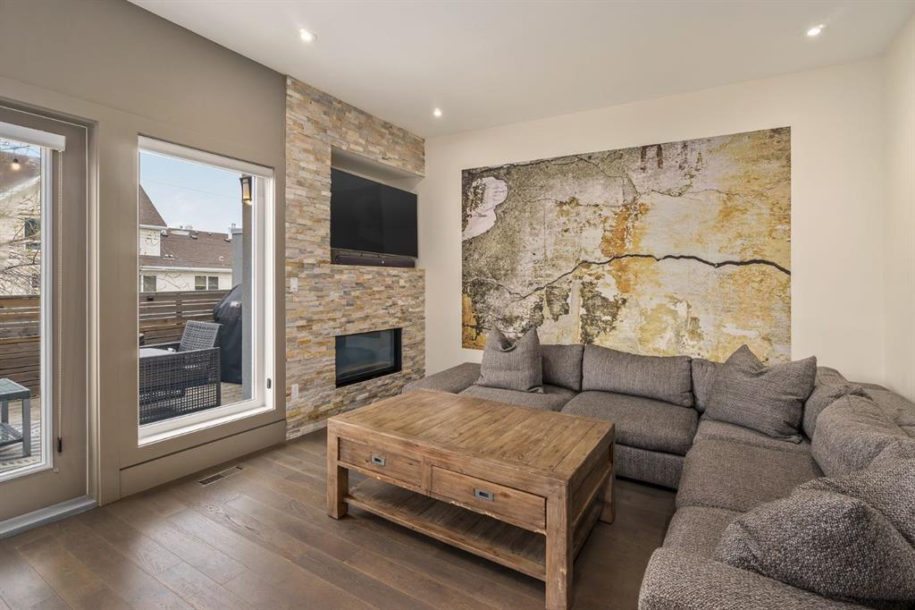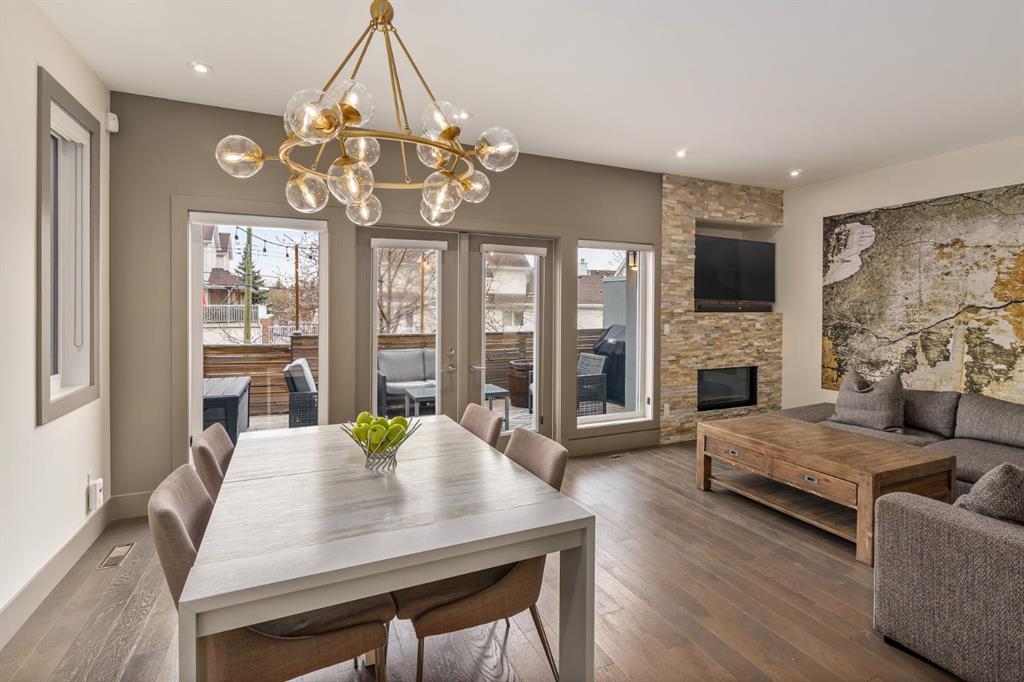 Open Houses Saturday April 25th & Sunday April 26th 11AM-2PM! Experience timeless beauty and modern luxury with this meticulous 2012 build. Adorned by elegant finishings with over 1,960 SF of above grade iving space and ideally situated in the heart of the vibrant Marda Loop district. A black cedar horizontal wood slat facade and landscaped front yard offer charming curb appeal on a quiet, pedestrian-friendly street. Step inside the bright foyer with a large entryway closet and into the adjacent south-facing private office/dinning room, illuminated by floor to ceiling windows. Follow dark wide plank hardwood and a stunning textured feature wall into the immaculate chef's kitchen, featuring a quartz countertop island with undermount double bowl sink, sleek white lacquered and maple cabinetry and clear glass tiled backsplash. The impressive Jennair appliances include a built-in oven, chimney style hood fan, 4-burner gas cooktop, and panel-ready refrigerator. This connects into the spacious dining room with a designer light fixture overhead and large windows overlooking the rear patio. An adjoining living area features a stone fronted gas fireplace and convenient outdoor access via french doors. The back deck includes a gas line for summer BBQs, ample seating space, stairs to the backyard and thoughtful privacy screening for serene enjoyment. Back inside, ascend the staircase with upgraded stainless steel railings to the upper level. On one end, a full bathroom with a skylight separates two secondary bedrooms, each of which are flooded with natural light from multiple windows and come with accompanying closet built-ins. The other side boasts a luxurious south-facing primary retreat, decorated with a wallpaper feature wall, sconce lighting and floating shelf, along with a massive custom walk-in closet offering premium storage. The lavish ensuite encompasses heated floors, dual vessel sinks, skylight, tranquil soaker tub with travertine tiled product niche, and a glass enclosed shower with shelving. This level is completed by laundry and an extra deep linen closet. The fully developed walk-out basement is roughed in for in-floor heat, and includes a fourth bedroom with more closet built-ins, extensive storage, full bath with tile detailing, and versatile, well-lit recreation room. A large mudroom space leads directly out into the private backyard and detached double garage, which is drywalled, insulated, heated and with the possibility to add EV charging, along with a convenient paved back lane. Additional notable features include central A/C, HE furnace, rough-in for Central Vacuum, energy efficient stucco EIFS system, and large pressure treated basement window wells. Enjoy living in one of the most sought after inner city neighbourhoods; a pedestrian-oriented haven surrounded by parks, greenspaces, top rated schools, the shops along 33rd Avenue, and quick access to Crowchild Trail and 14th Street.