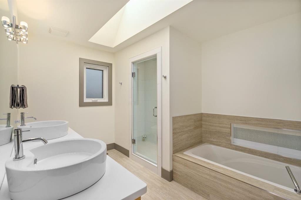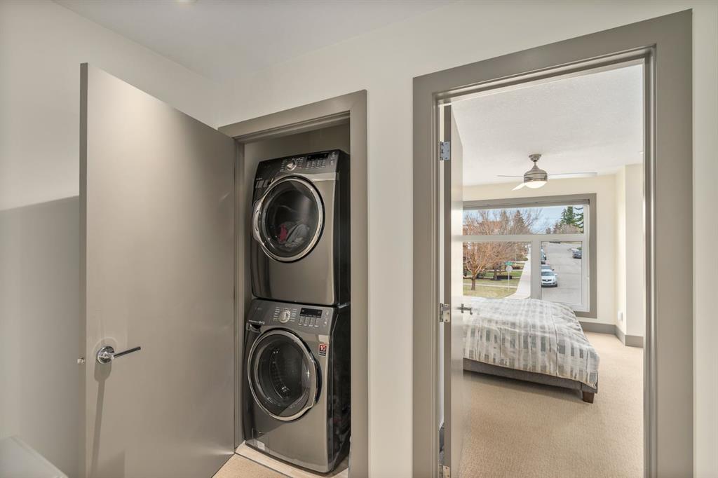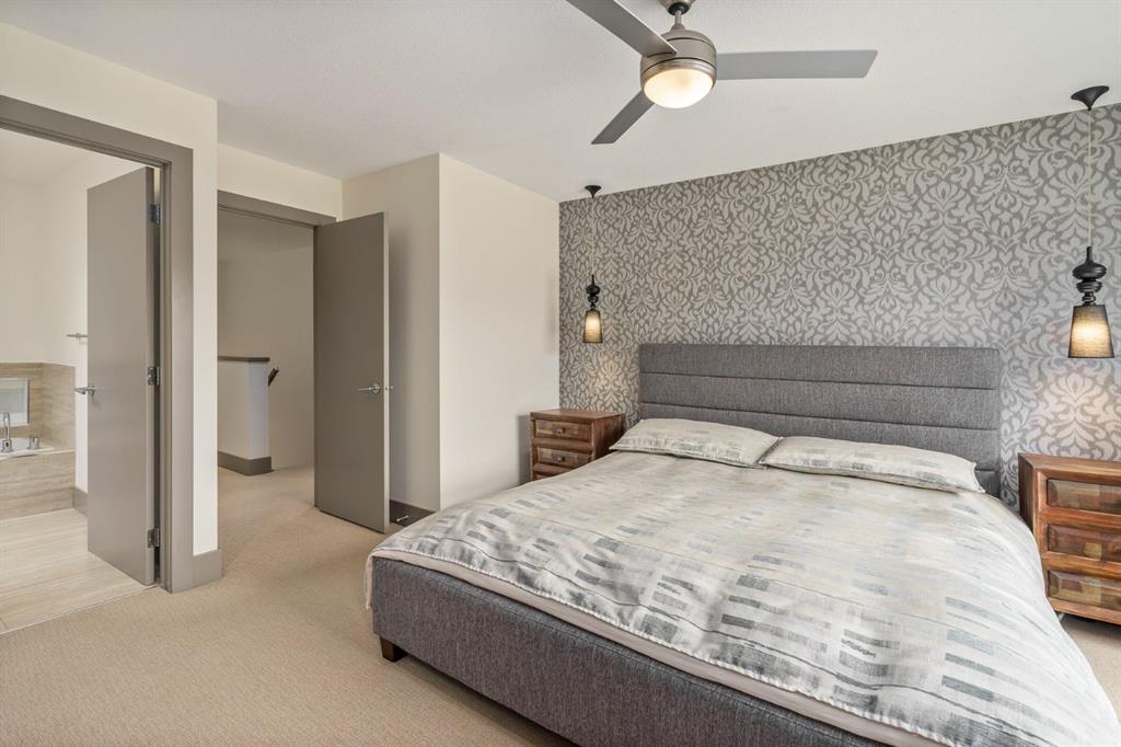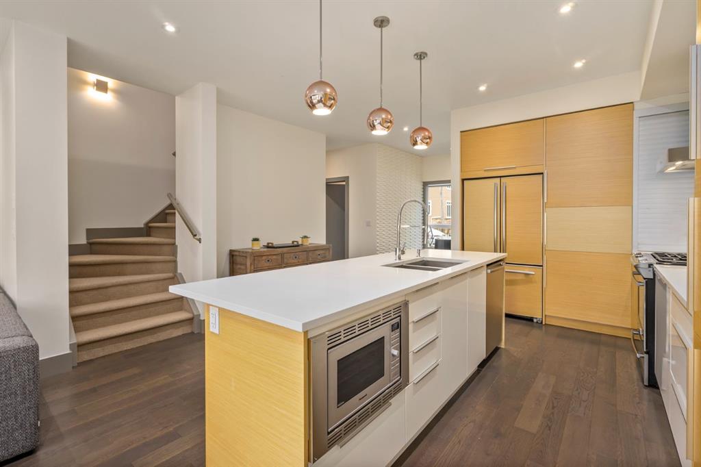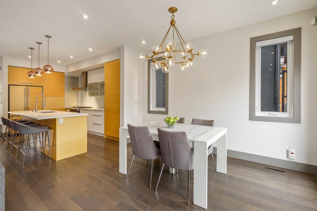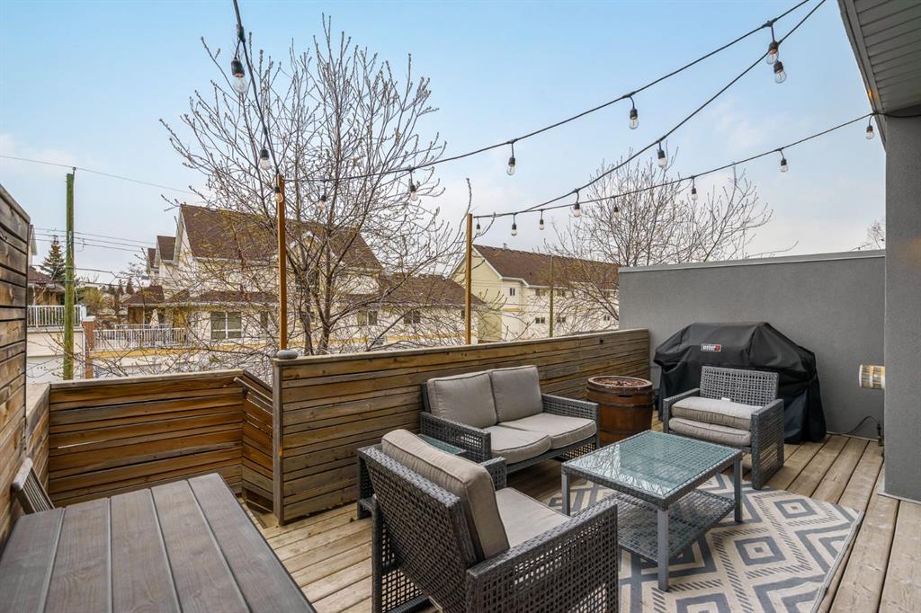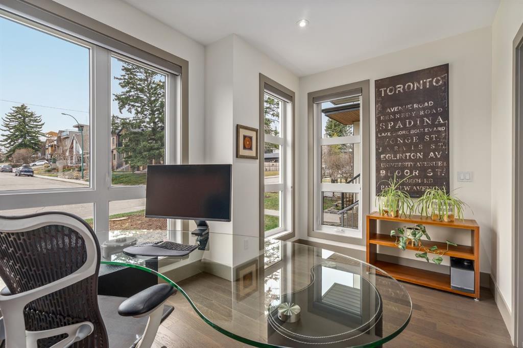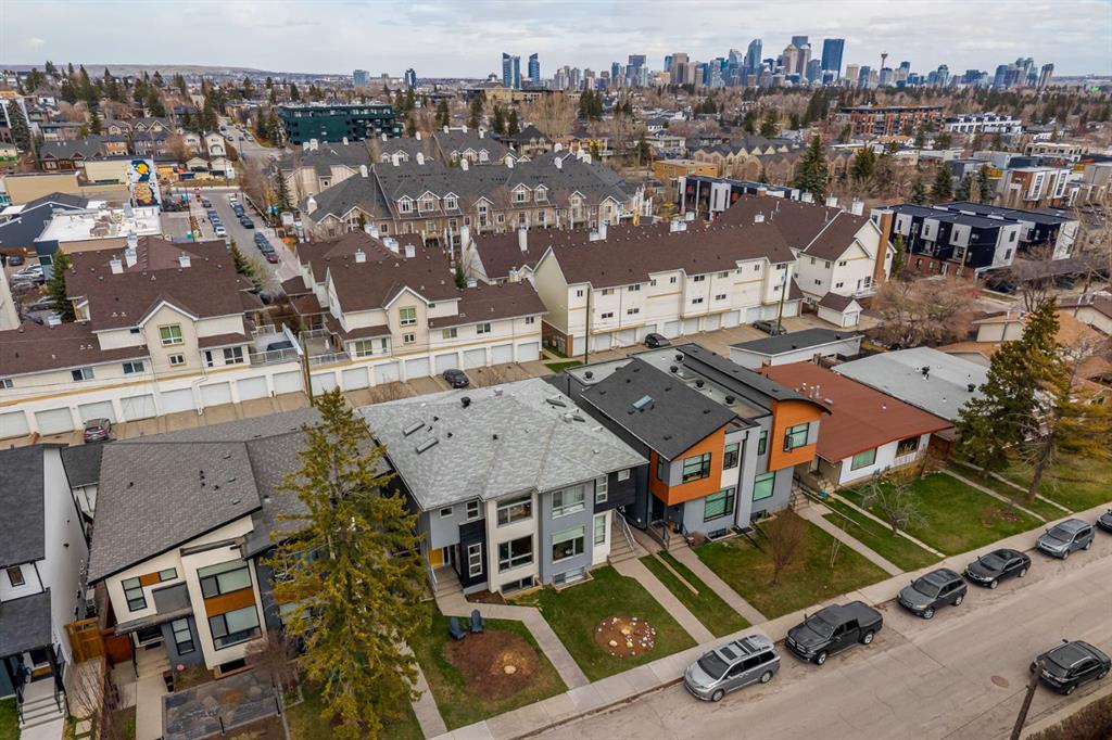 Open Houses Saturday April 25th & Sunday April 26th 11AM-2PM! Experience timeless beauty and modern luxury with this meticulous 2012 build. Adorned by elegant finishings with over 1,960 SF of above grade iving space and ideally situated in the heart of the vibrant Marda Loop district. A black cedar horizontal wood slat facade and landscaped front yard offer charming curb appeal on a quiet, pedestrian-friendly street. Step inside the bright foyer with a large entryway closet and into the adjacent south-facing private office/dinning room, illuminated by floor to ceiling windows. Follow dark wide plank hardwood and a stunning textured feature wall into the immaculate chef's kitchen, featuring a quartz countertop island with undermount double bowl sink, sleek white lacquered and maple cabinetry and clear glass tiled backsplash. The impressive Jennair appliances include a built-in oven, chimney style hood fan, 4-burner gas cooktop, and panel-ready refrigerator. This connects into the spacious dining room with a designer light fixture overhead and large windows overlooking the rear patio. An adjoining living area features a stone fronted gas fireplace and convenient outdoor access via french doors. The back deck includes a gas line for summer BBQs, ample seating space, stairs to the backyard and thoughtful privacy screening for serene enjoyment. Back inside, ascend the staircase with upgraded stainless steel railings to the upper level. On one end, a full bathroom with a skylight separates two secondary bedrooms, each of which are flooded with natural light from multiple windows and come with accompanying closet built-ins. The other side boasts a luxurious south-facing primary retreat, decorated with a wallpaper feature wall, sconce lighting and floating shelf, along with a massive custom walk-in closet offering premium storage. The lavish ensuite encompasses heated floors, dual vessel sinks, skylight, tranquil soaker tub with travertine tiled product niche, and a glass enclosed shower with shelving. This level is completed by laundry and an extra deep linen closet. The fully developed walk-out basement is roughed in for in-floor heat, and includes a fourth bedroom with more closet built-ins, extensive storage, full bath with tile detailing, and versatile, well-lit recreation room. A large mudroom space leads directly out into the private backyard and detached double garage, which is drywalled, insulated, heated and with the possibility to add EV charging, along with a convenient paved back lane. Additional notable features include central A/C, HE furnace, rough-in for Central Vacuum, energy efficient stucco EIFS system, and large pressure treated basement window wells. Enjoy living in one of the most sought after inner city neighbourhoods; a pedestrian-oriented haven surrounded by parks, greenspaces, top rated schools, the shops along 33rd Avenue, and quick access to Crowchild Trail and 14th Street.