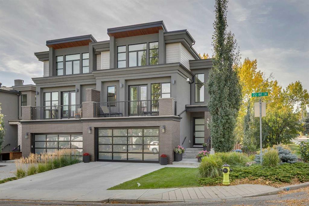 Welcome to an inner-city English garden living - with 2,847 sq ft of luxury situated in the vibrant community of Bankview. Offering 5 bedrooms throughout, this semi-detached walk-out home is perfect as an executive and/or family home. Built by luxury builder Grandscape Homes with superior finishes and completed by interior designer Denise Panagakos, this stunning home blends contemporary design with comfortable living finishes. The S & W facing main level has 10 ft ceilings, a two-storey front foyer and floor to ceiling windows, flooding the home with natural light. The gourmet kitchen has a large island with breakfast bar, pantry plus amazing storage. Top end appliances include a 5 burner Wolf Cooktop, dual Wolf wall ovens (one convection) and an integrated Sub-Zero fridge. The open living/dining area with gas fireplace leads to a south facing balcony through large sliding doors. On the 2nd floor, French doors lead to the private primary suite that occupies the entire level. Complete with a gas fireplace, a large walk-in closet, and a north facing balcony with downtown views. The 5-pc ensuite has a soaking tub, double vanity, a large steam-shower, and heated flooring. The 3rd level has 2 large bedrooms, both with walk-in closets. This floor also includes a 5-pc bathroom and a laundry room with sink and storage. On the 4th level is a very large loft bedroom/suite with downtown views and a 4-pc bathroom - perfect as a bedroom, office space or living area. The fully finished walk-out level has heated polished concrete floors, a 5th bedroom or office, and a 3-pc bathroom with an oversized walk-in shower. This level is the perfect entertaining area with a wet bar and wine room off the sitting area and walk-out covered patio. The sunny south facing back yard is professionally landscaped with plenty of shrubs and trees creating a private and quiet oasis. Backing directly onto a city park the home's multiple outdoor living spaces will bring the outside in, either from the main living area balcony, or the large lower patio. Throughout the entire home you will find custom millwork cabinets providing ample storage. This clean air home has high efficiency heating/ventilation and includes central air conditioning. The double attached finished garage also has heated floors. Its minutes to downtown and walking distance to the shops, restaurants and amenities of either 17th Avenue or Marda Loop - also close to Mount Royal, Downtown Core, University of Calgary, Foothills Hospital Campus, SAIT & Kensington. Experience both quiet park and vibrant inner city living & book a showing with your realtor today!