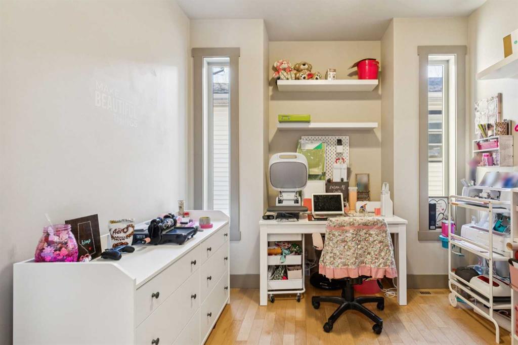 Located on a quiet street in prime Hillhurst, 1827 Westmount Road NW is a meticulously maintained home offering 2,150 sq. ft. above grade (3,038 sq. ft. total) of bright and functional living space. The interior features site-finished hardwood throughout the main and upper floors, providing a seamless transition between the formal front dining room/family room, the private office, and the main living area. The chef’s kitchen is equipped with granite countertops, a gas stove, and a substantial side pantry with extensive storage and additional counter space. This area opens into a bright, south-facing breakfast nook, adjacent to a living room anchored by a gas fireplace and large windows with an external awning for light control.