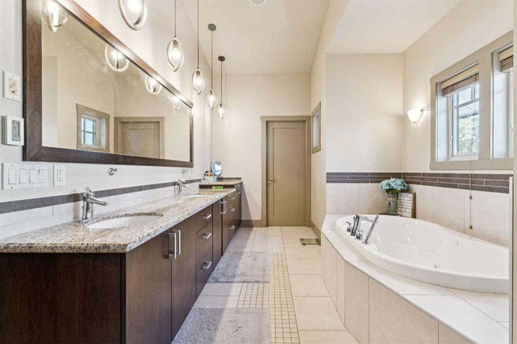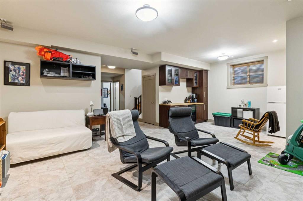 The upper level includes three spacious bedrooms and a dedicated laundry room. The primary suite serves as a quiet retreat, featuring a walk-in closet and a five-piece ensuite with a steam shower. The fully developed basement is finished with durable tile and features integrated underfloor heating for efficient year-round comfort. This lower level adds a large recreation area with a side bar and beverage fridge, plus two additional bedrooms (one currently configured as a gym) and a full bathroom. Recent mechanical and exterior updates include hot water on demand, a new boiler and sump pump (2024), Gemstone lighting (2023), furnace (2020), and new shingles (2018). The low-maintenance south backyard features TREX decking and artificial turf, leading to the double detached garage. Ideally situated 100 meters from grocery stores and minutes from Kensington shopping and downtown Calgary. Book a showing, you're going to love this house!