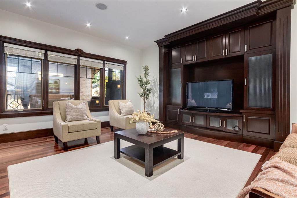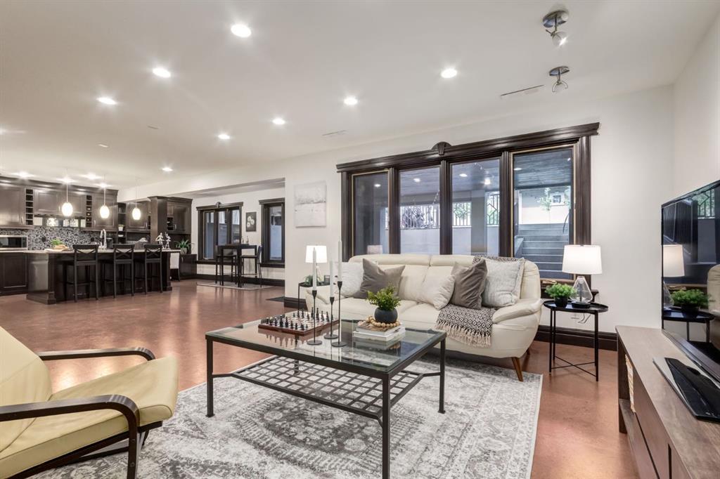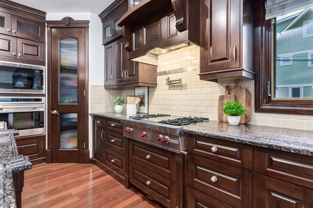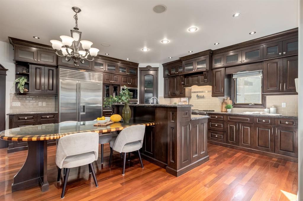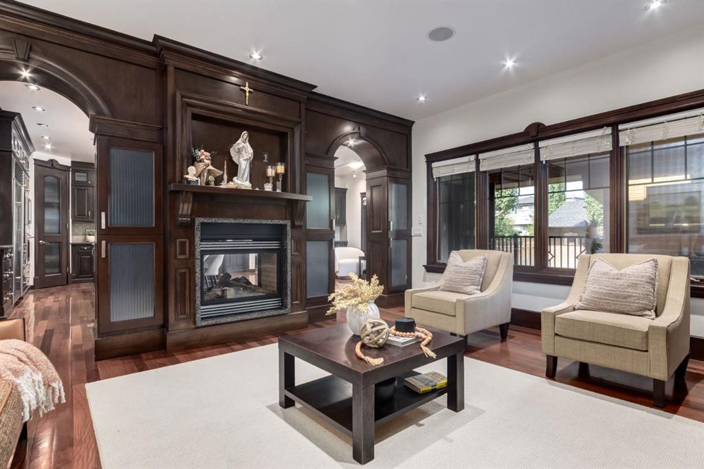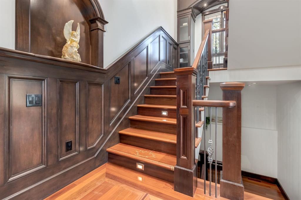 This extraordinary custom estate offers over 5,200 sq. ft. of total living space, situated on a massive 179' deep lot, plus more than 1,100 sq. ft. of covered outdoor areas, all with sweeping views of the Bow River and downtown skyline. From the foyer, the craftsmanship is immediately evident with over 8,000 board feet of maple millwork, solid maple doors, Brazilian walnut floors, and exotic hardwoods such as tiger wood, bird’s-eye maple, ebony, kaiju, walnut, and cherry, all installed by master artisans. The main floor offers a front-facing primary bedroom with a private ensuite with jetted shower and tub, and in-floor heat. A formal dining space or office, and a showpiece kitchen appointed with a Wolf gas range, Sub-Zero fridge, Bosch dishwasher, walk-in pantry, curved cabinetry, beveled granite counters, and a custom removable island table. The adjoining living room is anchored by a fireplace and opens seamlessly to expansive covered decks with cedar ceilings and stamped concrete, creating year-round indoor-outdoor living. Upstairs, four bedrooms include two full primary suites with fireplaces and spa-inspired ensuites, while the main retreat enjoys a sitting area, walk-in closet, heated floors, jetted tub, and steam shower. Another primary bedroom with an ensuite, two additional beds with a jack-and-jill bath, one with a built-in fireplace, a wet bar, which leads out to the balcony with skyline views, and a laundry room complete the second level. The fully developed walk-out/walk-up basement offers a recreation room, kitchenette, two more bedrooms, and two bathrooms, all warmed by in-floor heating with direct access to covered patios. Outside, six distinct decks and patios surround the real-stone exterior, complemented by a finished four-car garage with skylights, a 66’ RV pad, stamped-concrete driveway, and rear alley access with space for lots of vehicles. Recent upgrades include a new roof, downspouts, custom putting green landscaping, and central A/C (2025), while a pre-poured foundation provides a ready-to-build addition (with city of Calgary Permit Approval). Surrounded by multi-million-dollar homes and set directly across from downtown Calgary, this rare riverfront property combines artisanal detail, scale, and location in a way that defines luxury living. Nestled just steps away from parks, trendy restaurants, and bars, this residence provides a serene escape in the vibrant Kensington district. Its proximity to the Bow River, downtown, the University of Calgary, SAIT, and Foothills Hospital makes it ideal. With easy access to Memorial Drive and Crowchild Trail, this is your opportunity to call this magnificent property your own. Don't hesitate to call today!