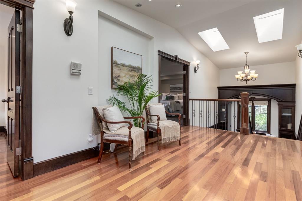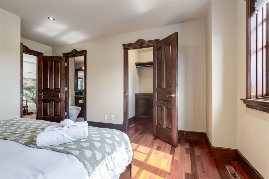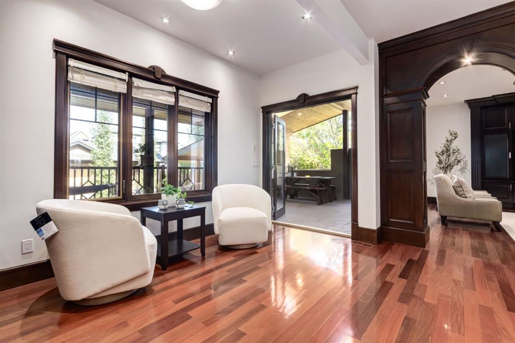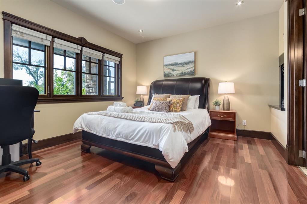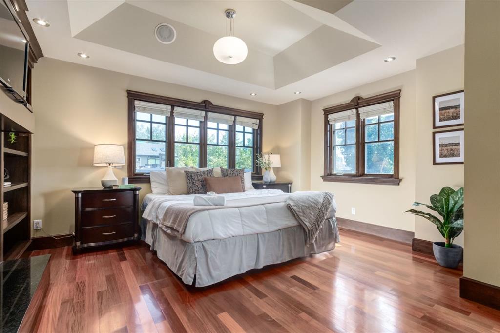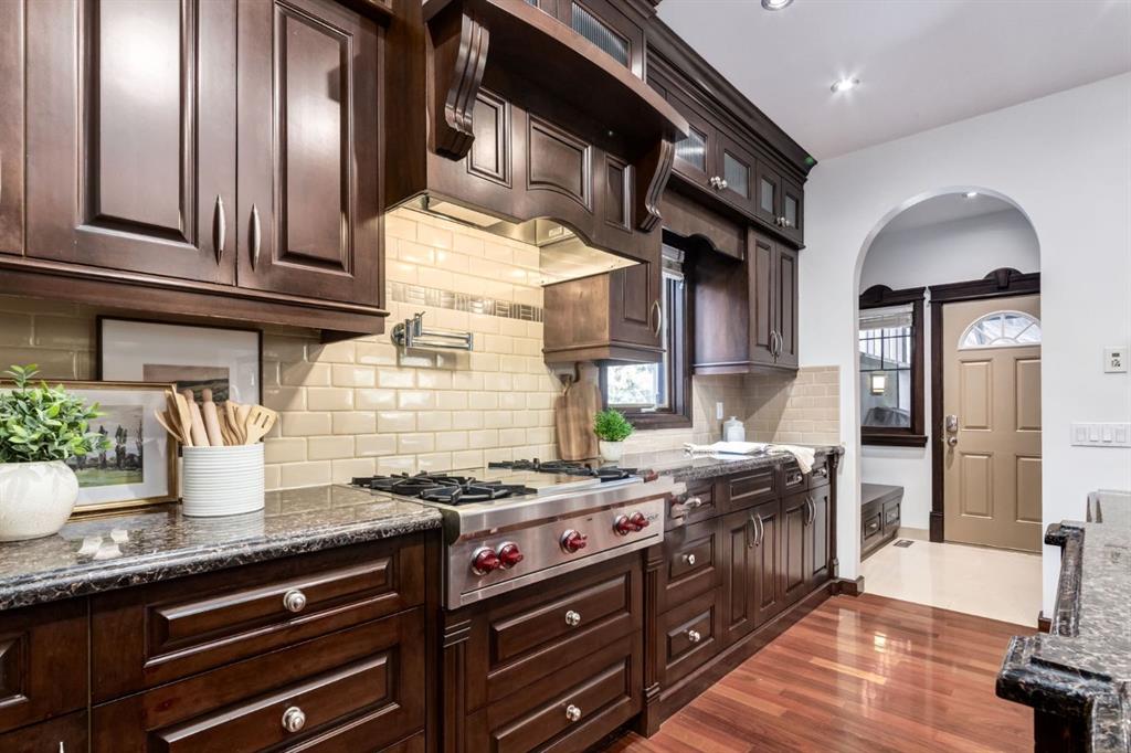 This extraordinary custom estate offers over 5,200 sq. ft. of total living space, situated on a massive 179' deep lot, plus more than 1,100 sq. ft. of covered outdoor areas, all with sweeping views of the Bow River and downtown skyline. From the foyer, the craftsmanship is immediately evident with over 8,000 board feet of maple millwork, solid maple doors, Brazilian walnut floors, and exotic hardwoods such as tiger wood, bird’s-eye maple, ebony, kaiju, walnut, and cherry, all installed by master artisans. The main floor offers a front-facing primary bedroom with a private ensuite with jetted shower and tub, and in-floor heat. A formal dining space or office, and a showpiece kitchen appointed with a Wolf gas range, Sub-Zero fridge, Bosch dishwasher, walk-in pantry, curved cabinetry, beveled granite counters, and a custom removable island table. The adjoining living room is anchored by a fireplace and opens seamlessly to expansive covered decks with cedar ceilings and stamped concrete, creating year-round indoor-outdoor living. Upstairs, four bedrooms include two full primary suites with fireplaces and spa-inspired ensuites, while the main retreat enjoys a sitting area, walk-in closet, heated floors, jetted tub, and steam shower. Another primary bedroom with an ensuite, two additional beds with a jack-and-jill bath, one with a built-in fireplace, a wet bar, which leads out to the balcony with skyline views, and a laundry room complete the second level. The fully developed walk-out/walk-up basement offers a recreation room, kitchenette, two more bedrooms, and two bathrooms, all warmed by in-floor heating with direct access to covered patios. Outside, six distinct decks and patios surround the real-stone exterior, complemented by a finished four-car garage with skylights, a 66’ RV pad, stamped-concrete driveway, and rear alley access with space for lots of vehicles. Recent upgrades include a new roof, downspouts, custom putting green landscaping, and central A/C (2025), while a pre-poured foundation provides a ready-to-build addition (with city of Calgary Permit Approval). Surrounded by multi-million-dollar homes and set directly across from downtown Calgary, this rare riverfront property combines artisanal detail, scale, and location in a way that defines luxury living. Nestled just steps away from parks, trendy restaurants, and bars, this residence provides a serene escape in the vibrant Kensington district. Its proximity to the Bow River, downtown, the University of Calgary, SAIT, and Foothills Hospital makes it ideal. With easy access to Memorial Drive and Crowchild Trail, this is your opportunity to call this magnificent property your own. Don't hesitate to call today!