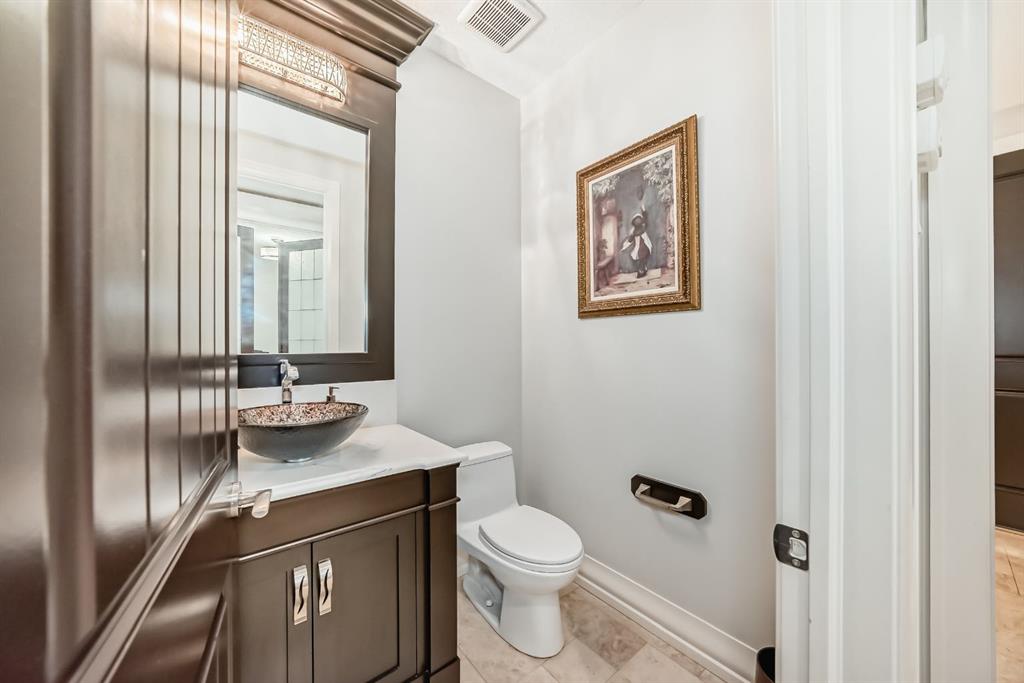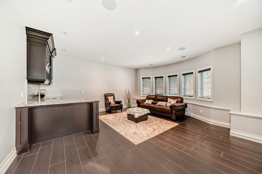 The professionally finished basement offers an entertainment haven with an open hallway leading to a generous family room, two additional bedrooms, and a private home theatre with large screen. Rich dark brown maple wood elements throughout create a cohesive design of refined elegance.