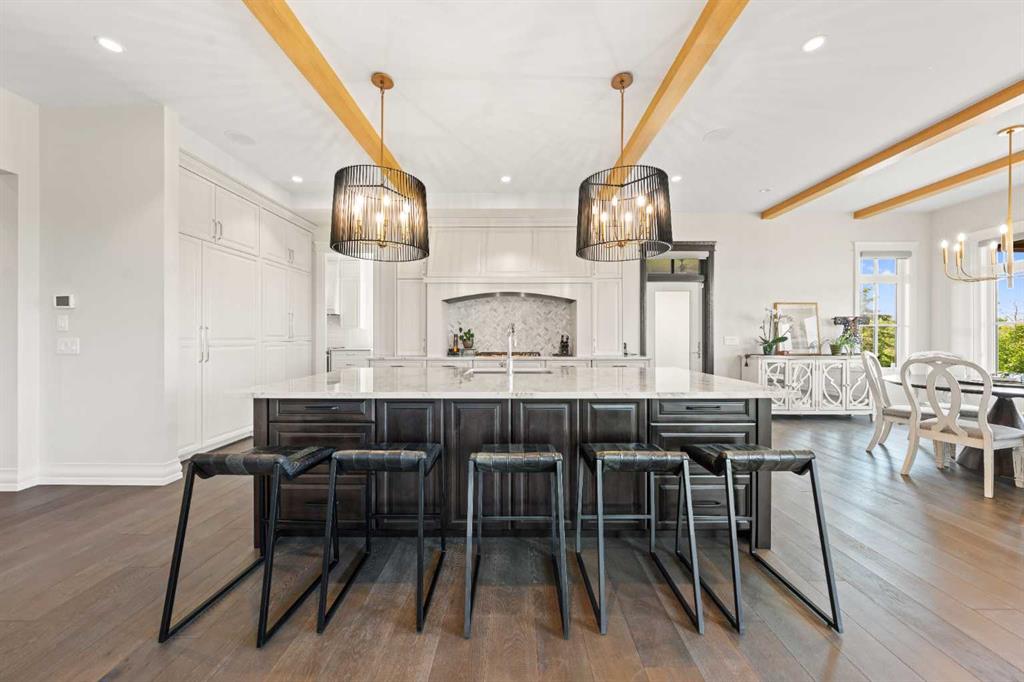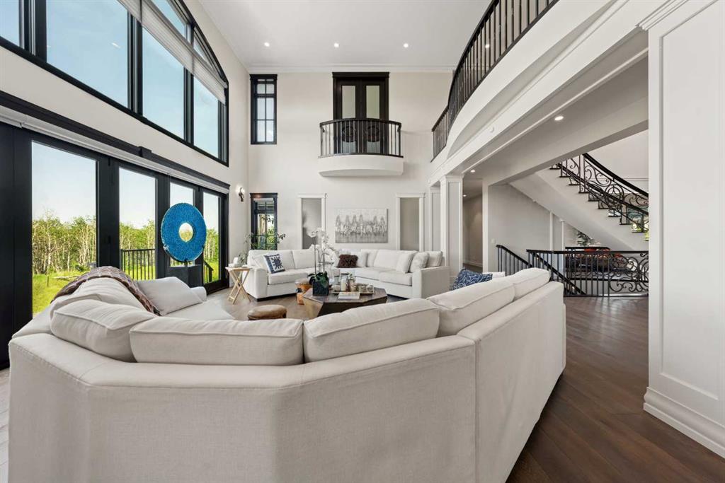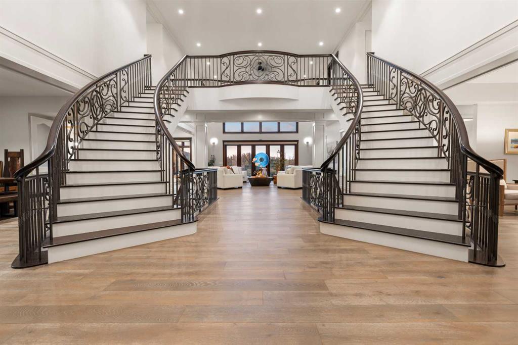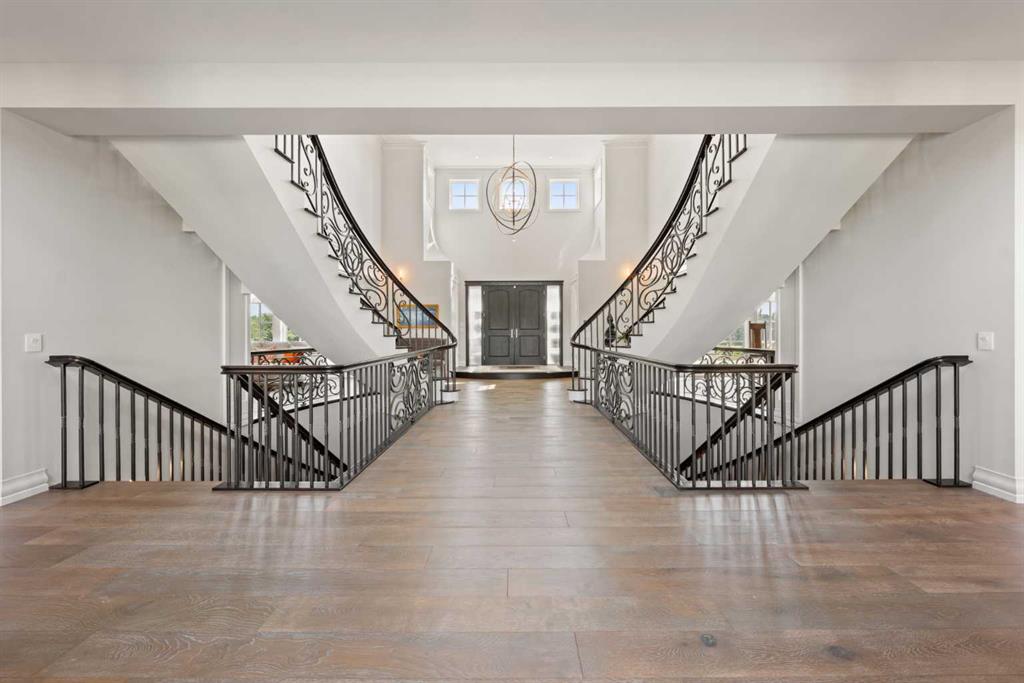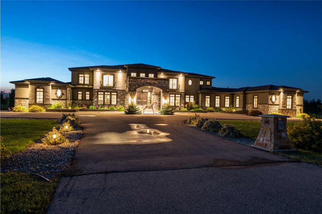 Introducing an exceptional luxury estate at 19 McKendrick Point Calgary—an unparalleled Springbank retreat on 2.3 acres with nearly 12,000 sq ft custom home of lavish living space. Built in 2020 by Your Property Corp, it was thoughtfully designed to support both quiet everyday living and vibrant entertaining—indoors and out. Step into grandeur through a double-height 20-ft foyer with floor-to-ceiling windows, setting the tone for this spectacular home. The main level showcases an open-concept family room with sweeping views and access to the wrap around deck—perfect for entertaining or serene family moments. Inside, you'll find the gourmet kitchen with custom ceiling height cabinetry, quartz island, equipped with Miele side-by-side fridge/freezer with wood paneling, and additional premium Wolf and Bosch appliances. Adjacent is a fully equipped spice kitchen with walk-in pantry and full appliance package. Derive ease and elegance throughout with additional smart and efficient features such as solar-powered blinds, central air conditioning, heated basement floors, ceramic-tiled bathrooms and laundry rooms, and central vacuum system. Your dream primary suite awaits with a gas fireplace, private office, deck access, spa-like ensuite with soaker tub and dual vanities, heated floors, and walk-in closet with custom built-ins and makeup vanity. Additional highlights include 7+1 ensuite bedrooms, a nanny room with full bath, dual mudrooms for functional day-to-day entry from both sides of the garage, laundry rooms on both the main and upper levels, and a rough-in for third laundry in the basement. The upper-level lounge area is perfect for reading, homework, or quite time - with custom built-in cabinets for books or displays. Thoughtful layout works for large families, multi-generational living, or those who simply want room to grow.